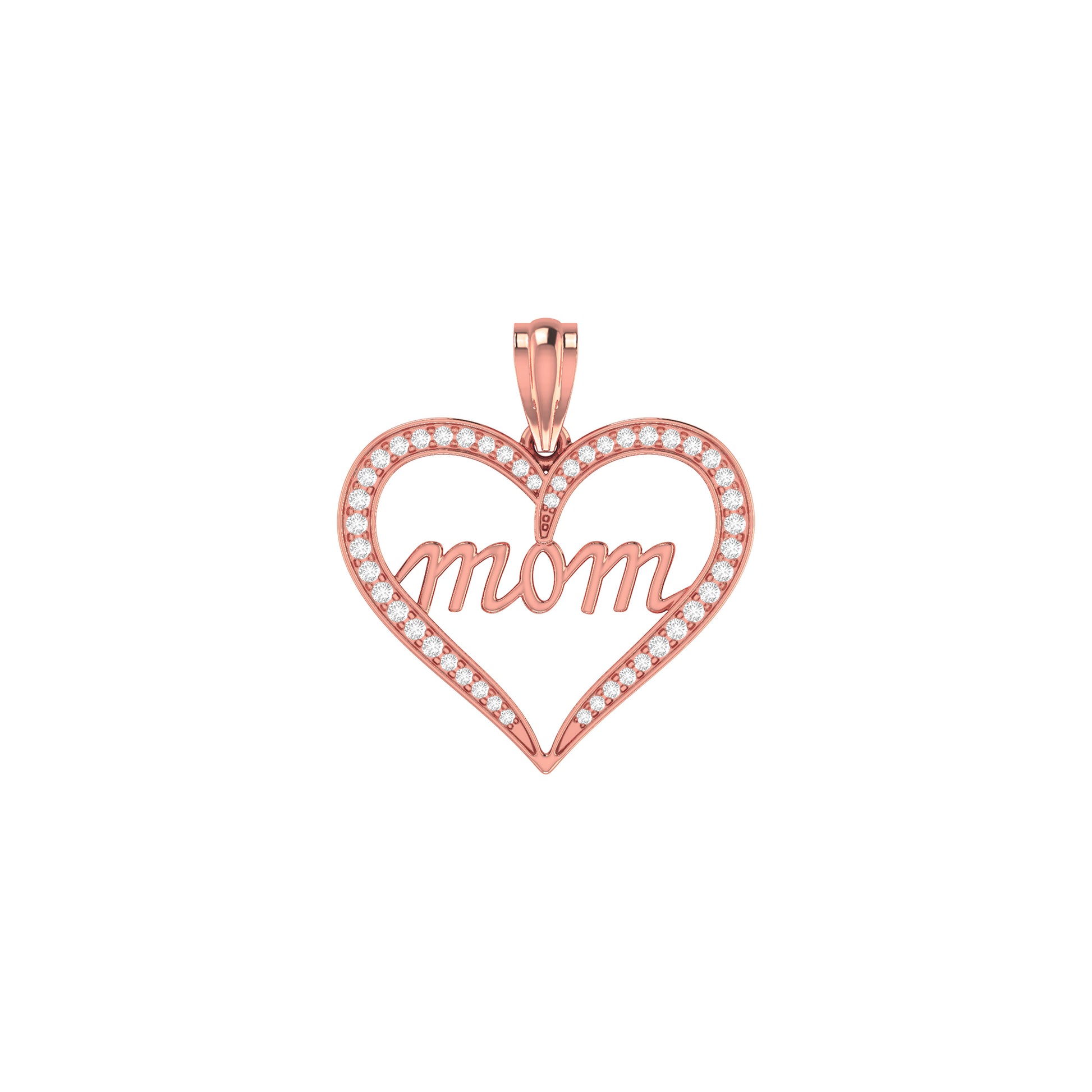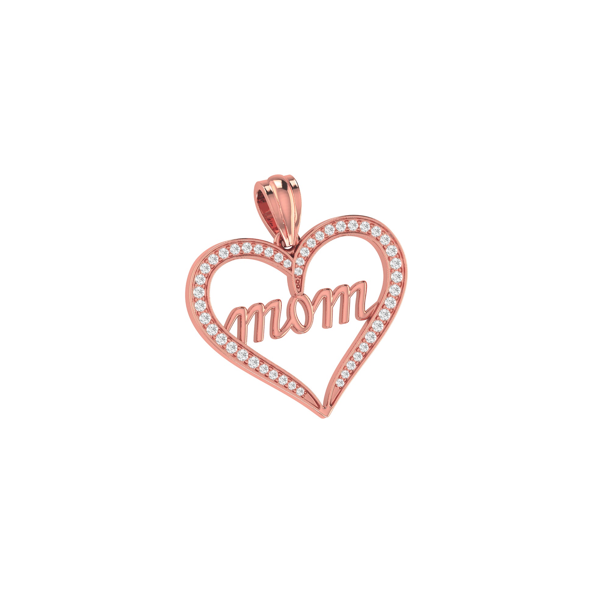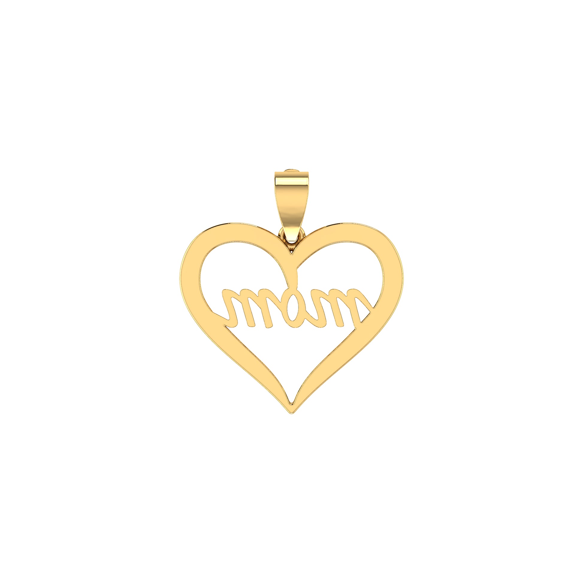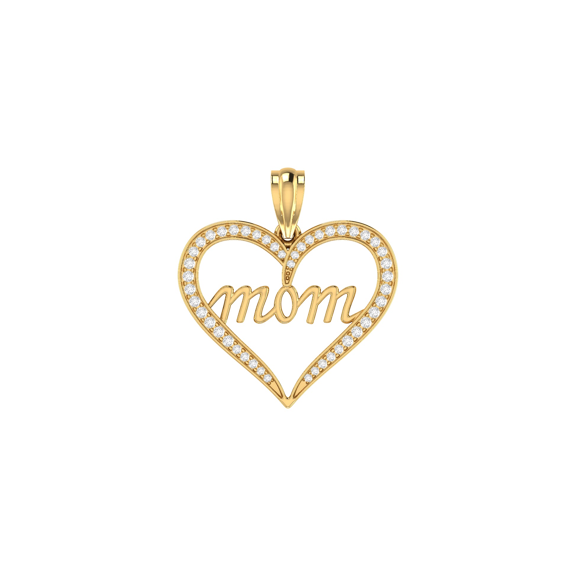 0.21Ct Round Diamond Pave Yellow Gold Mom Heart Pendant