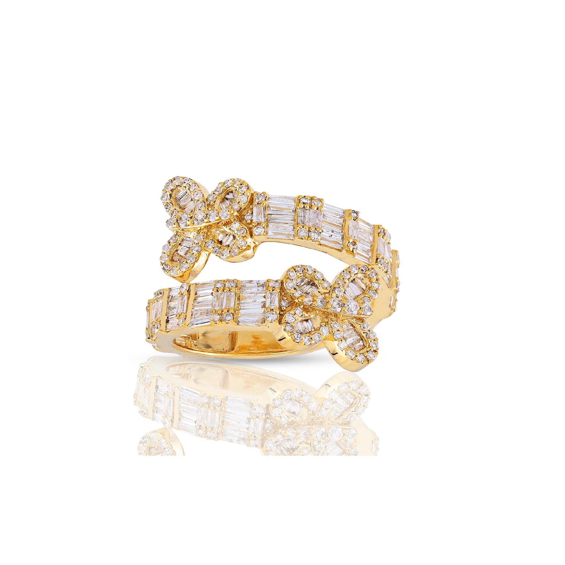 16.5mm Yellow Gold Round and Baguette Diamond Ring by Demira Jewels