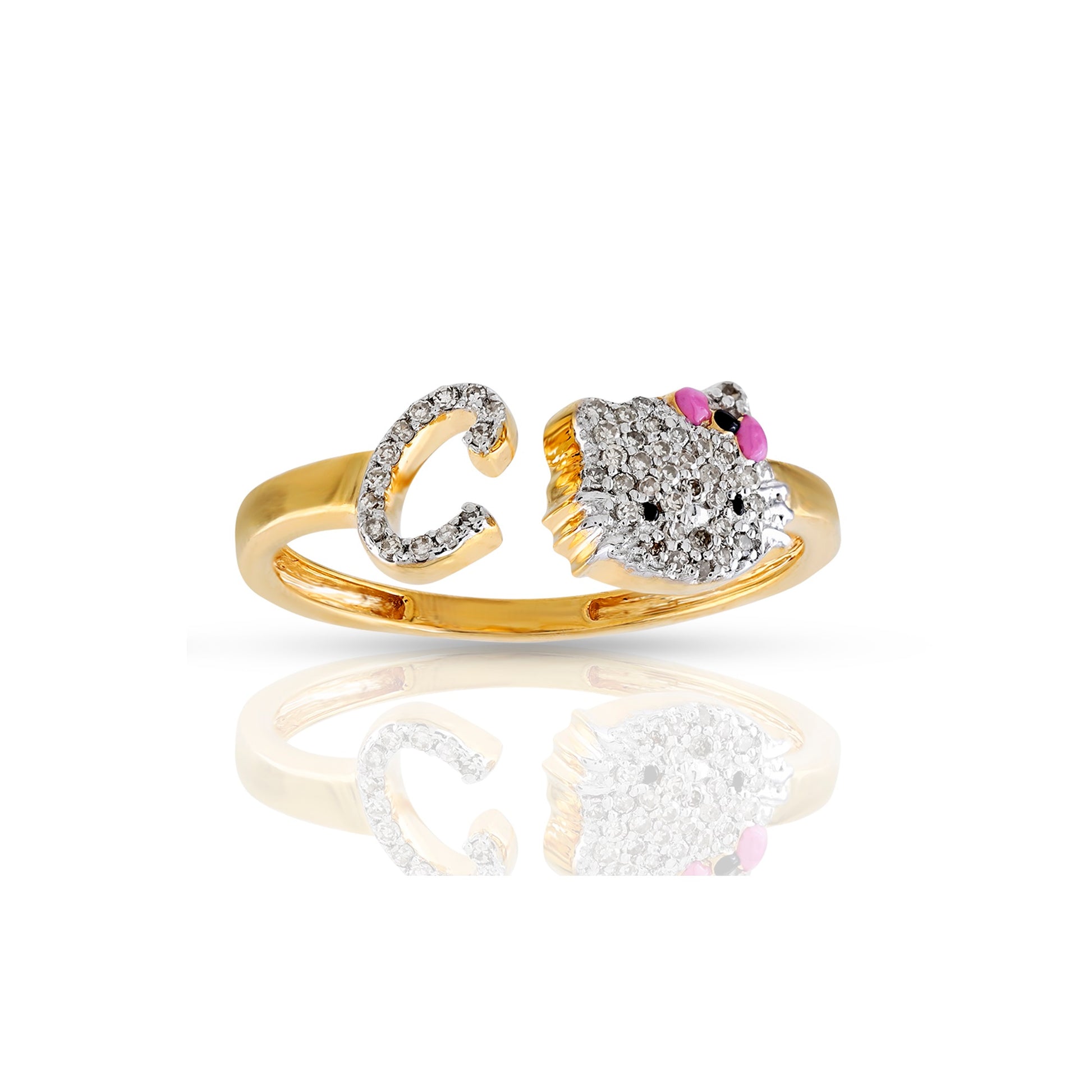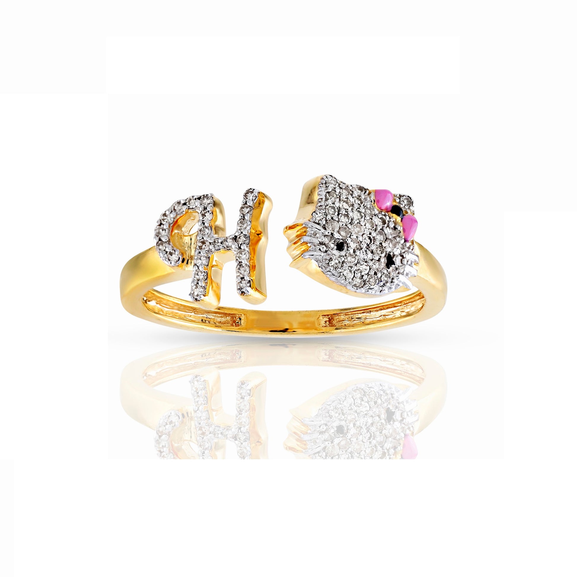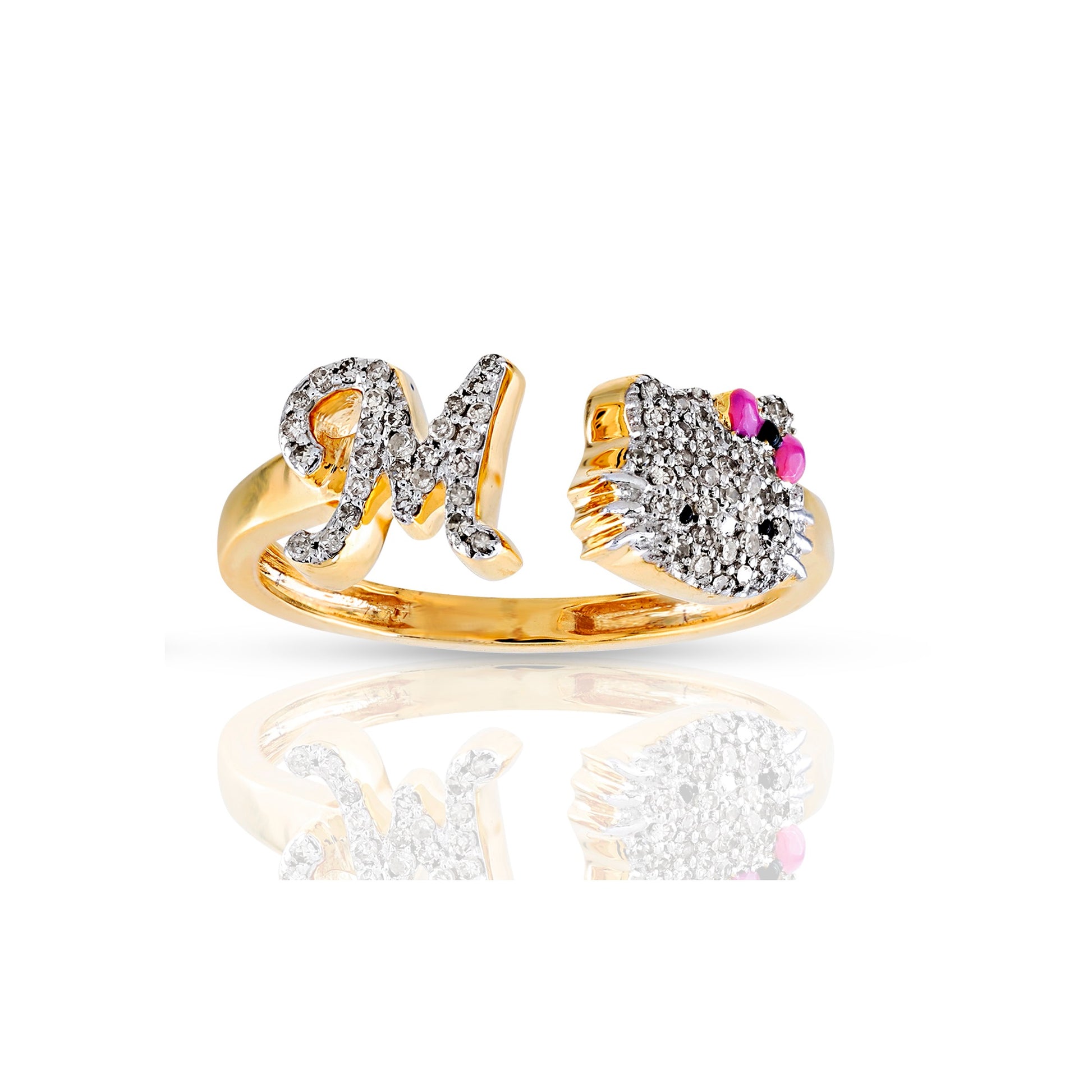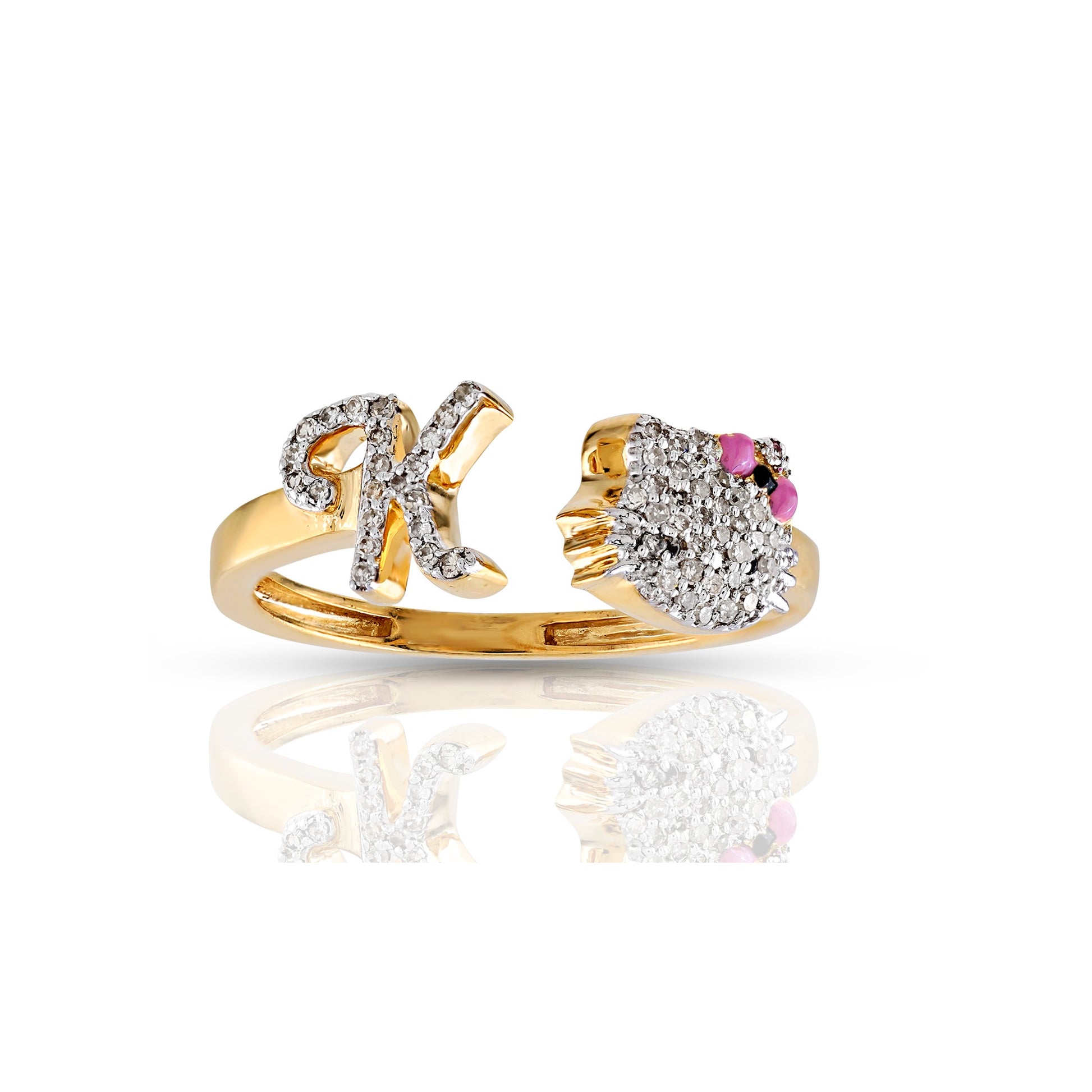 7mm Yellow Gold Diamond Kitty Initial Ring