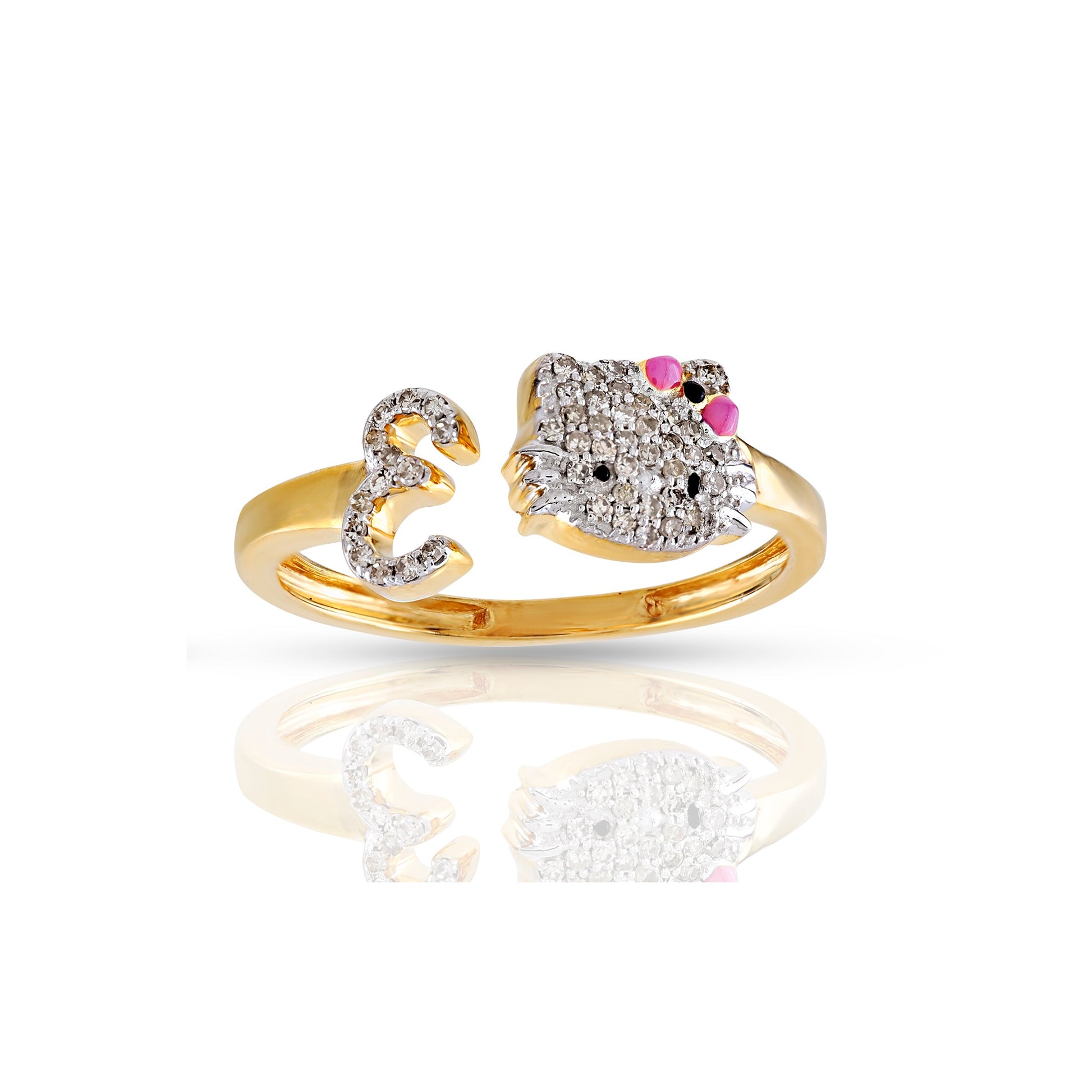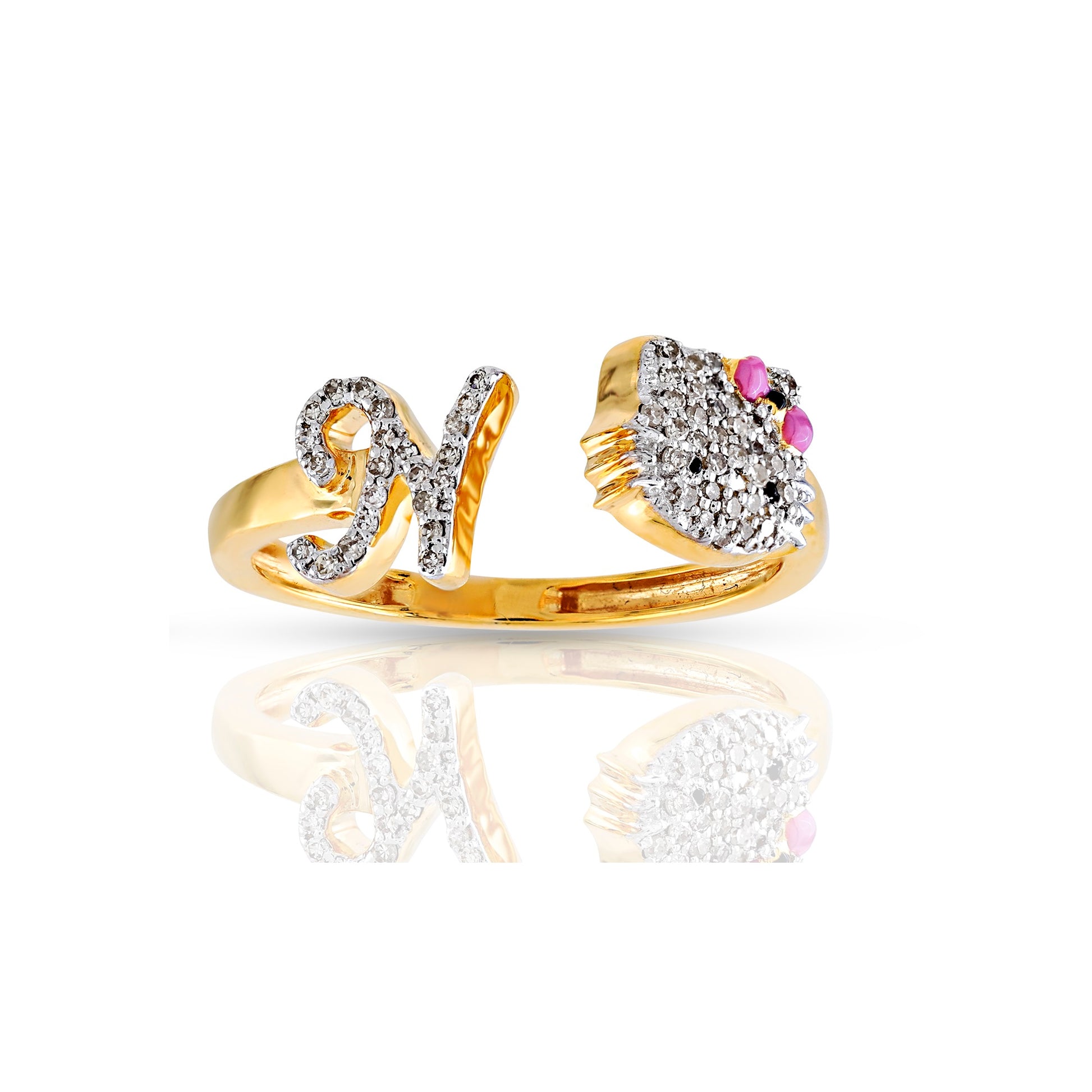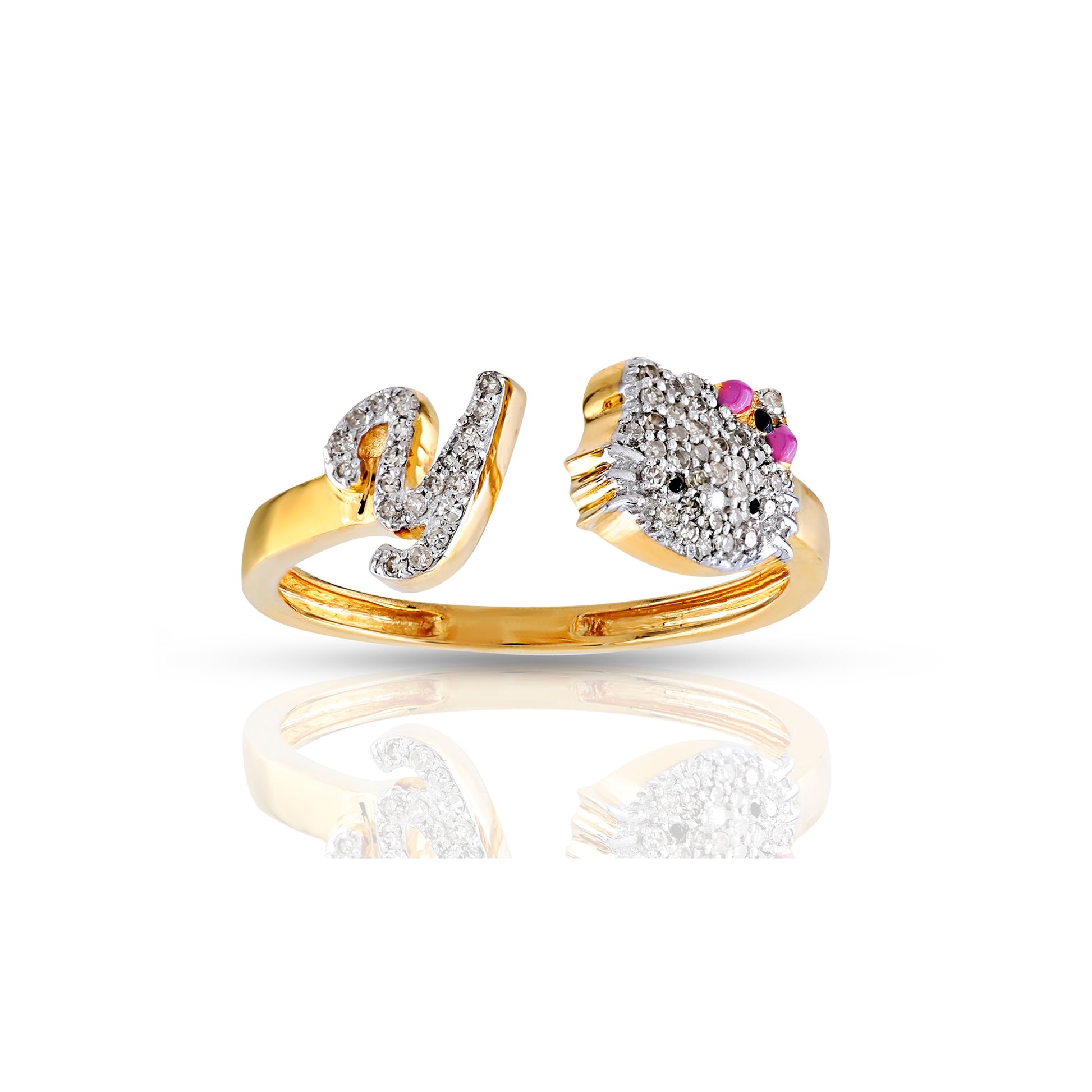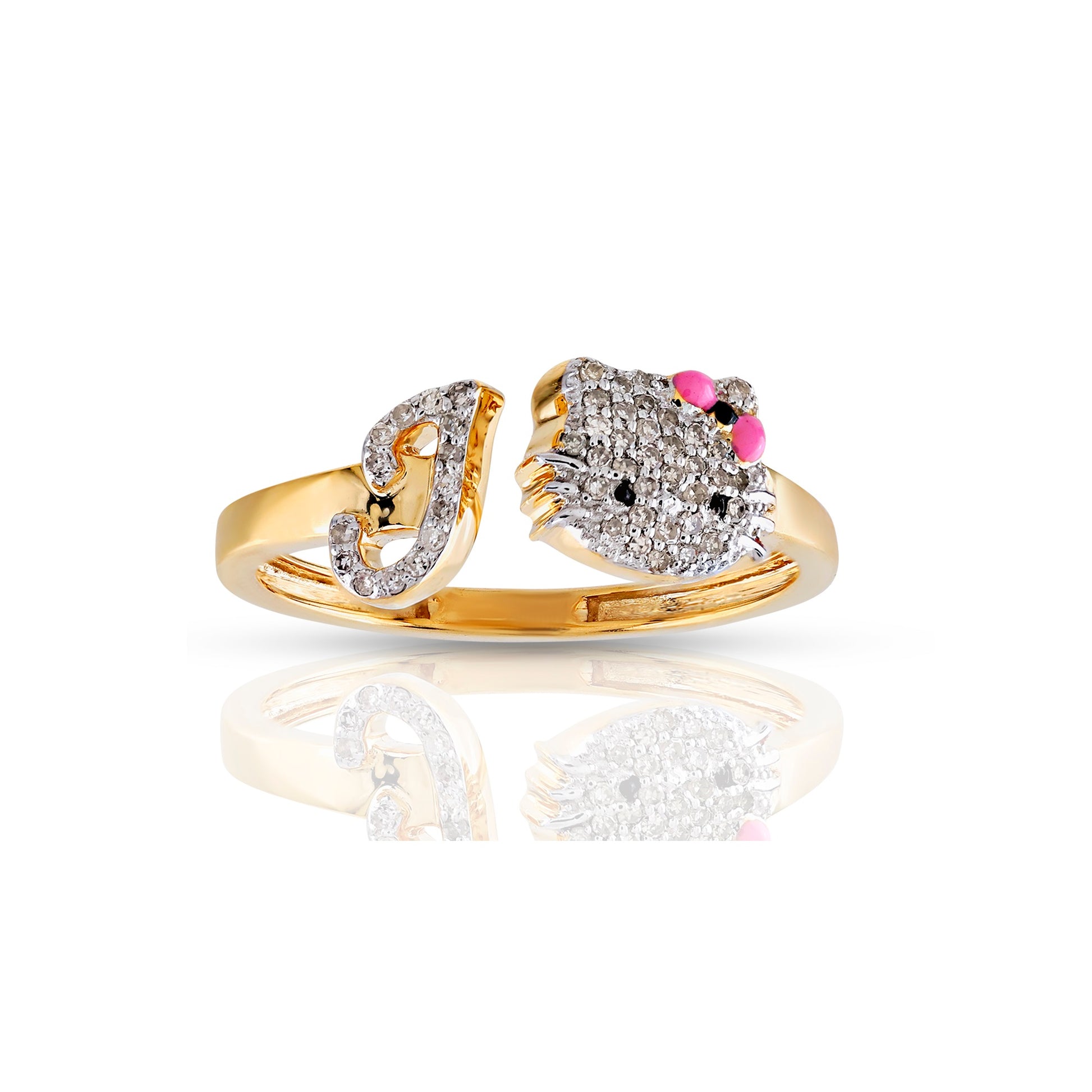 7mm Yellow Gold Diamond Kitty Initial Ring