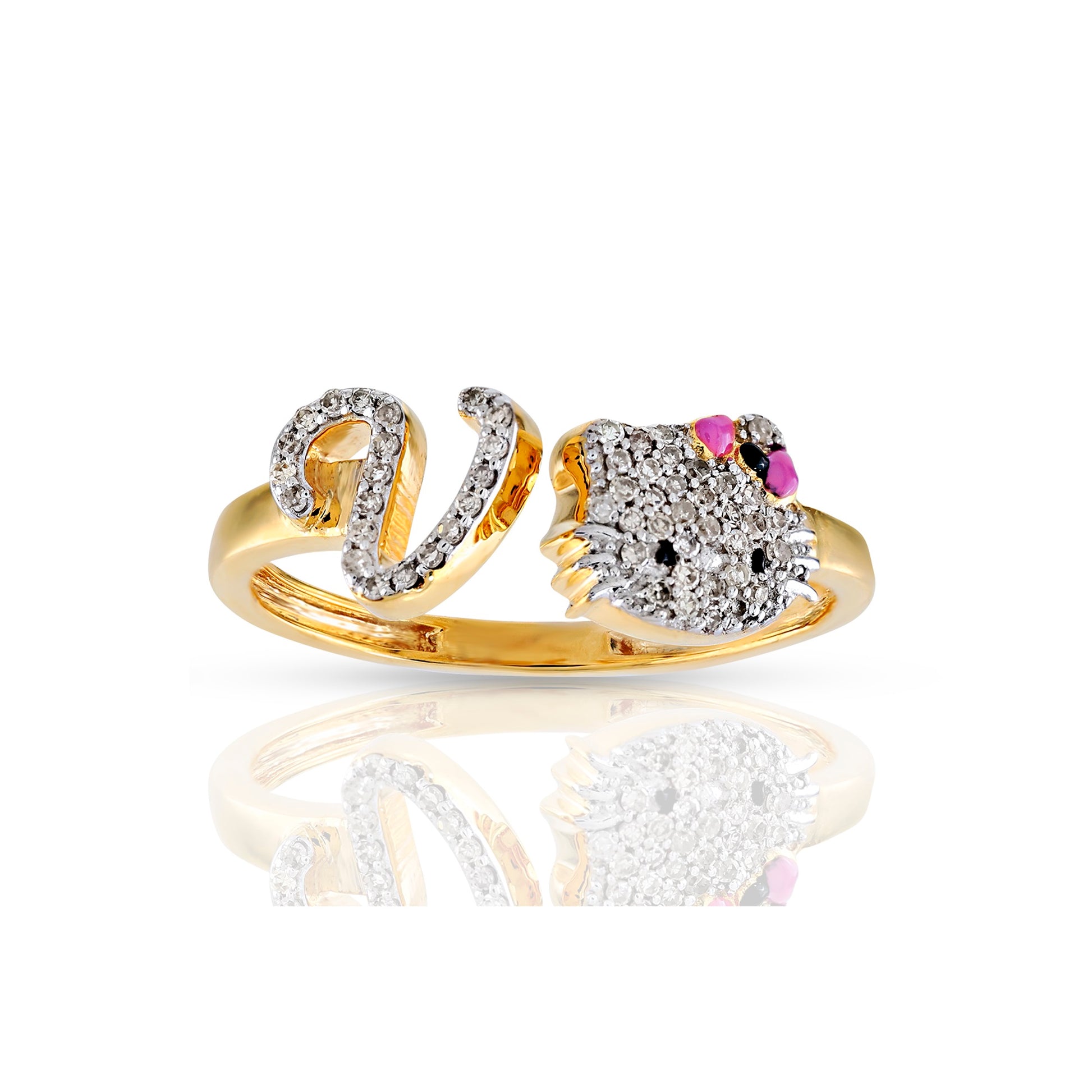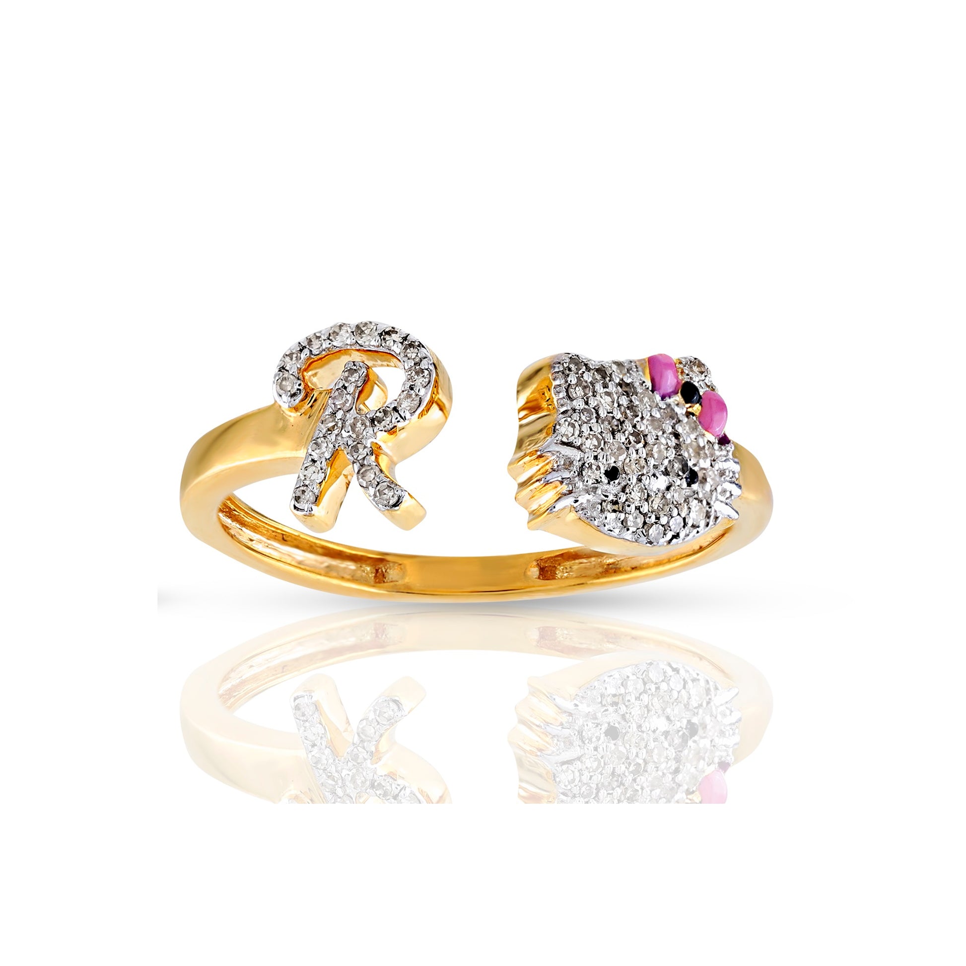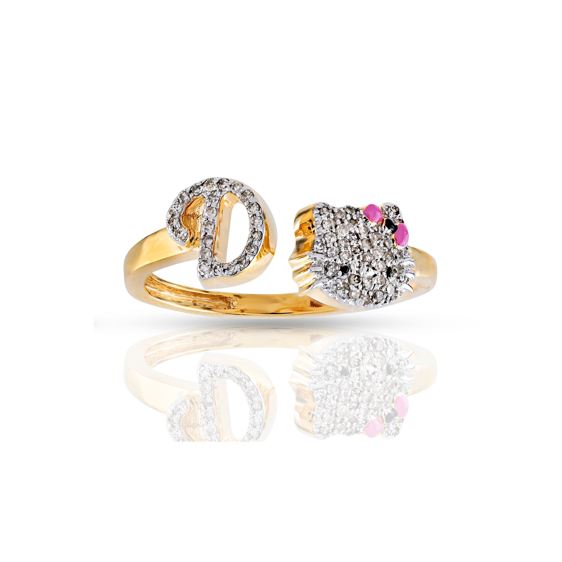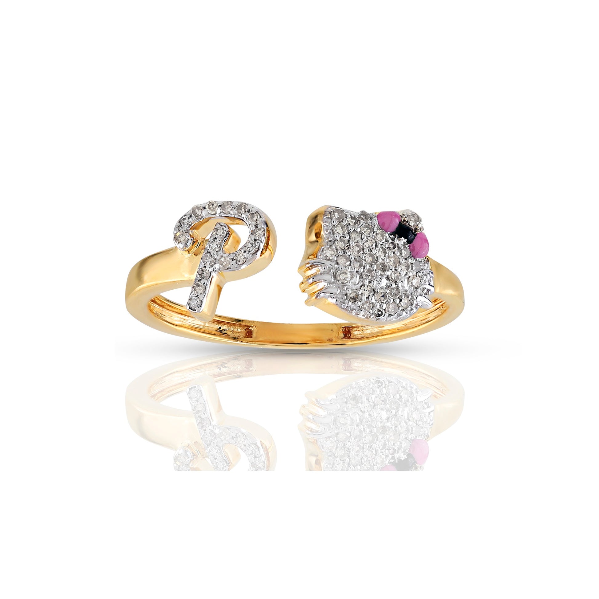 7mm Yellow Gold Diamond Kitty Initial Ring
