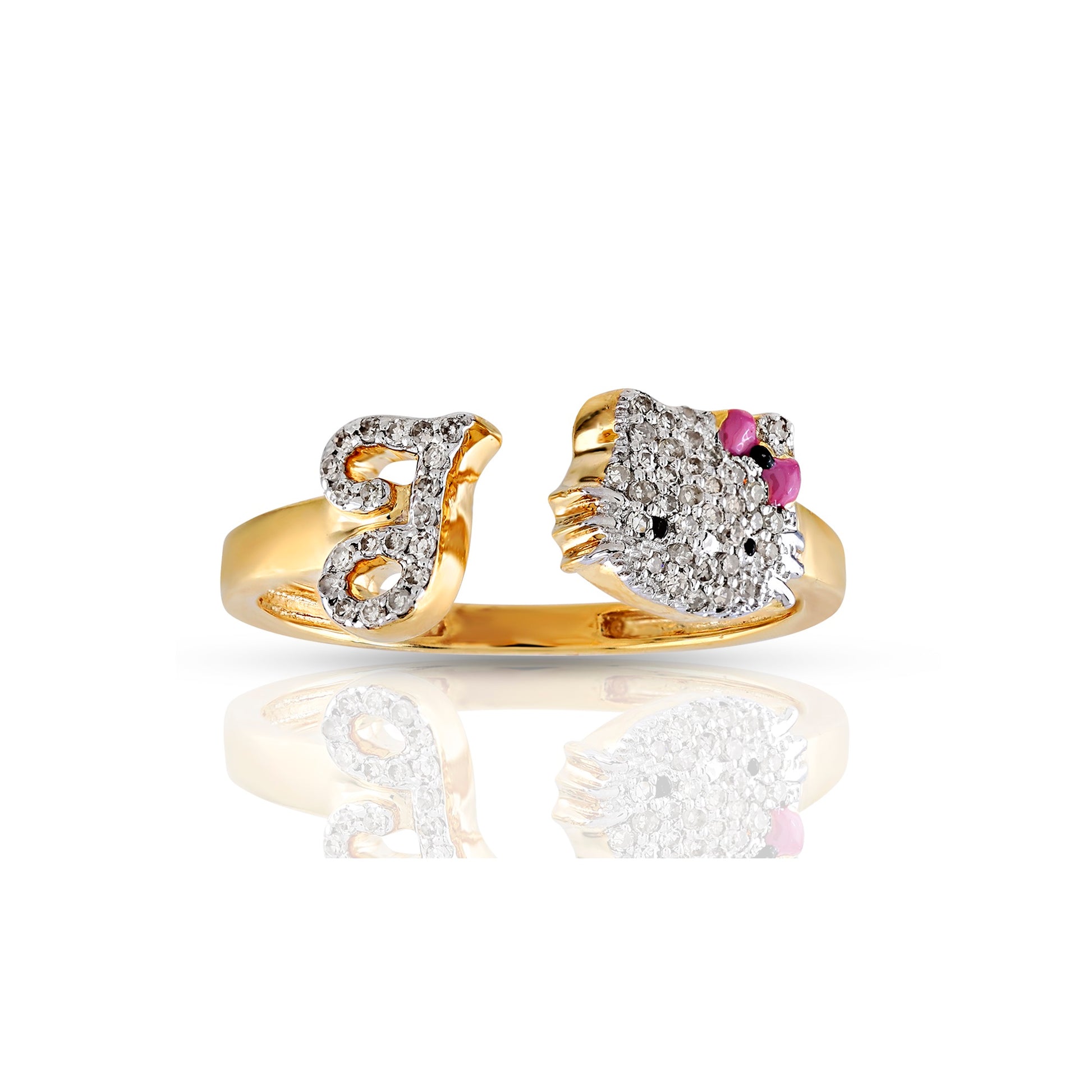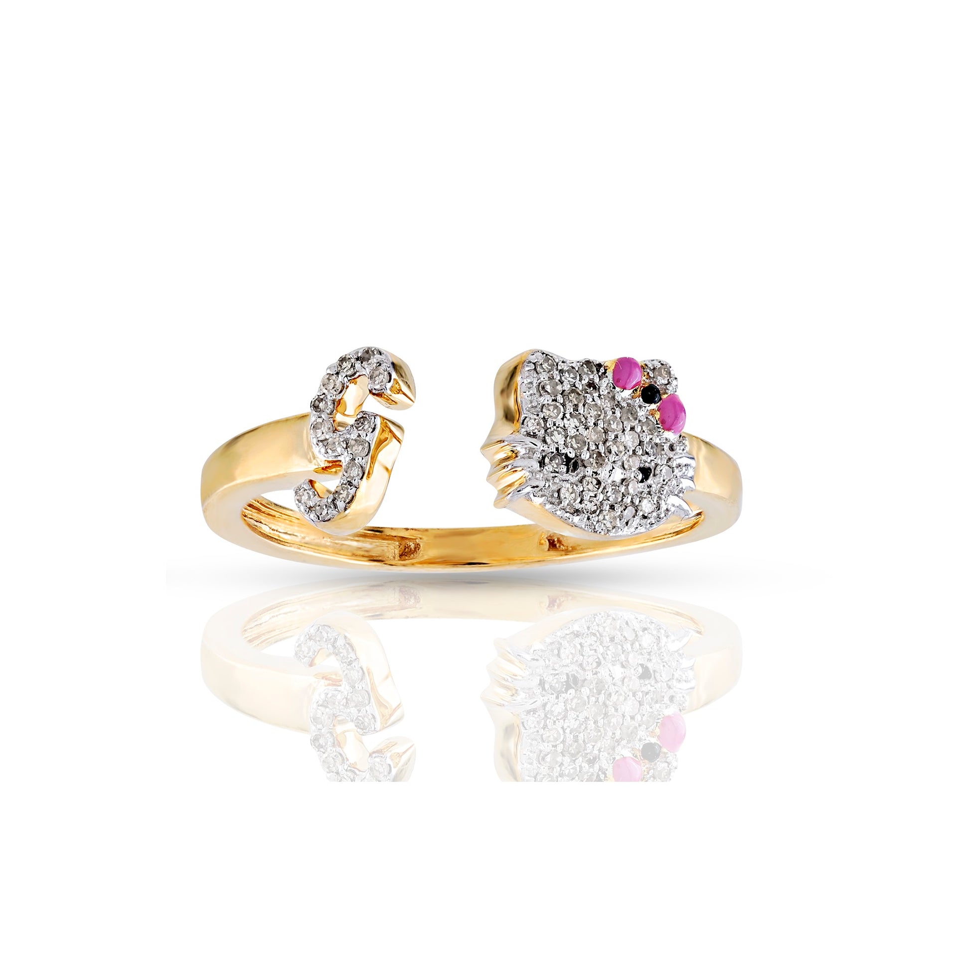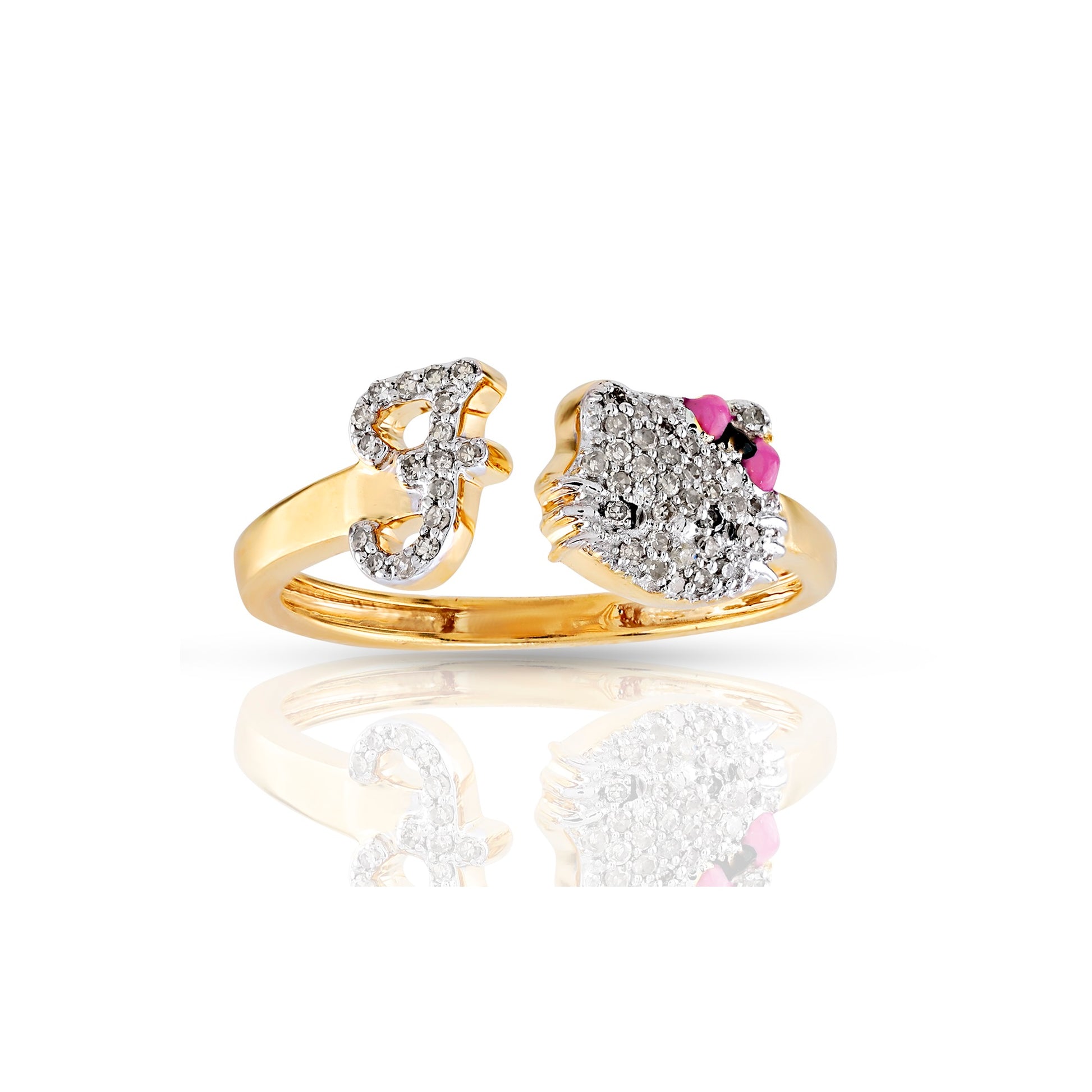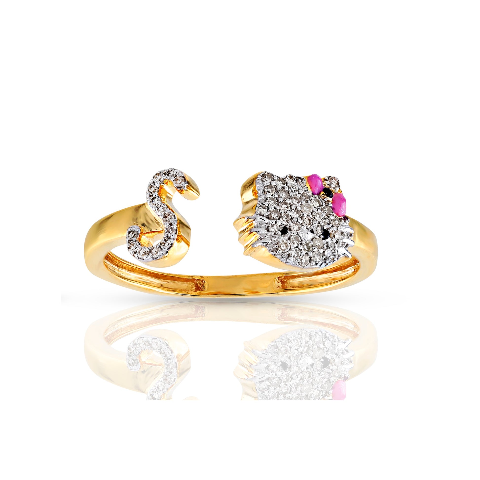 7mm Yellow Gold Diamond Kitty Initial Ring