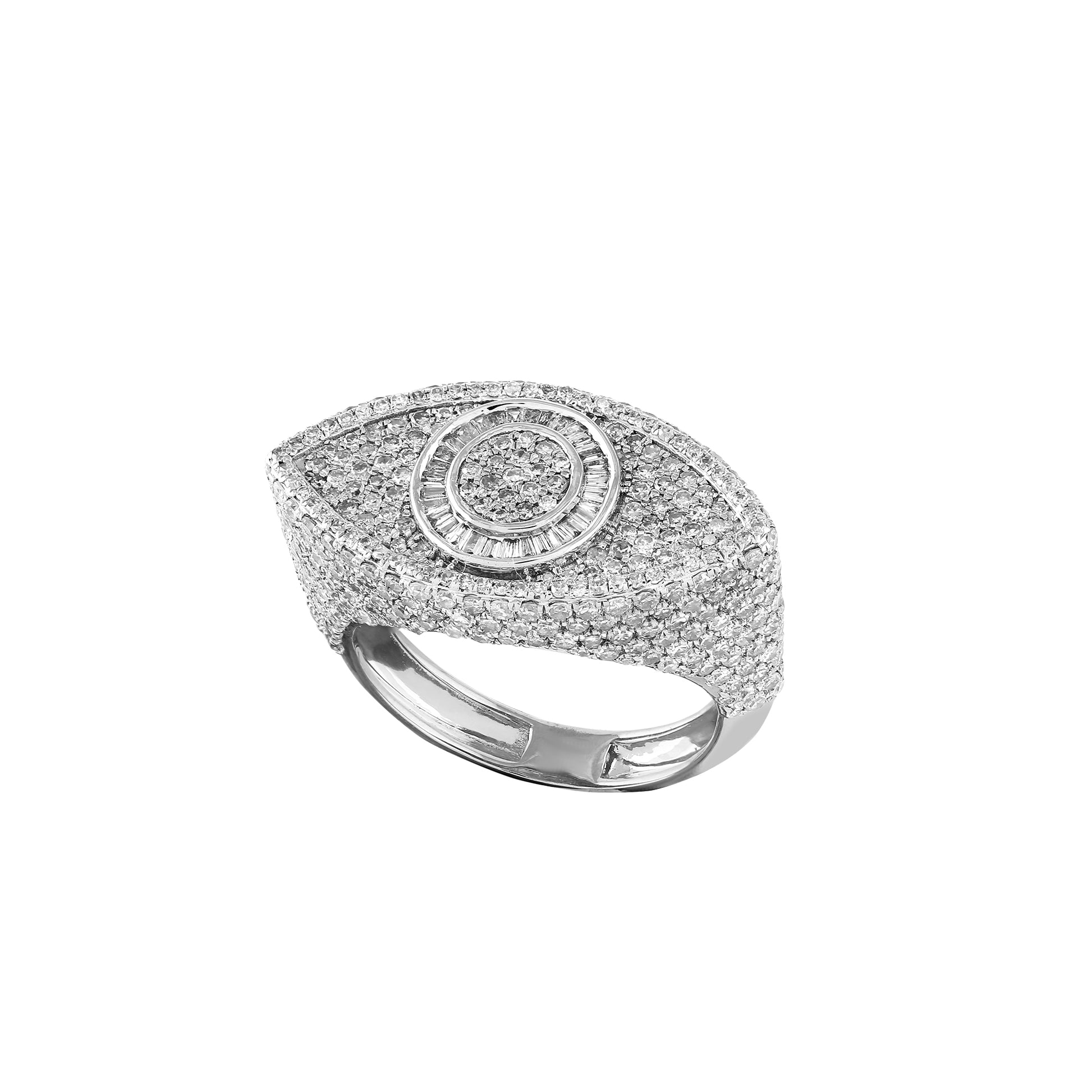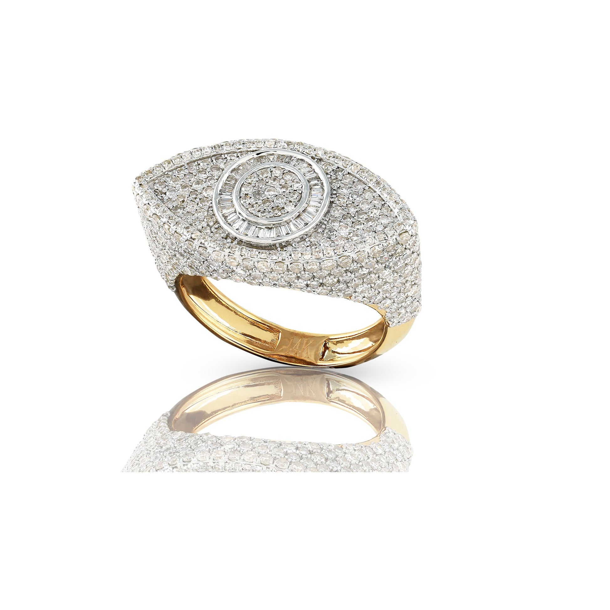 Divine Protection: White Baguette Diamond Evil Eye Ring in Yellow Gold by Demira Jewels