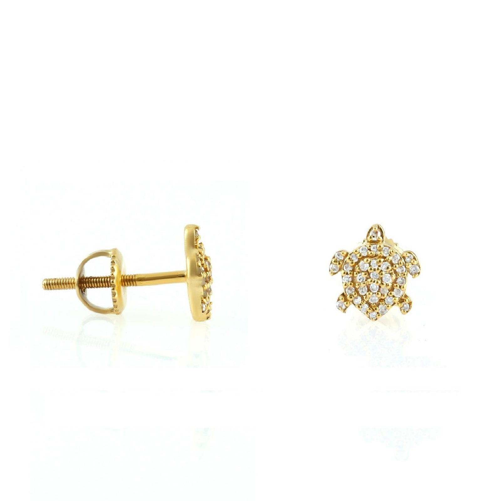 Yellow Gold Round Diamond Turtle Stud Earrings