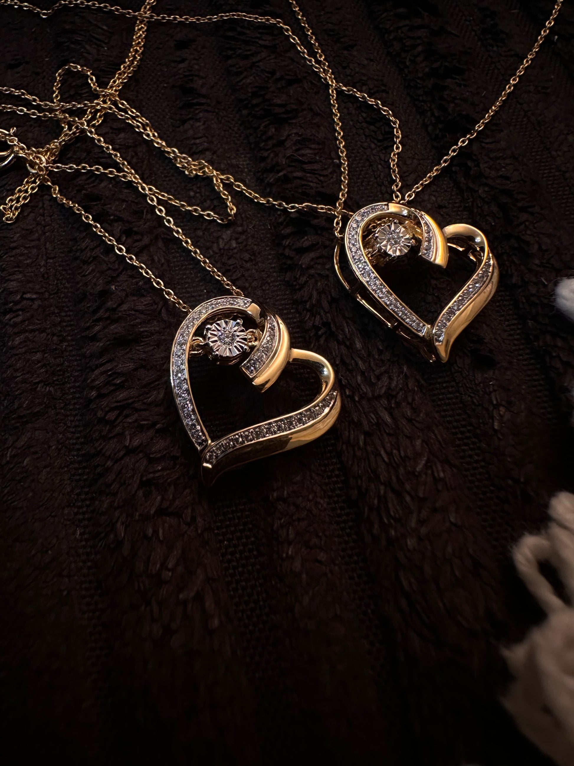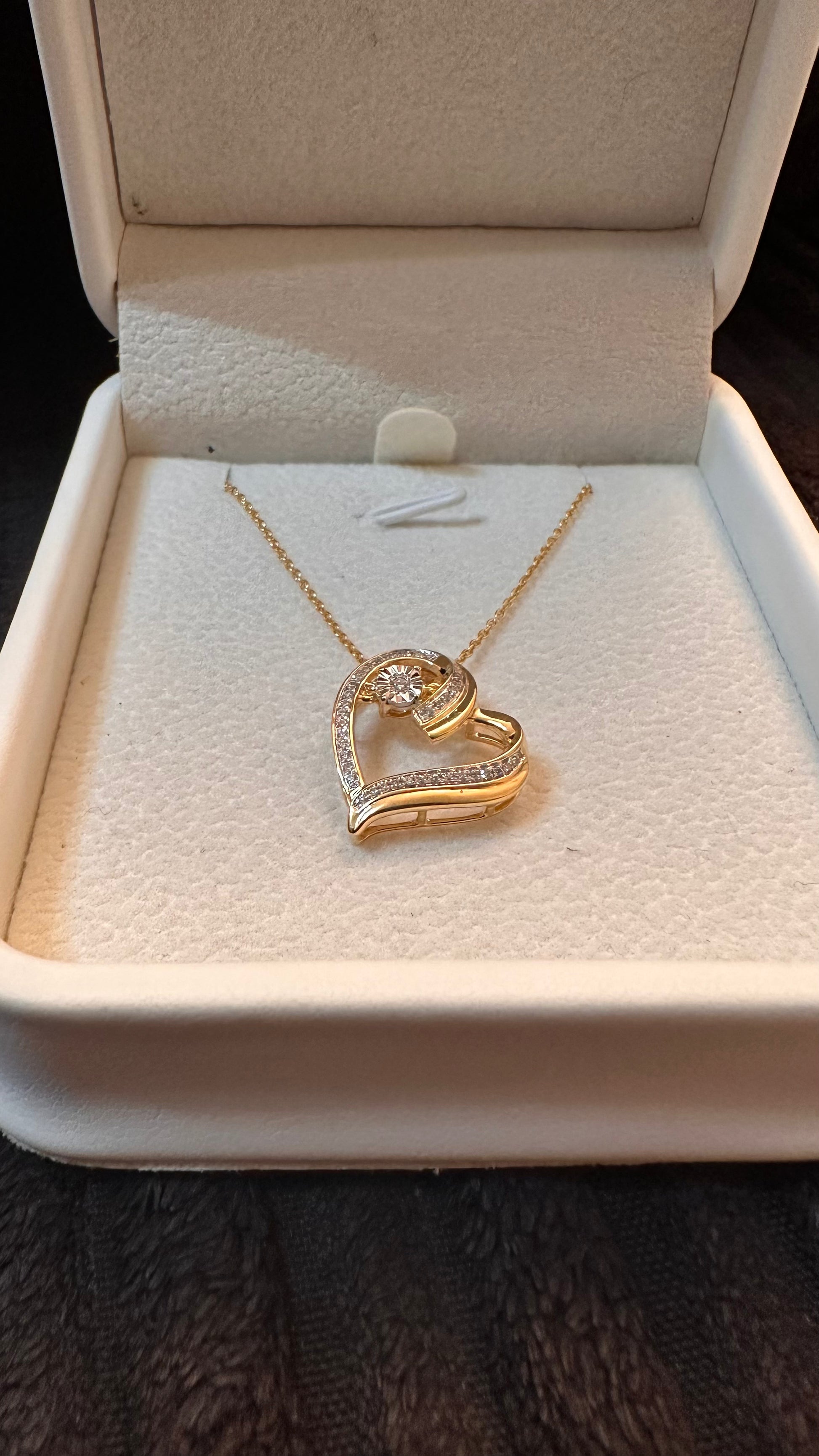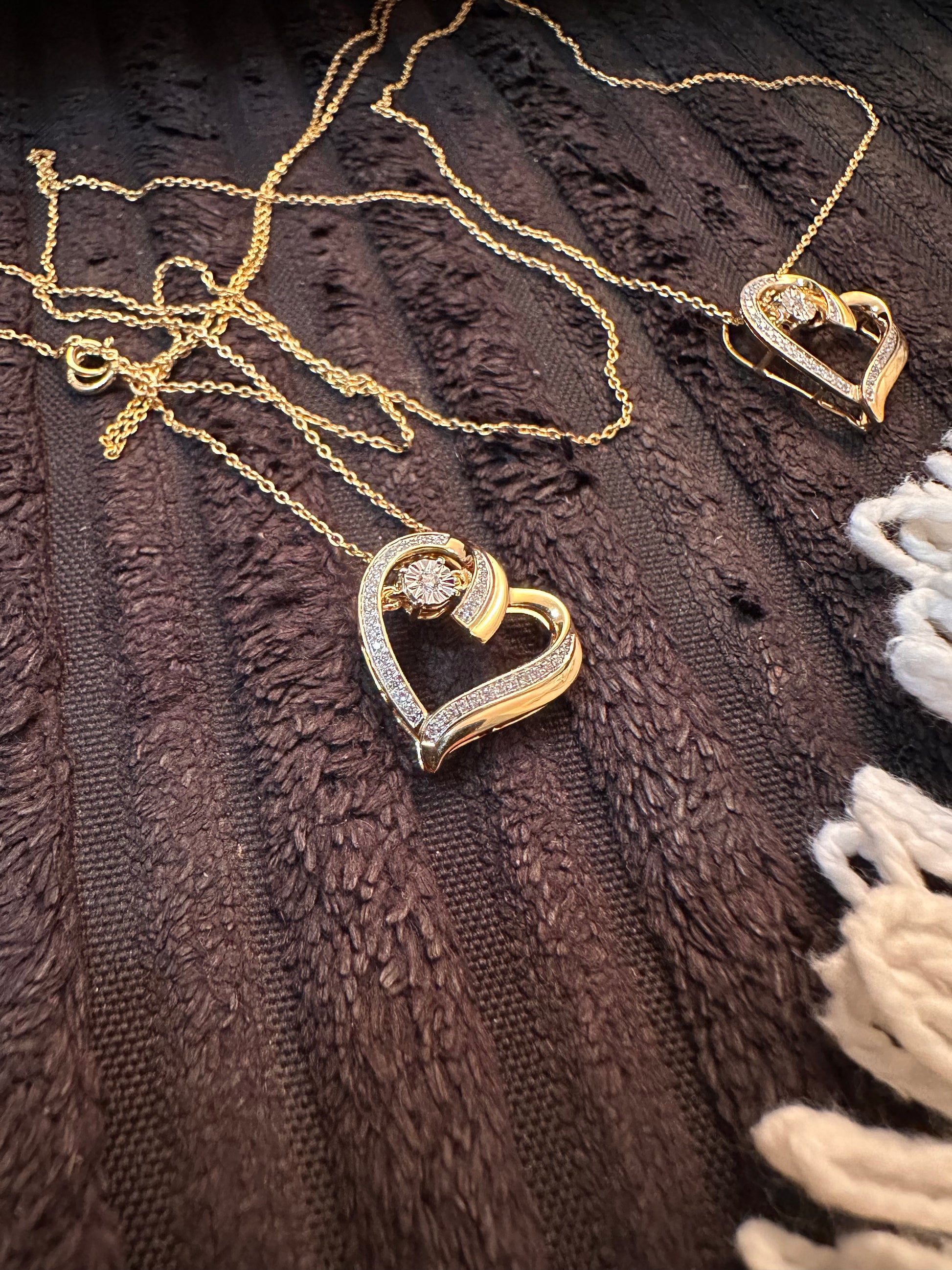 Yellow Gold White Diamond Heart Pendant by Demira Jewels