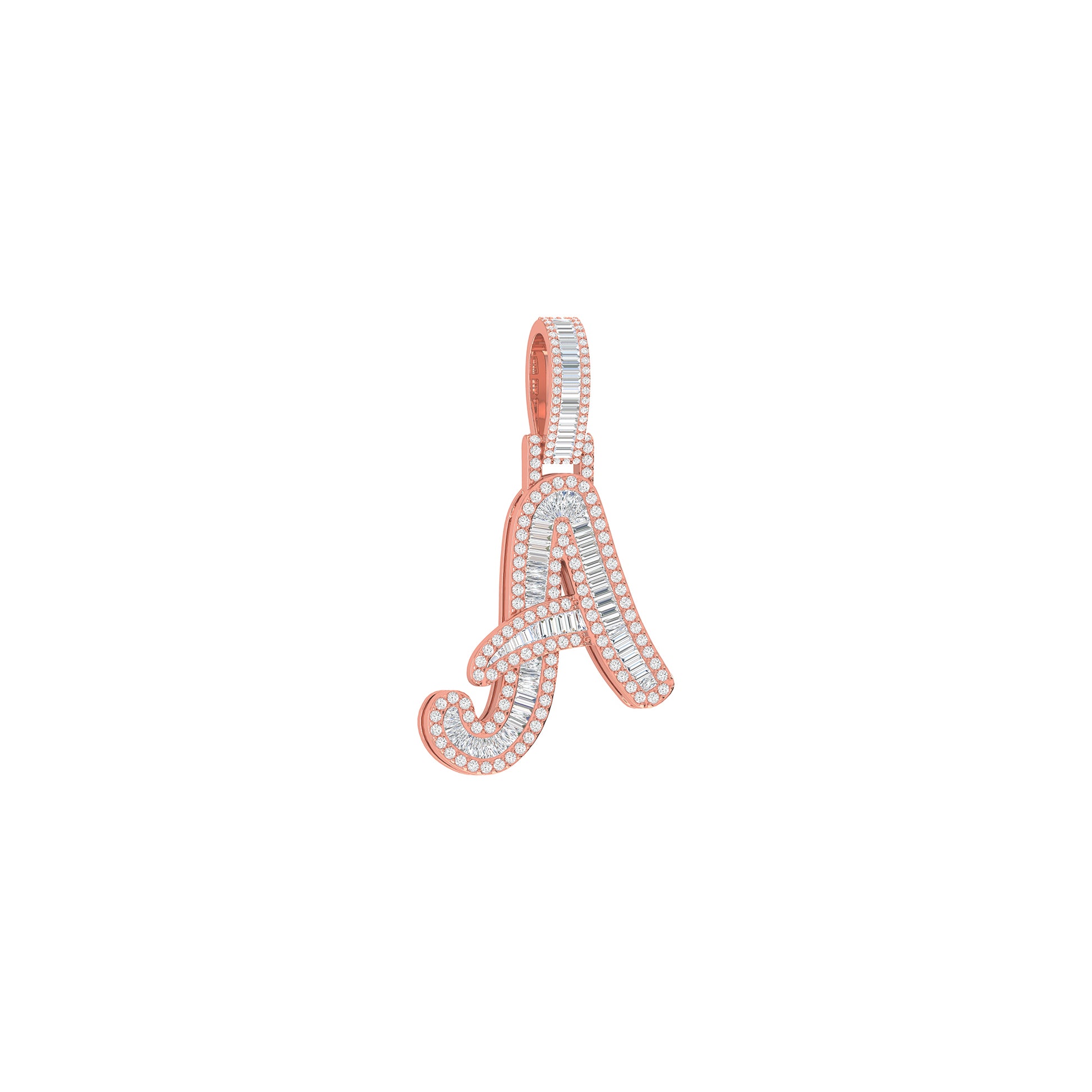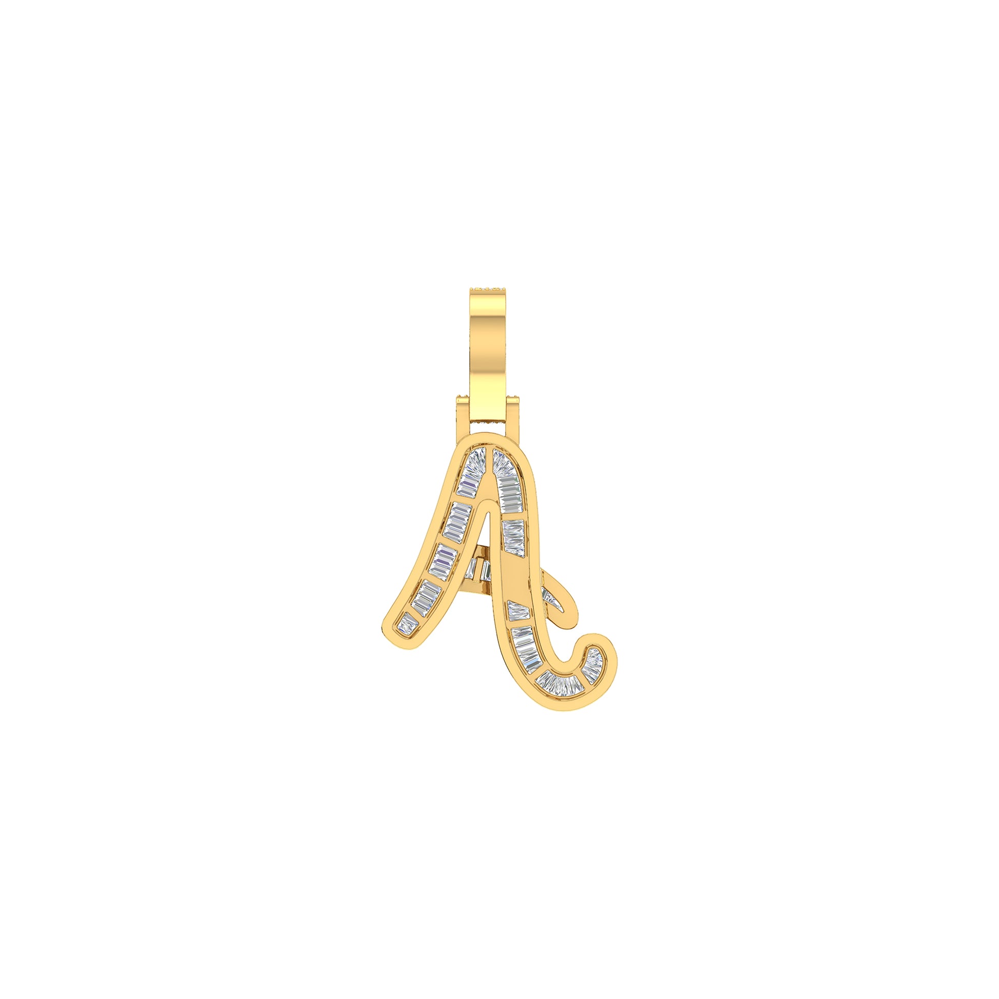 Yellow Gold Baguette and Round Diamond 'A' Letter Initial Pendant