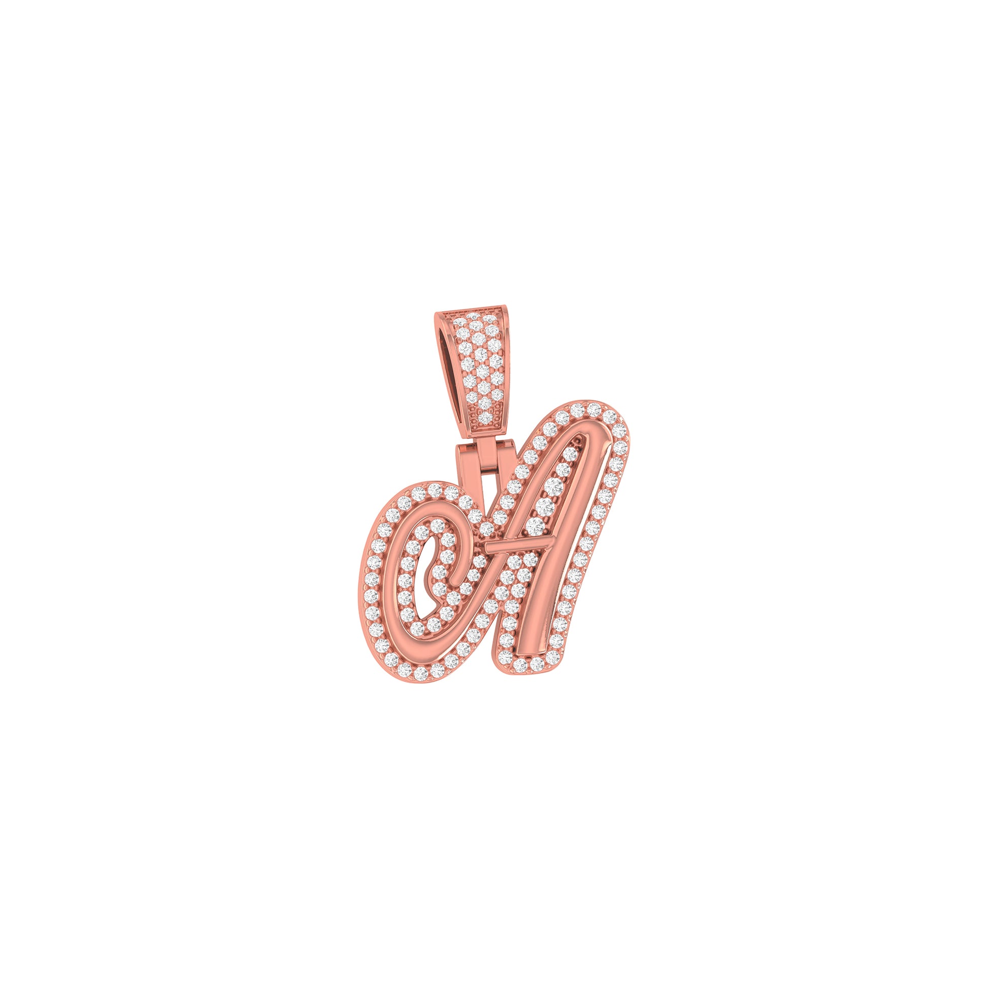 Yellow Gold Round Diamond 'A' Letter Initial Pendant