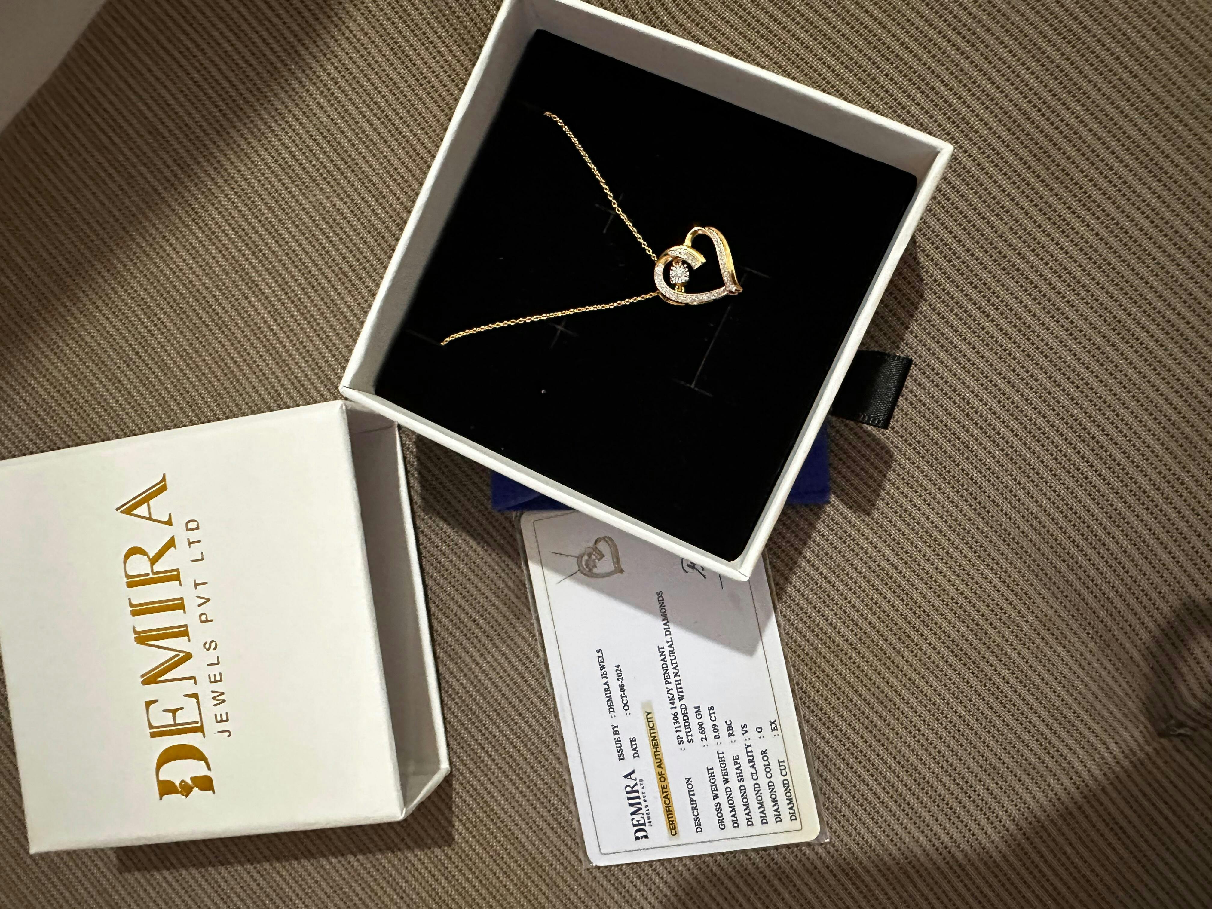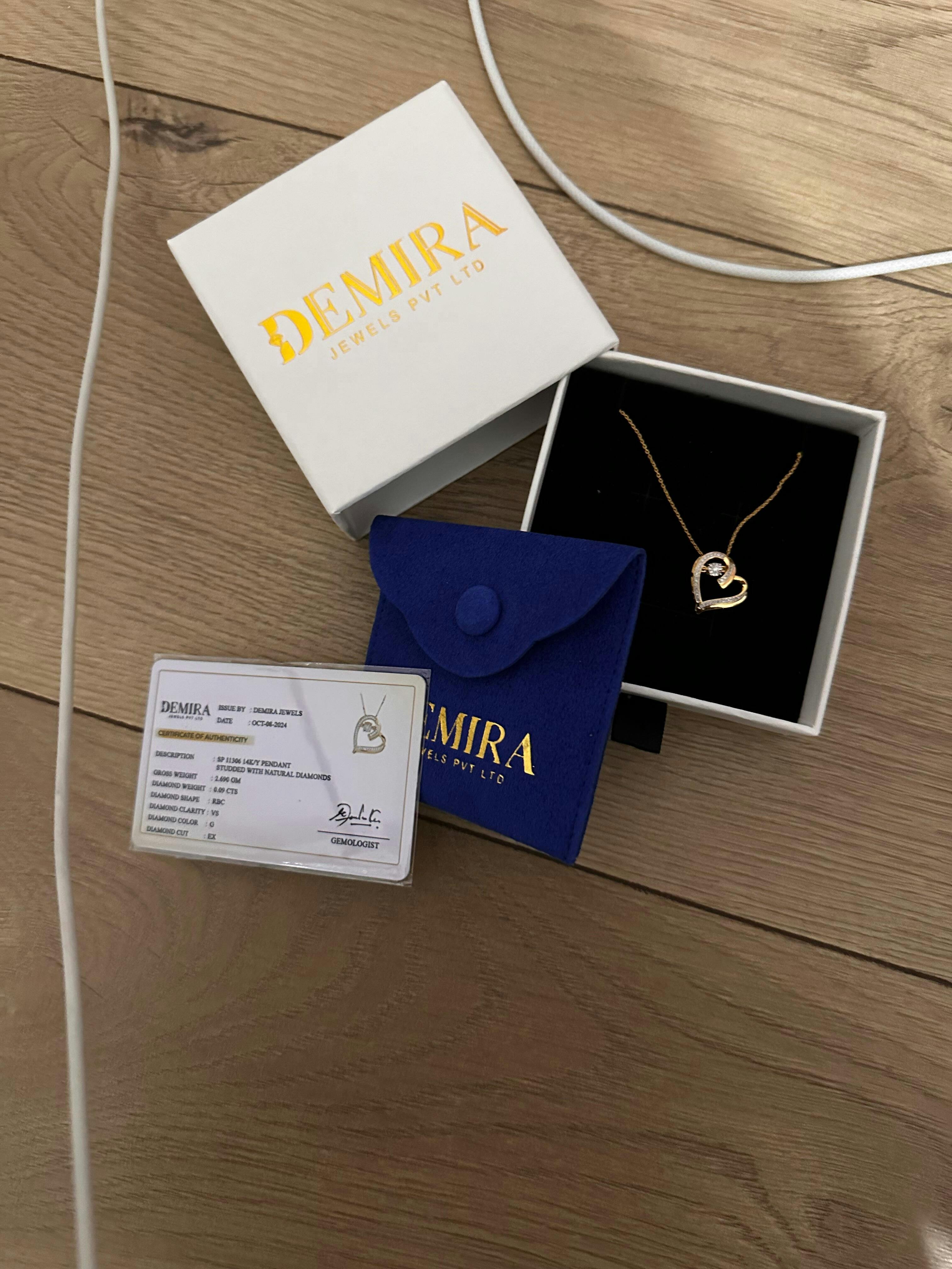 Yellow Gold White Diamond Heart Pendant by Demira Jewels
