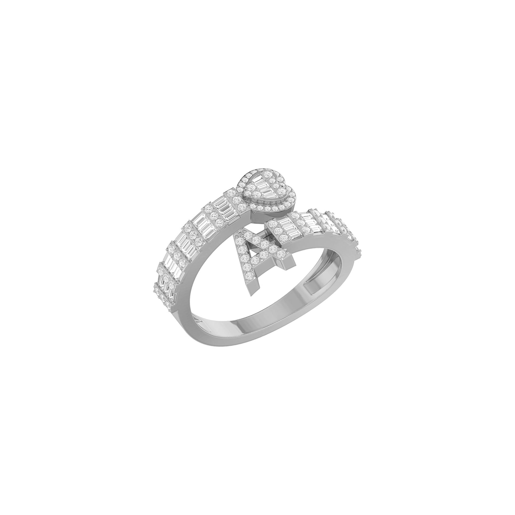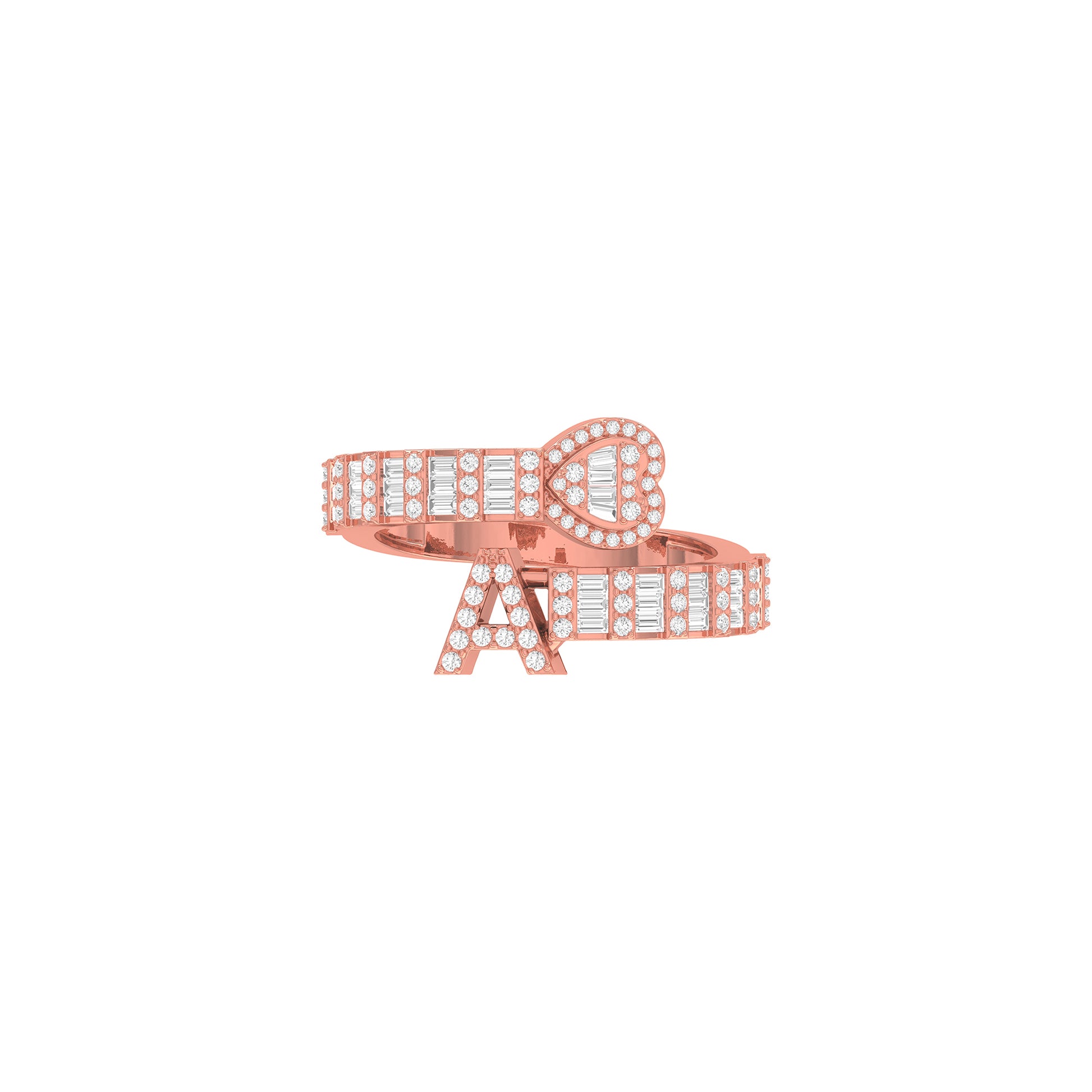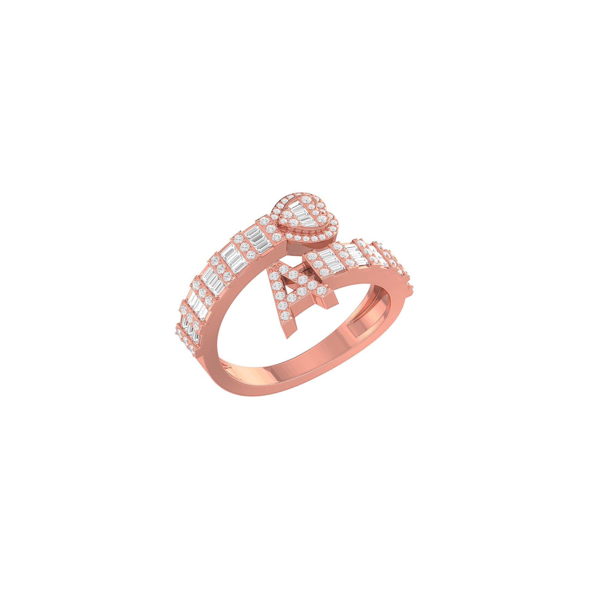 Yellow Gold Baguette & Round Diamond 'A' Letter Heart Initial Ring