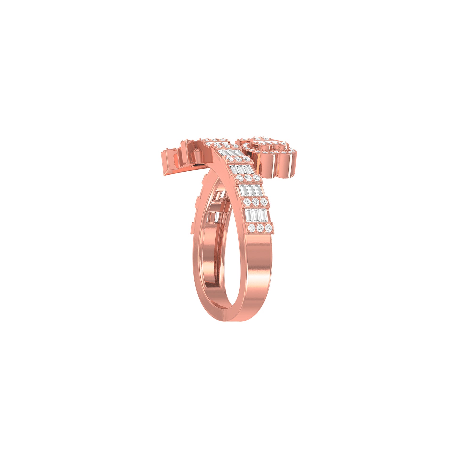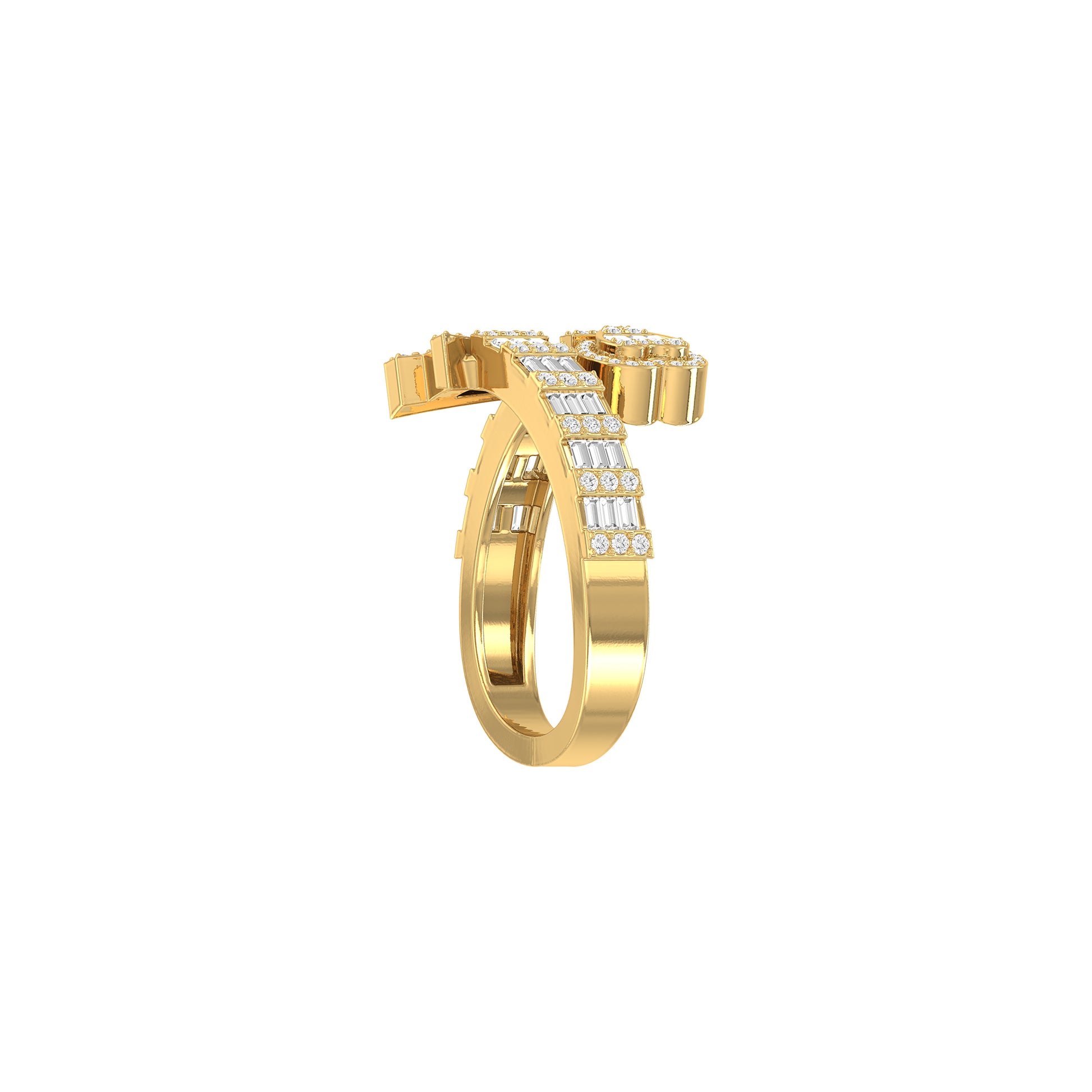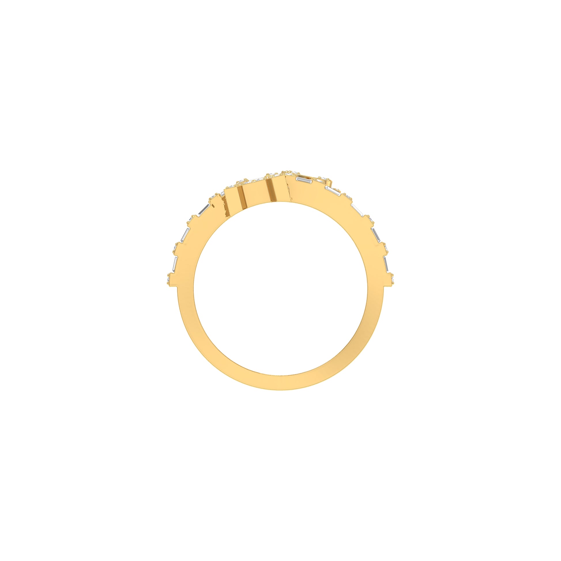 Yellow Gold Baguette & Round Diamond 'A' Letter Heart Initial Ring