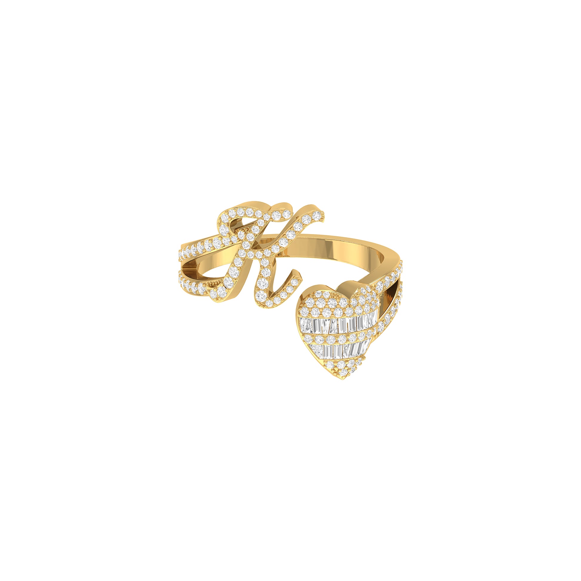Yellow Gold 'K' Letter Diamond Heart Initial Ring