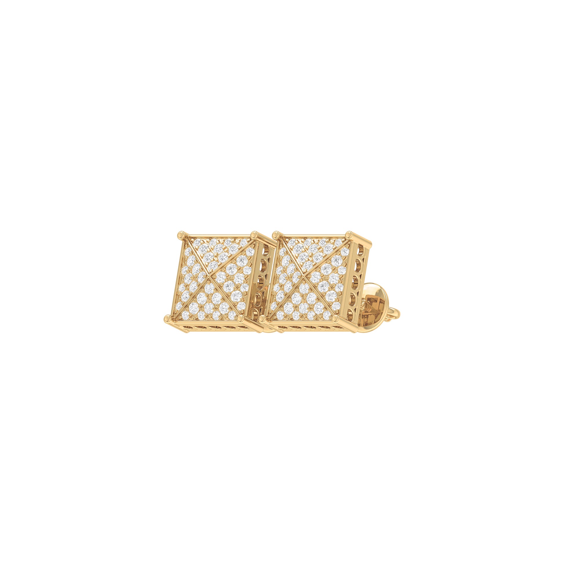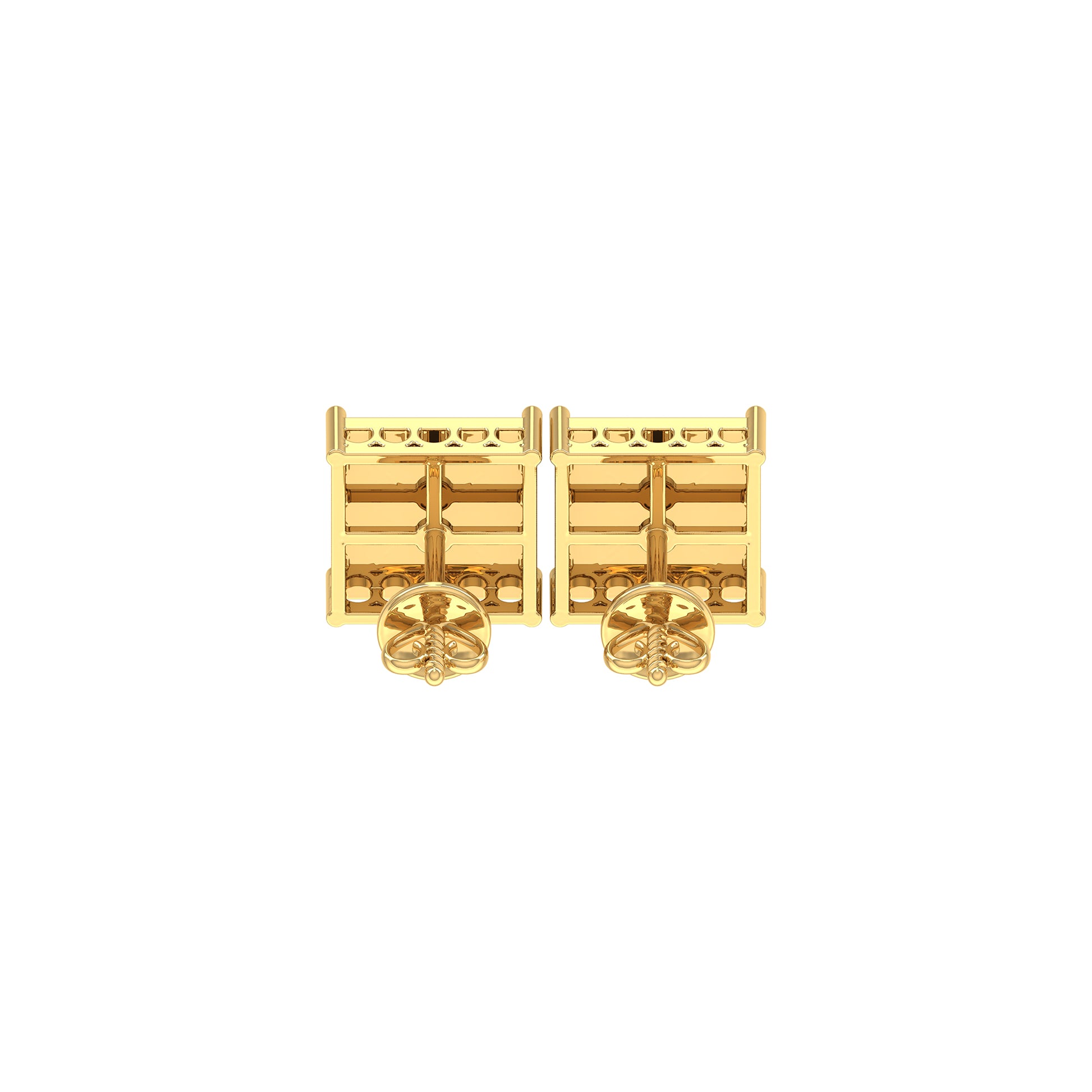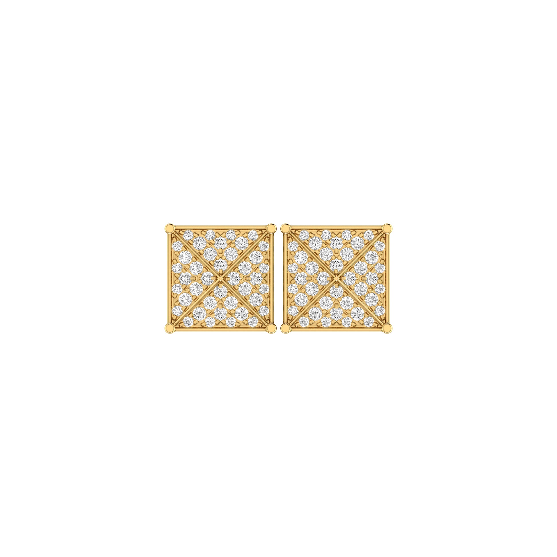 0.61Ct Round Diamond Yellow Gold Square Stud Earring