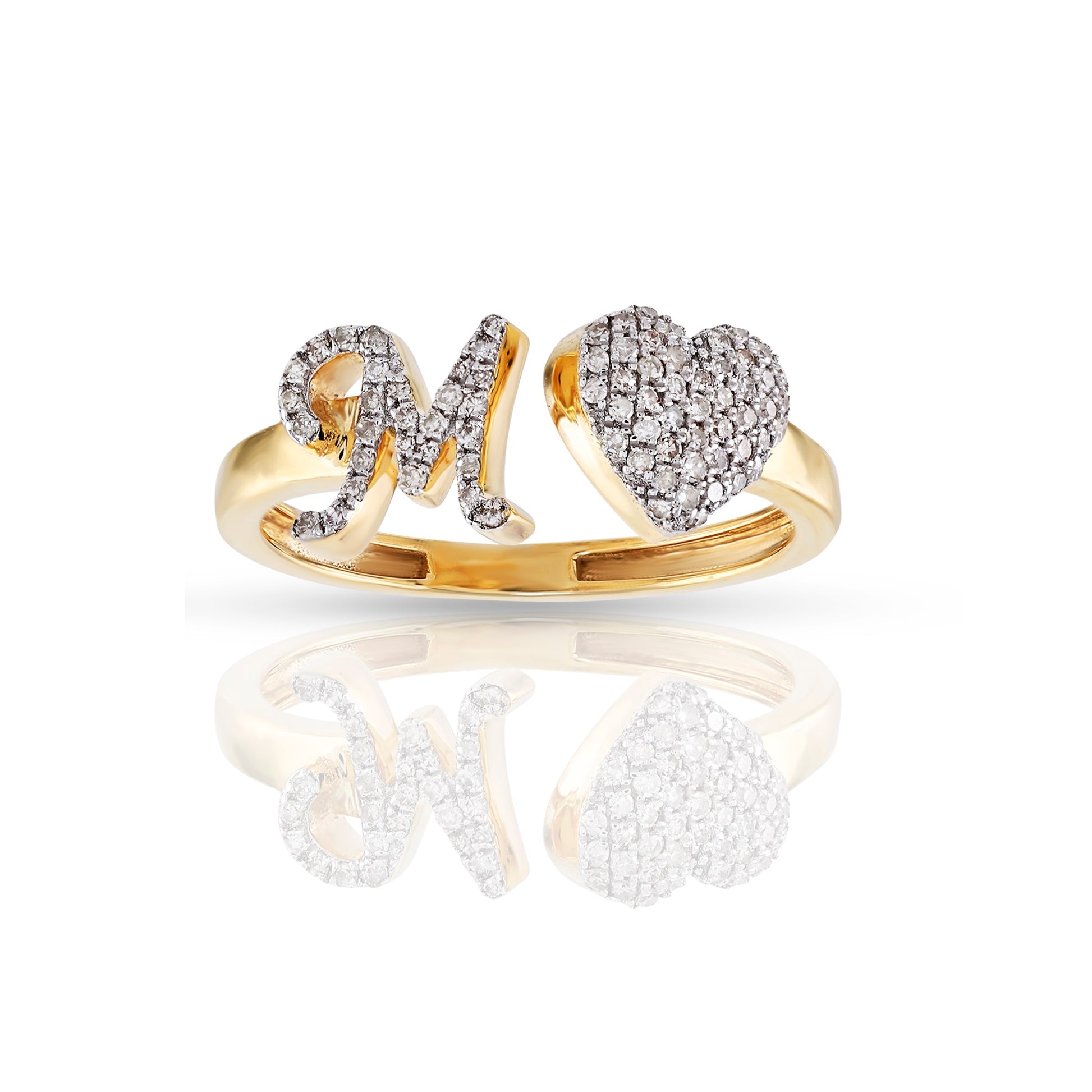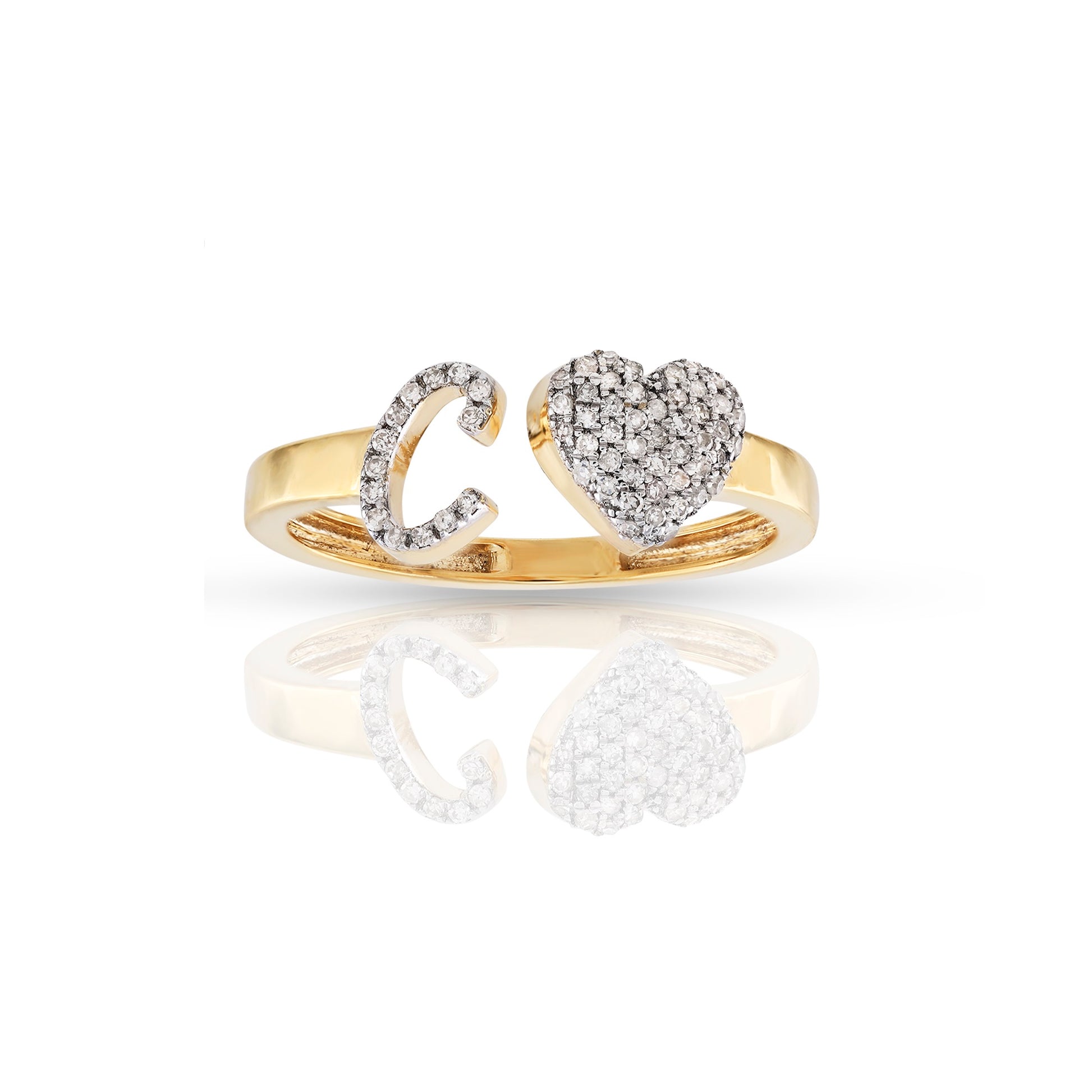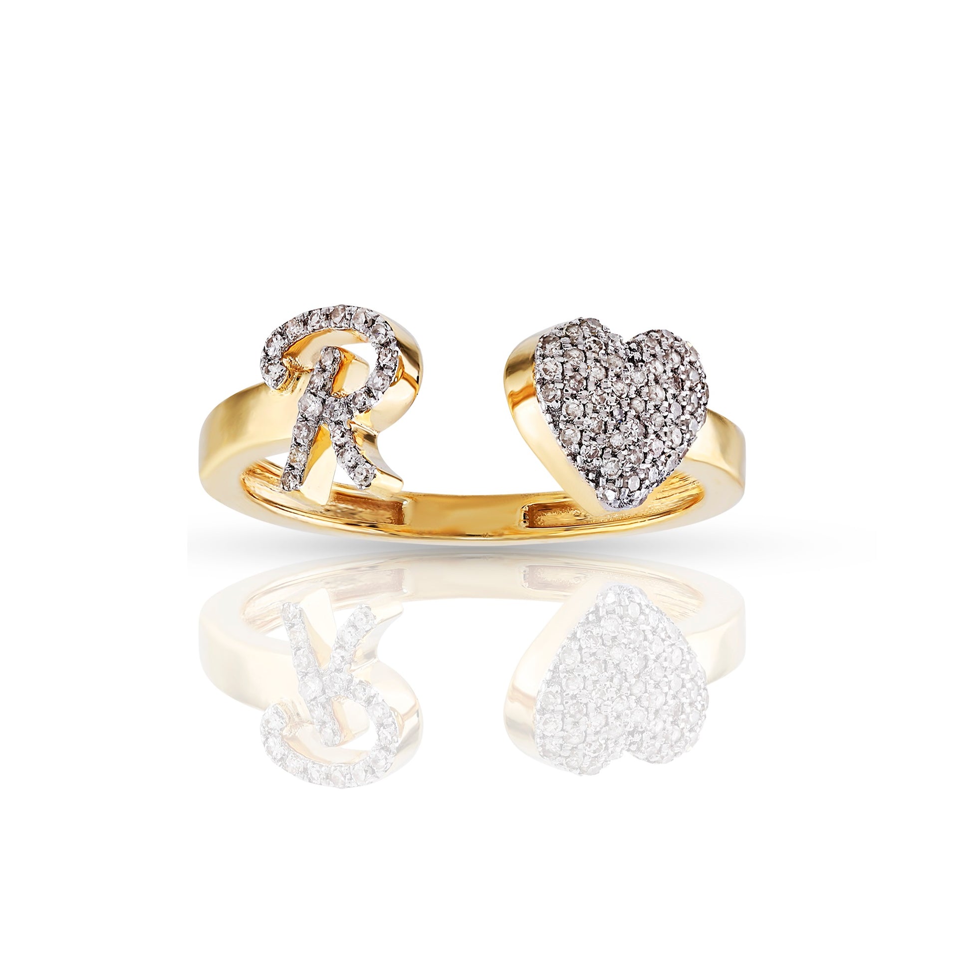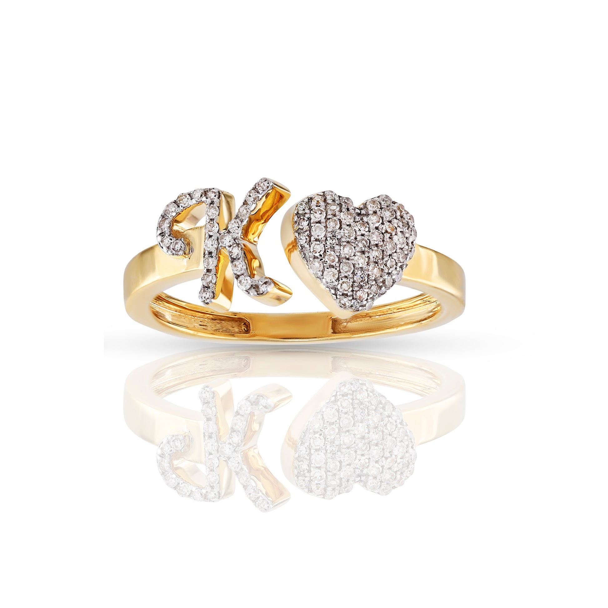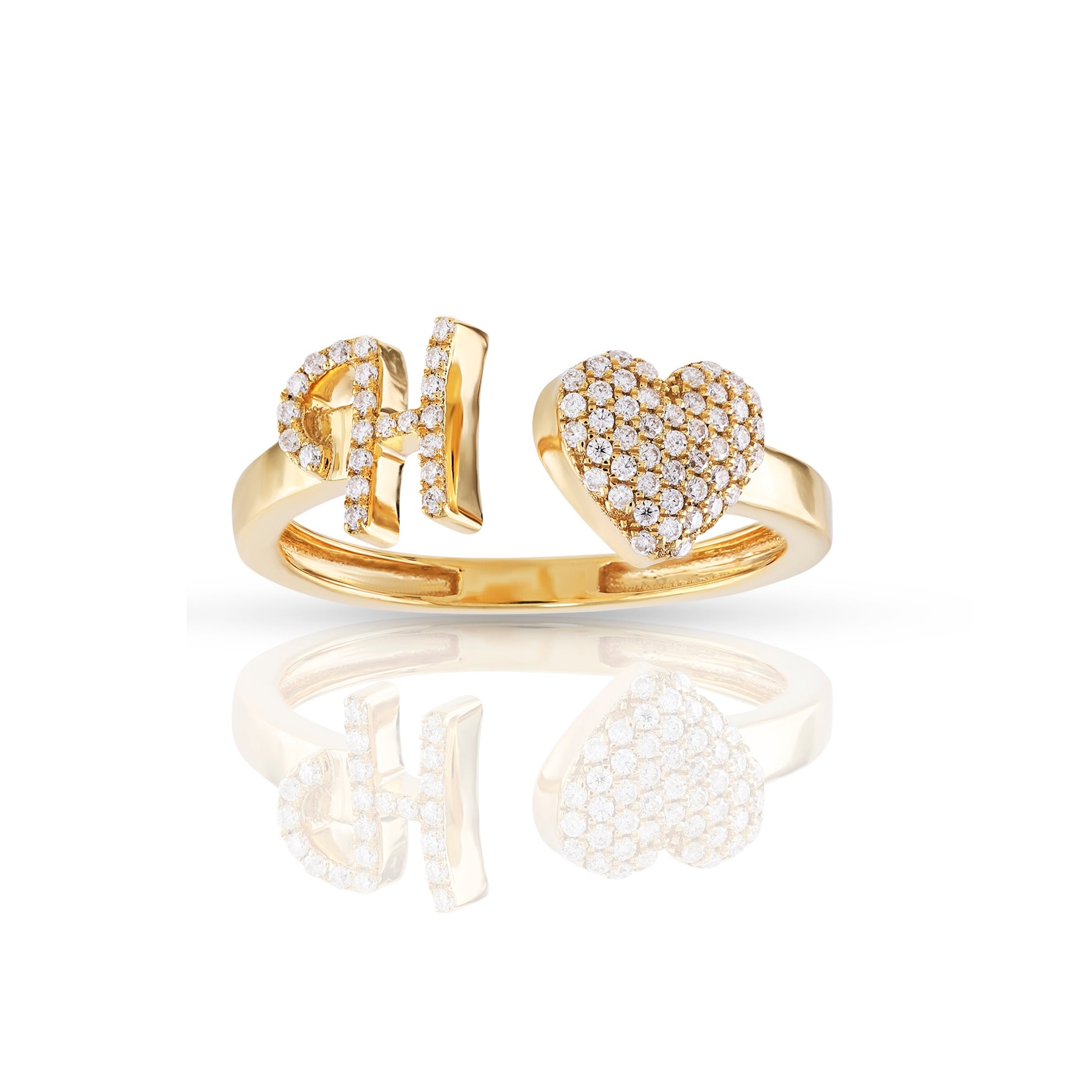 7mm Yellow Gold White Diamond Heart Initial Letters Rings by Demira Jewels