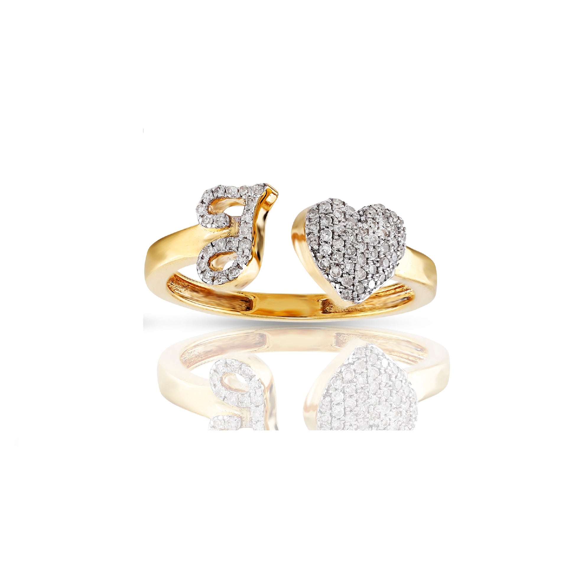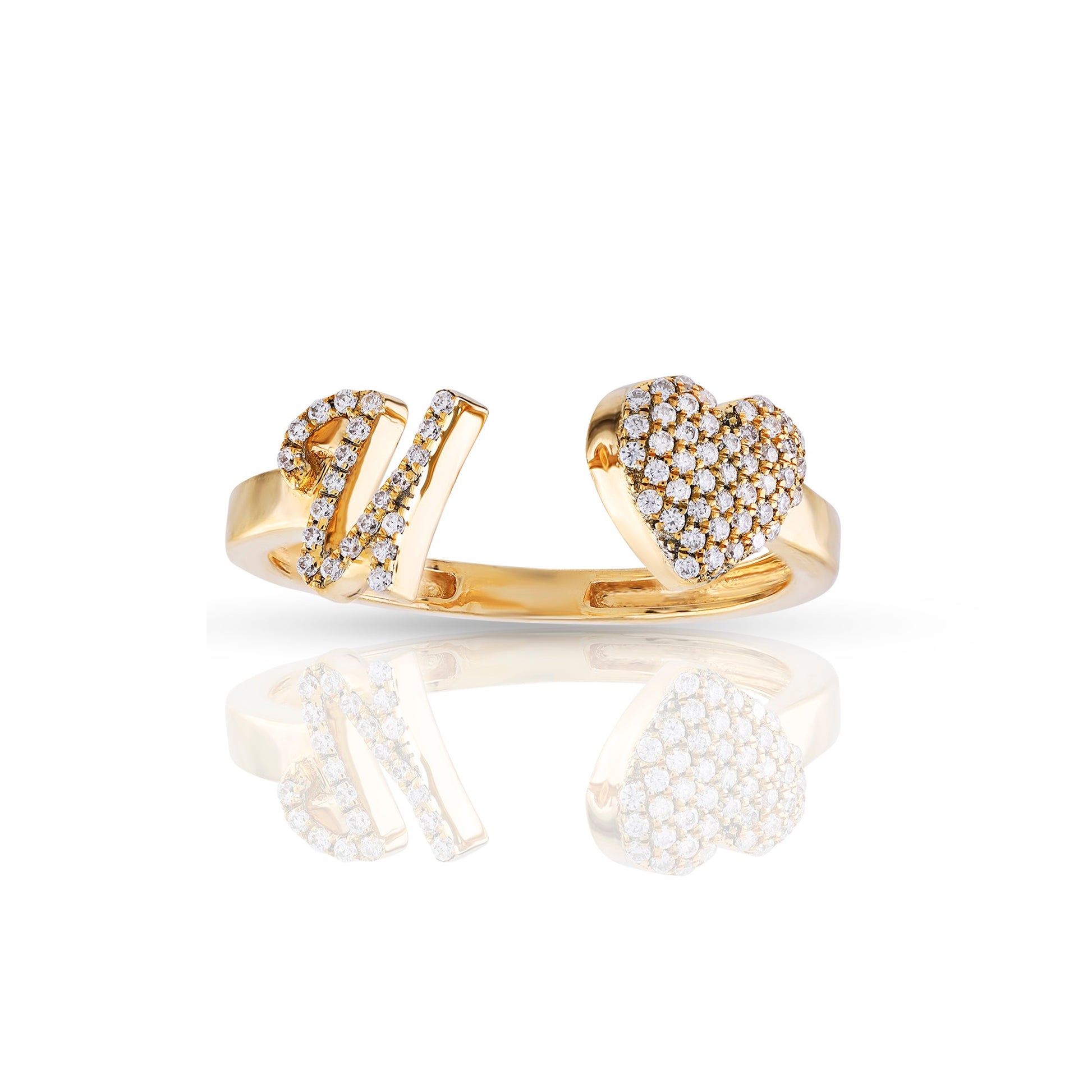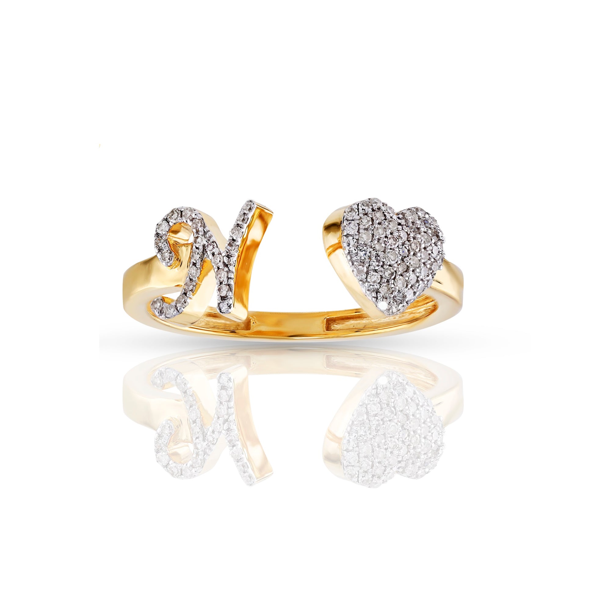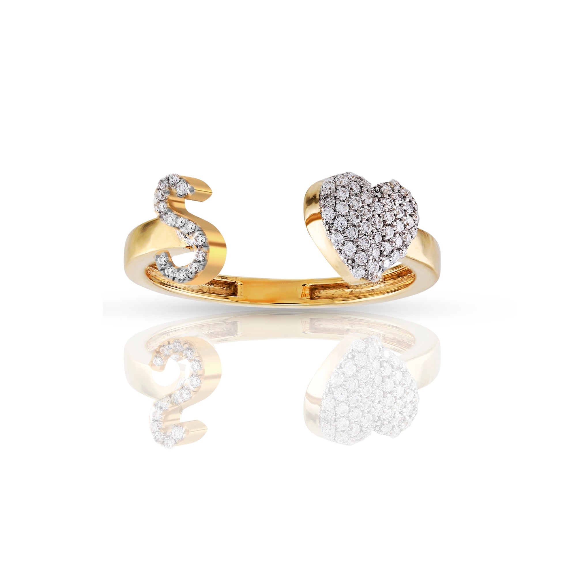7mm Yellow Gold White Diamond Heart Initial Letters Rings by Demira Jewels
