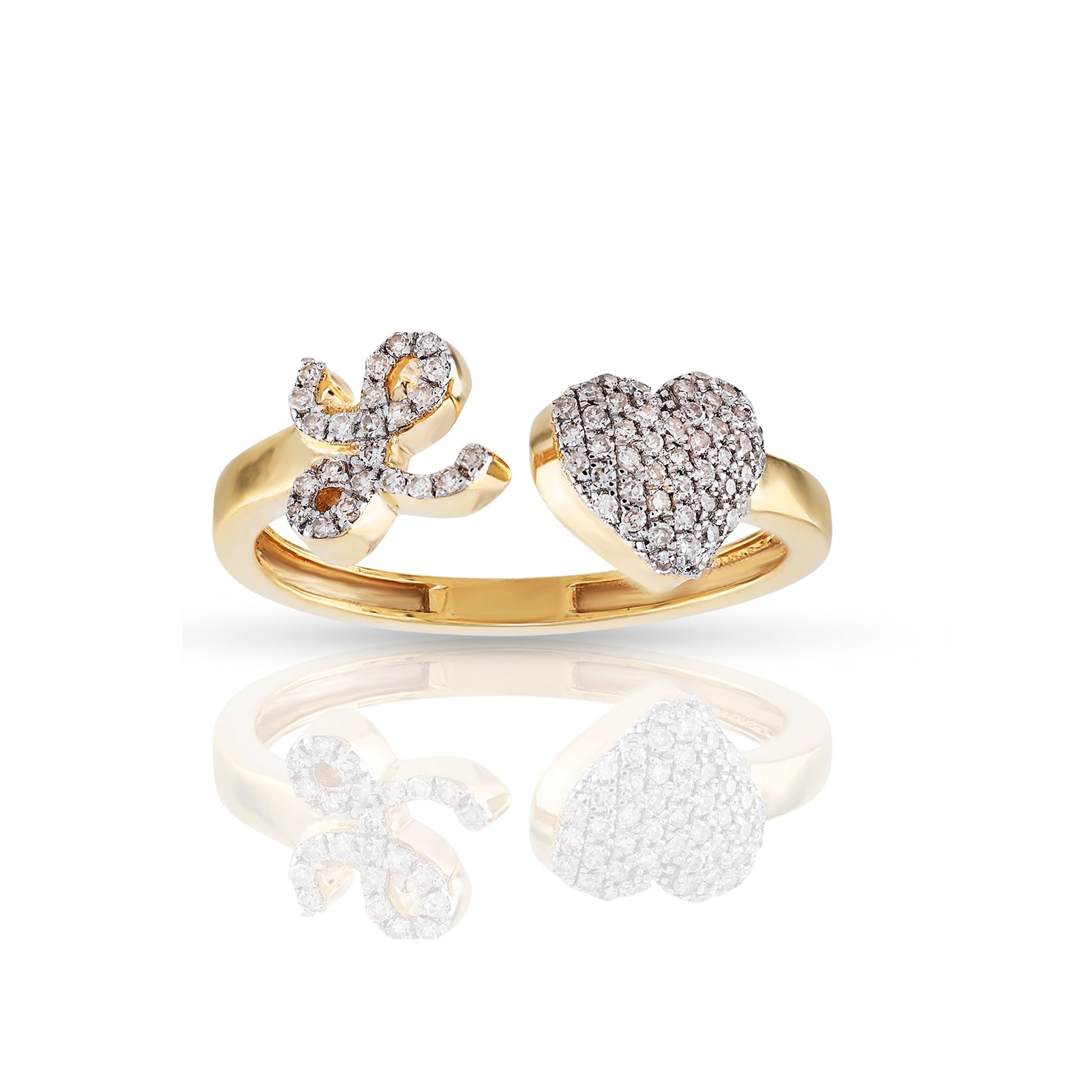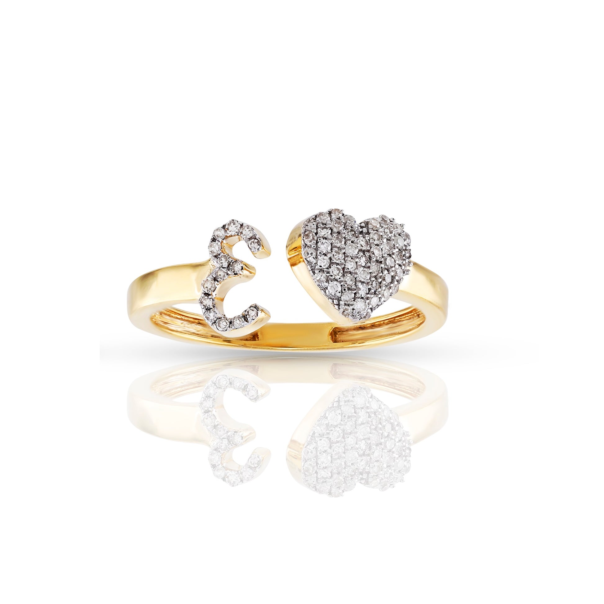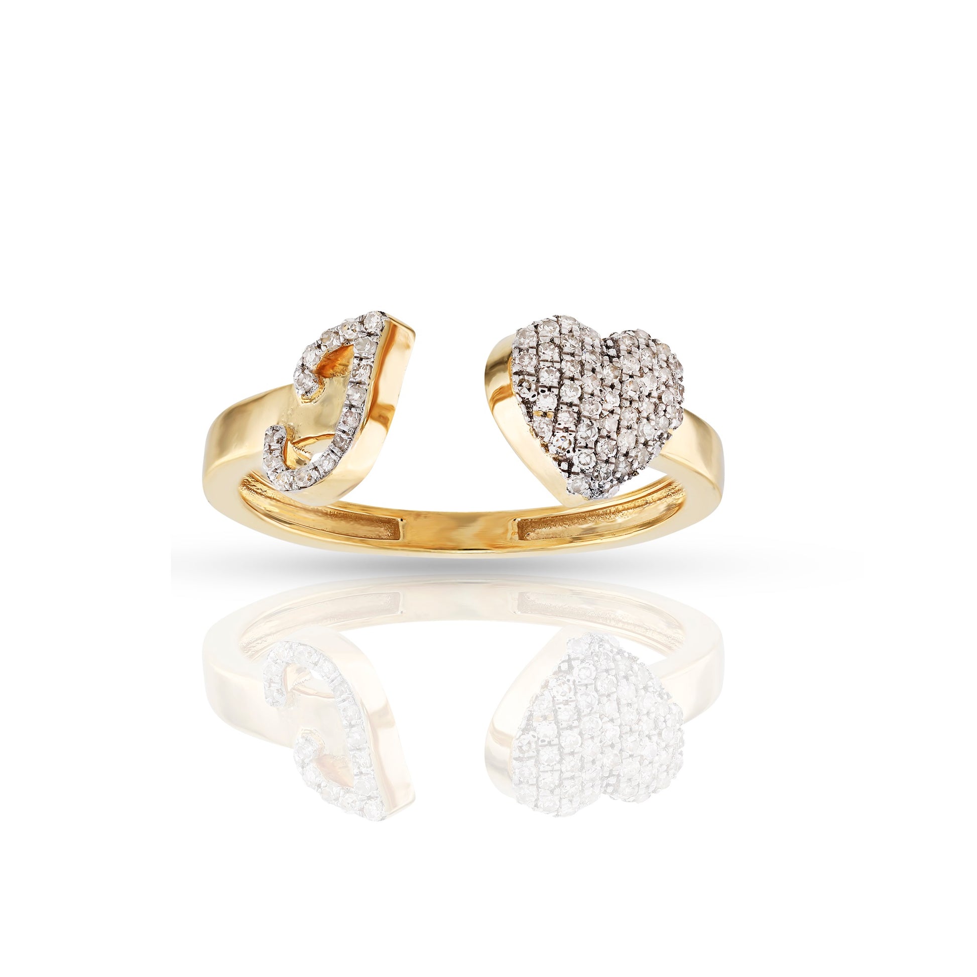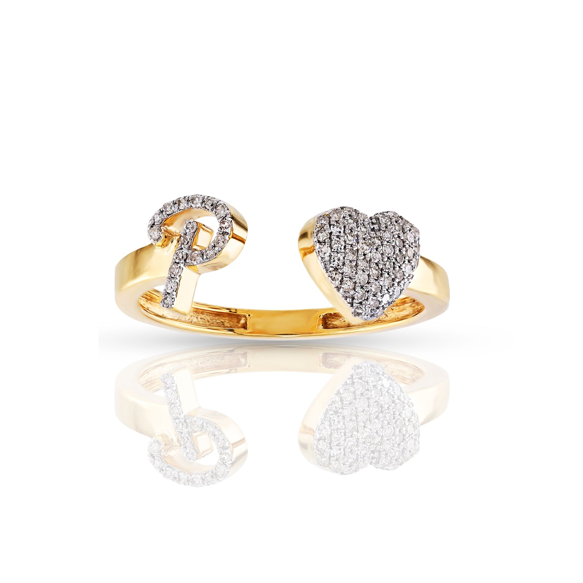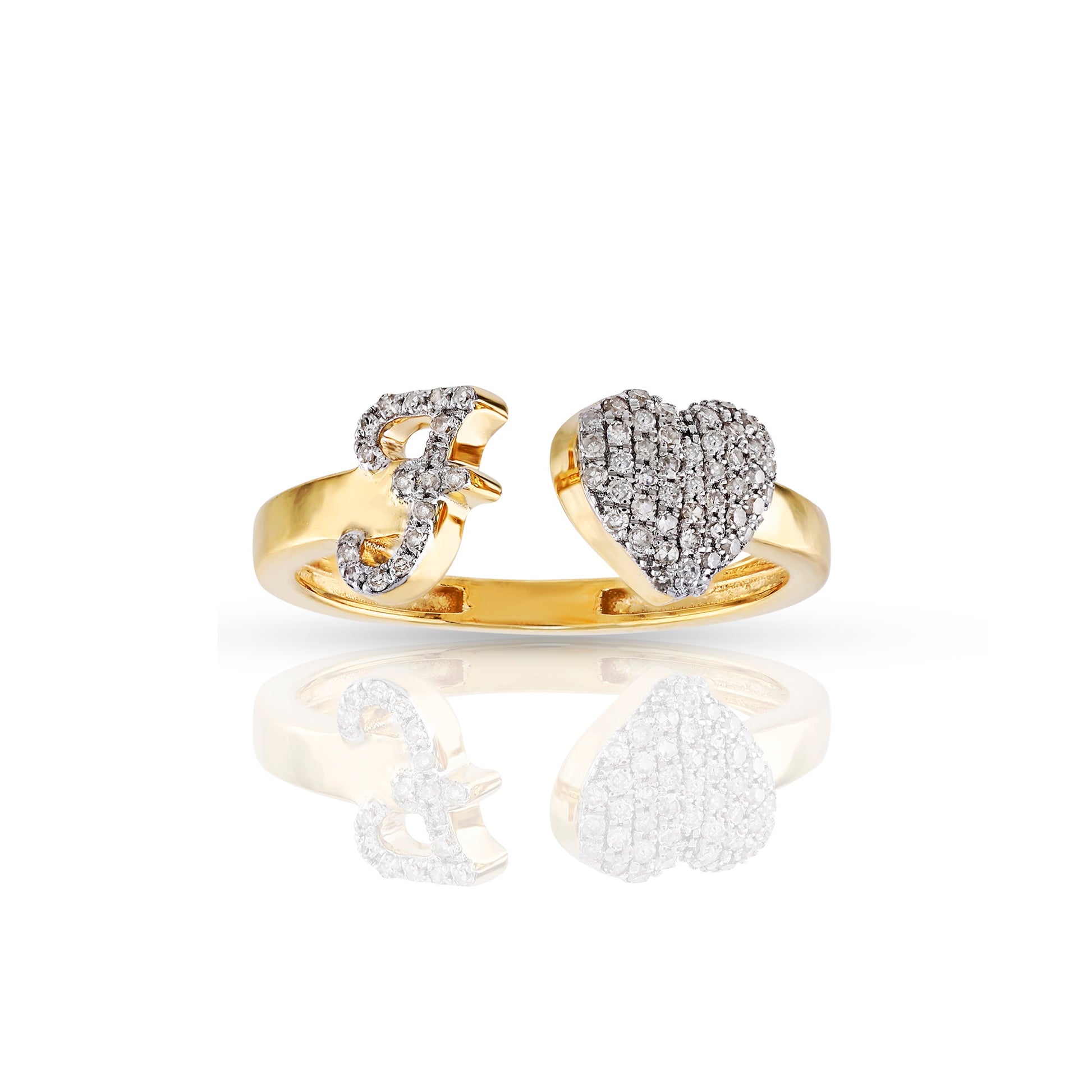 7mm Yellow Gold White Diamond Heart Initial Letters Rings by Demira Jewels