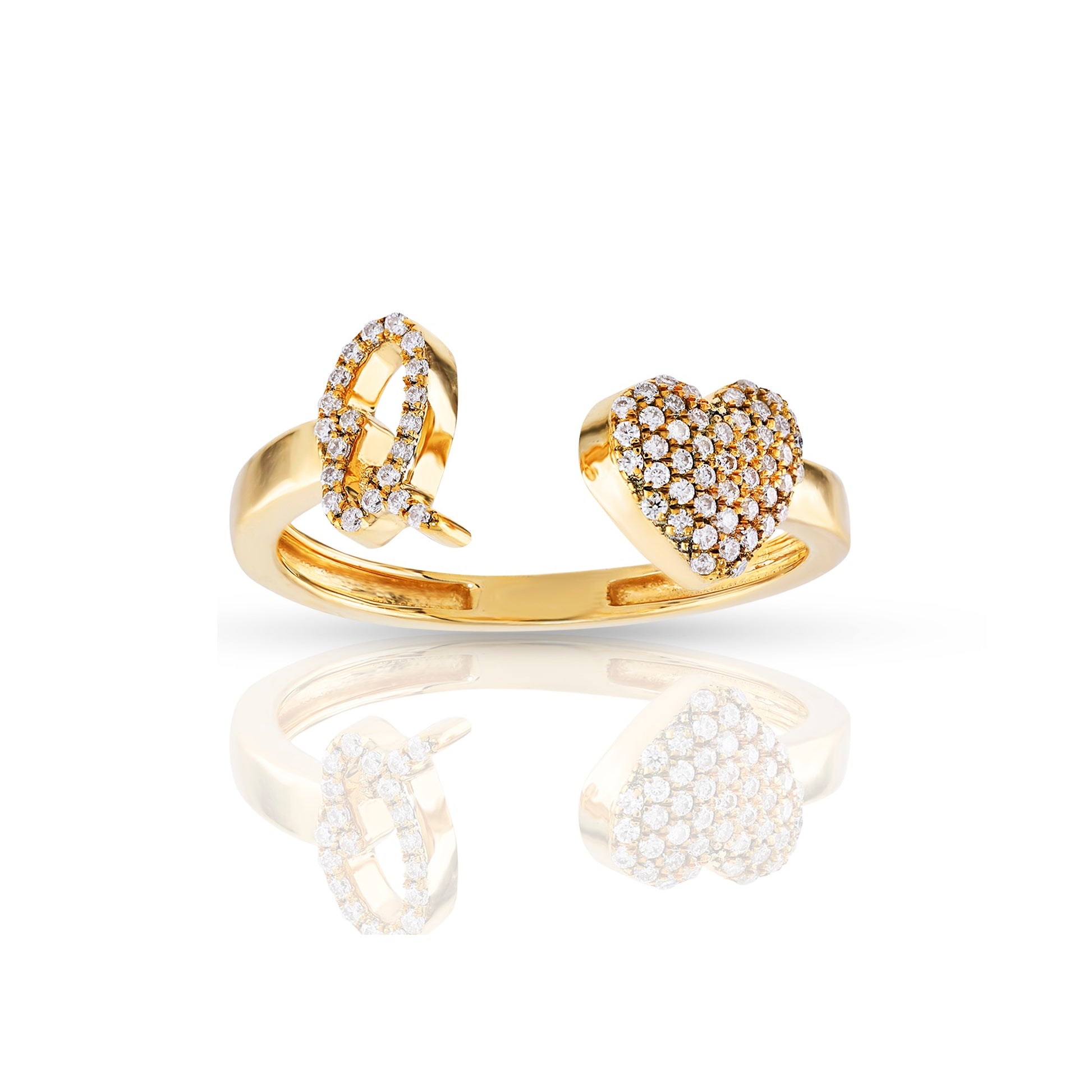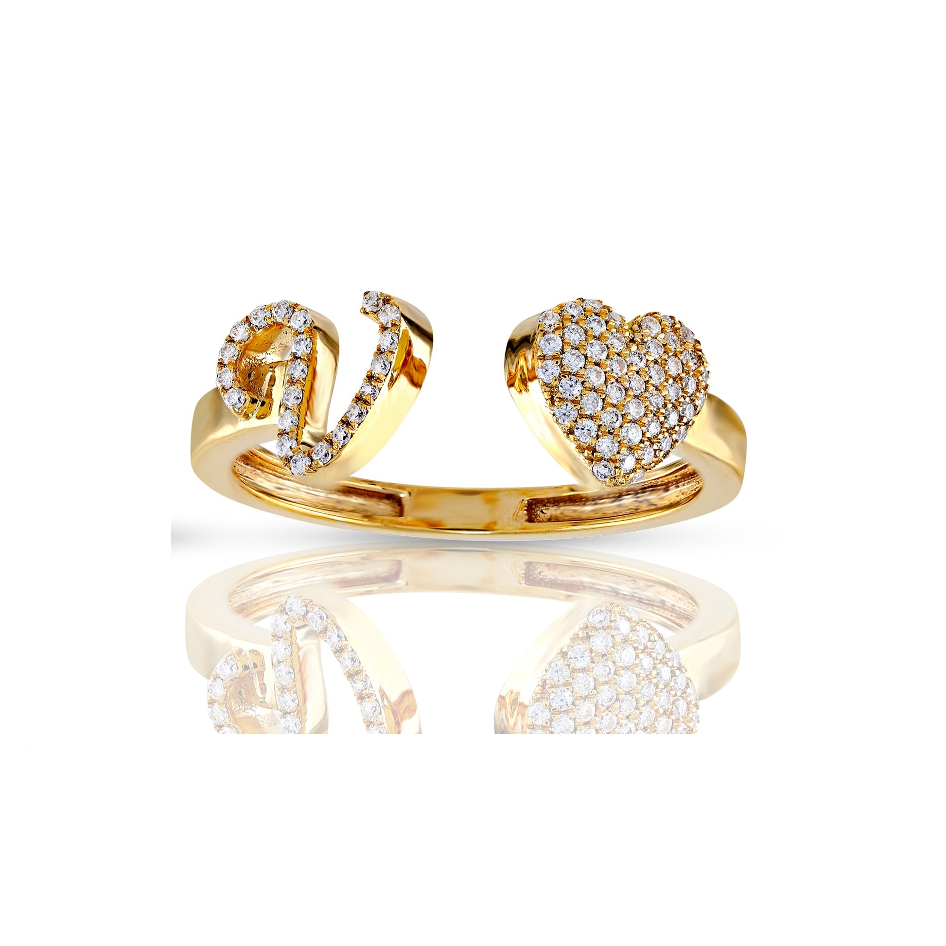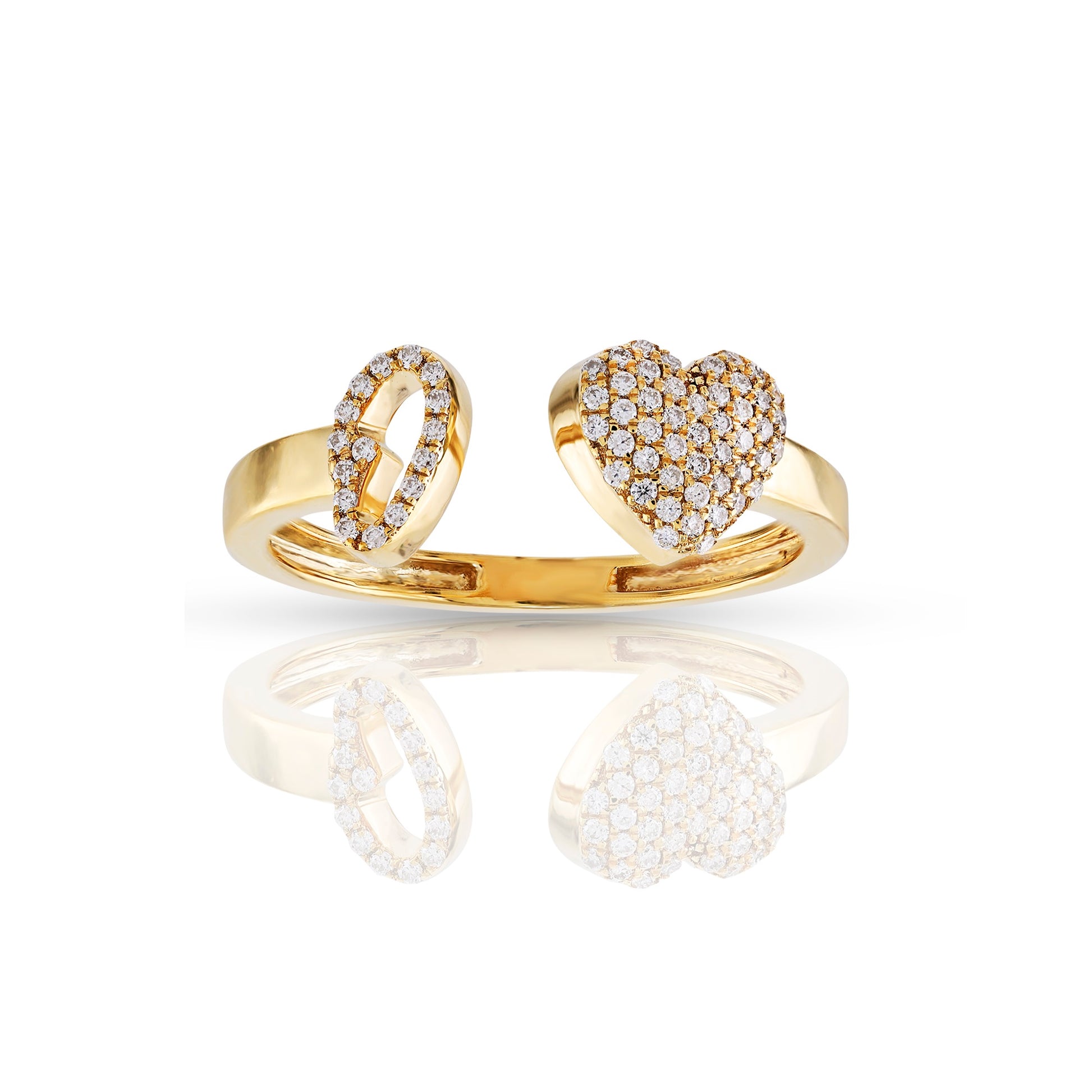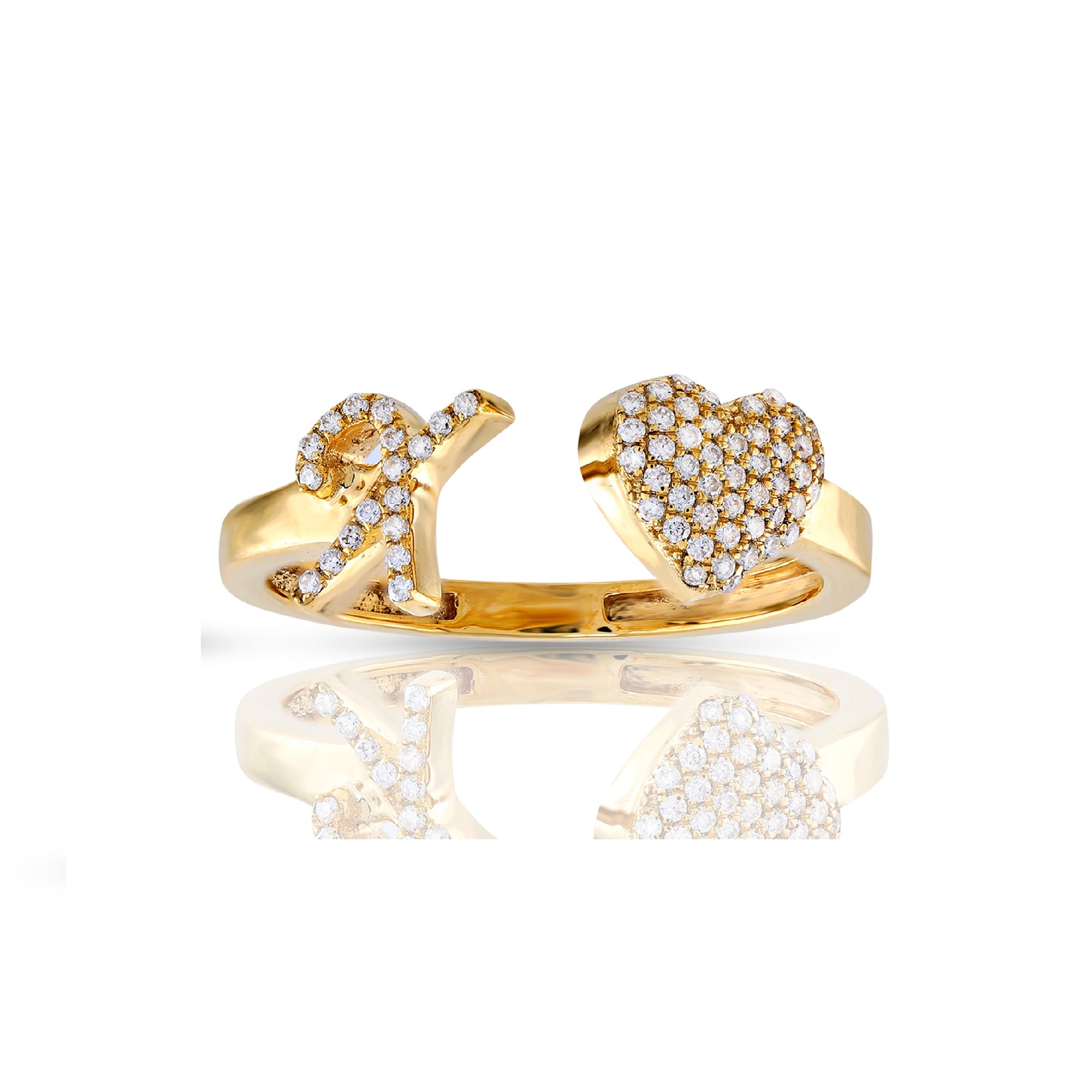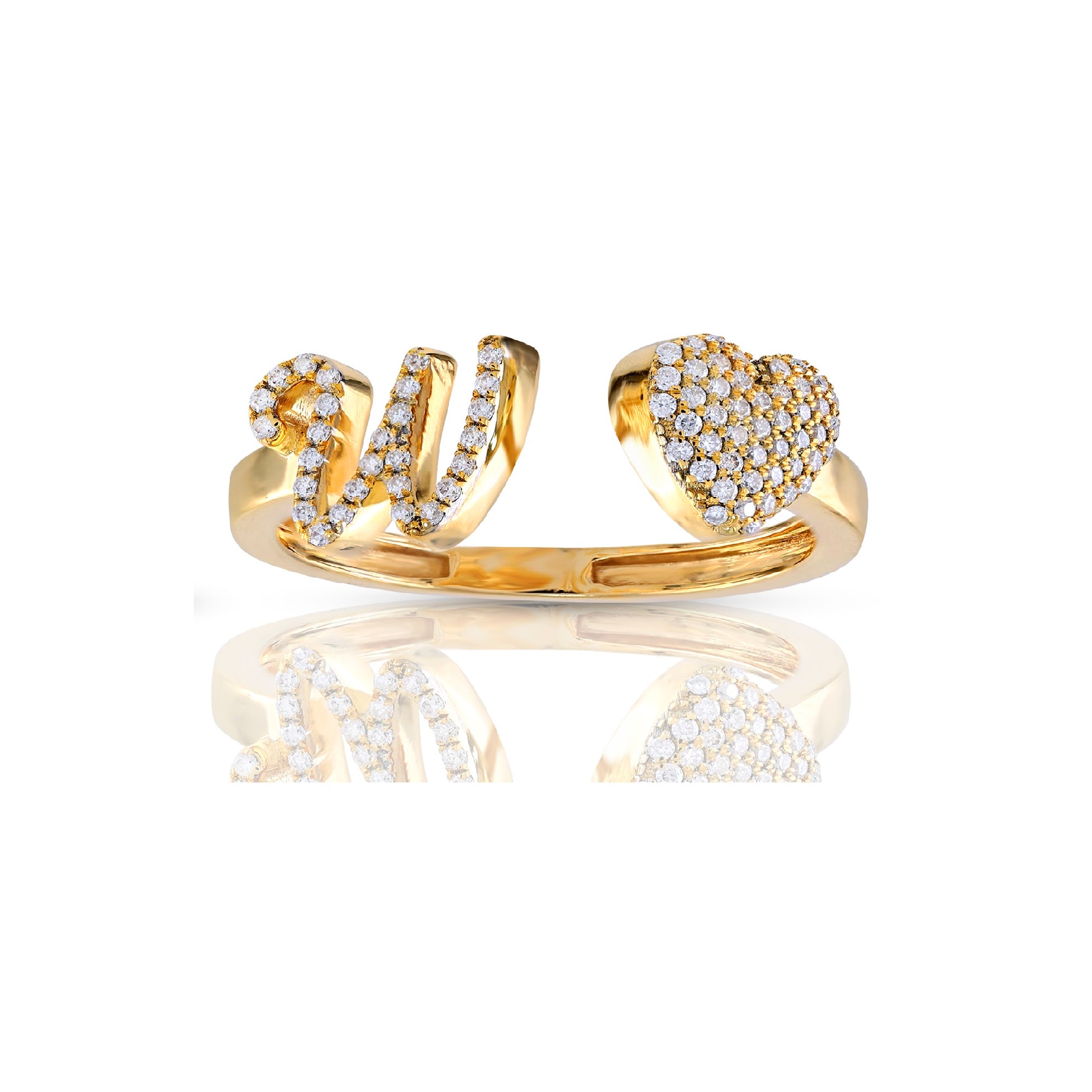 7mm Yellow Gold White Diamond Heart Initial Letters Rings by Demira Jewels