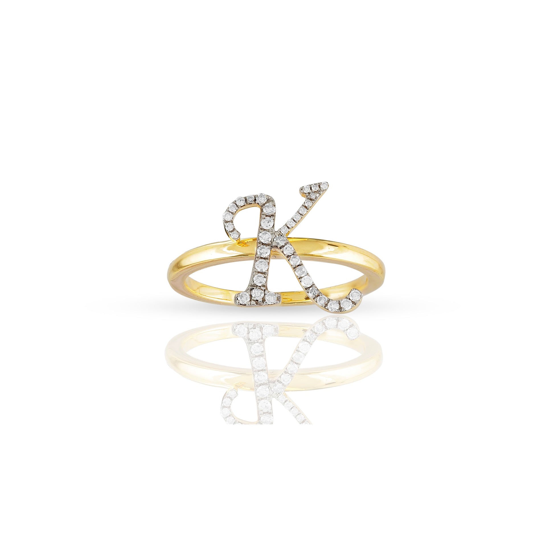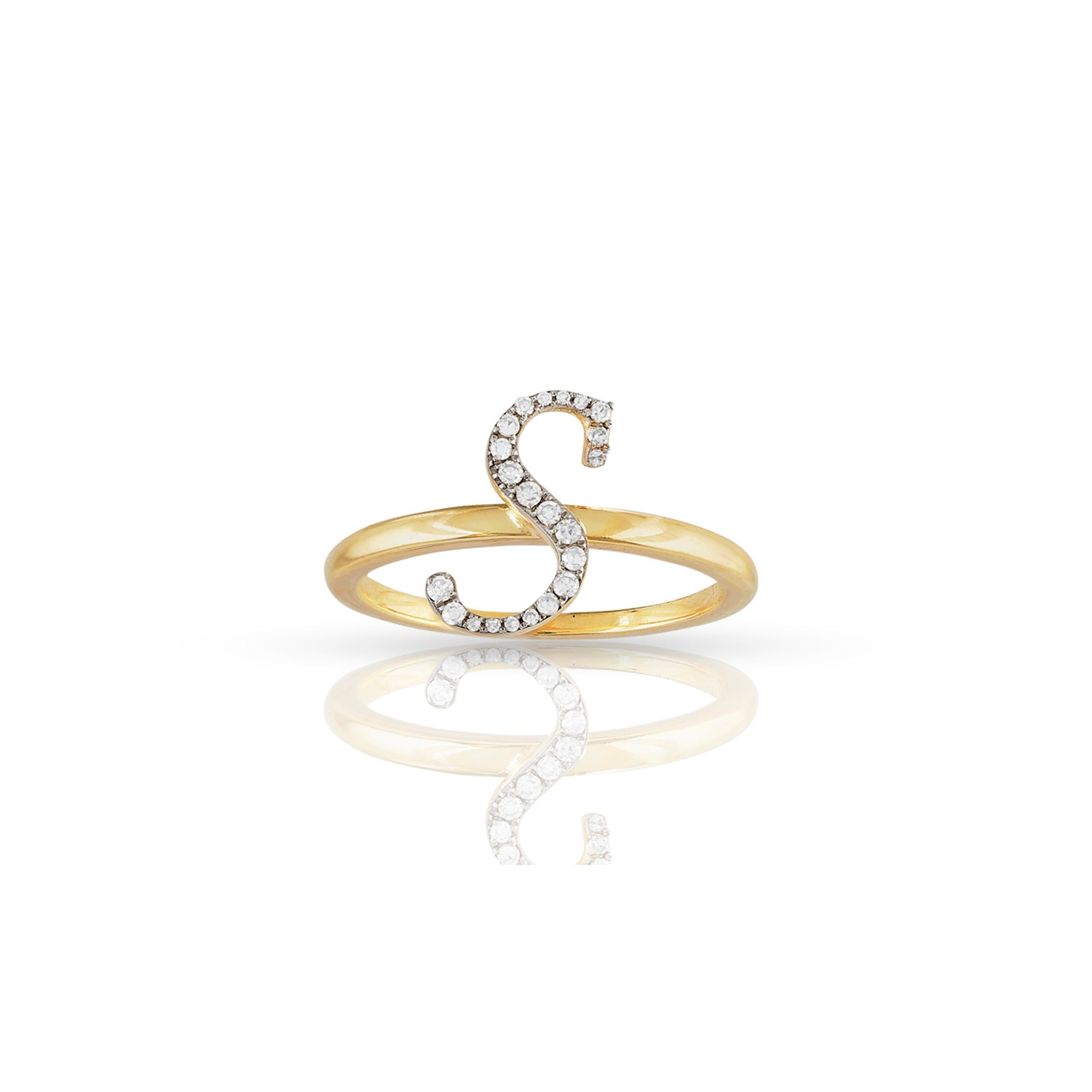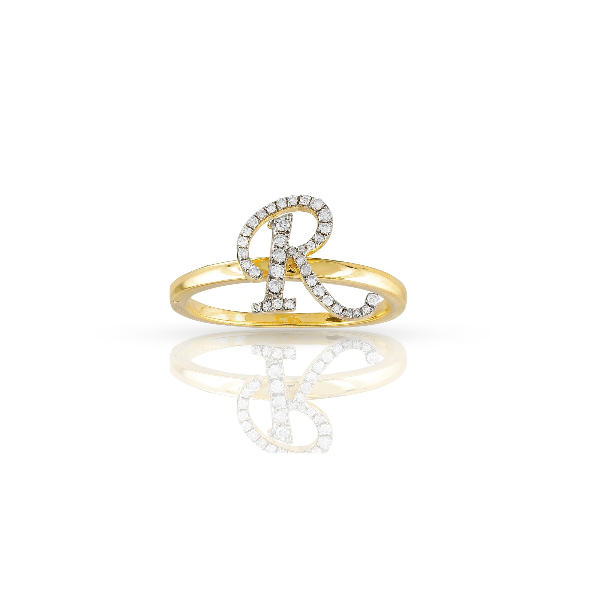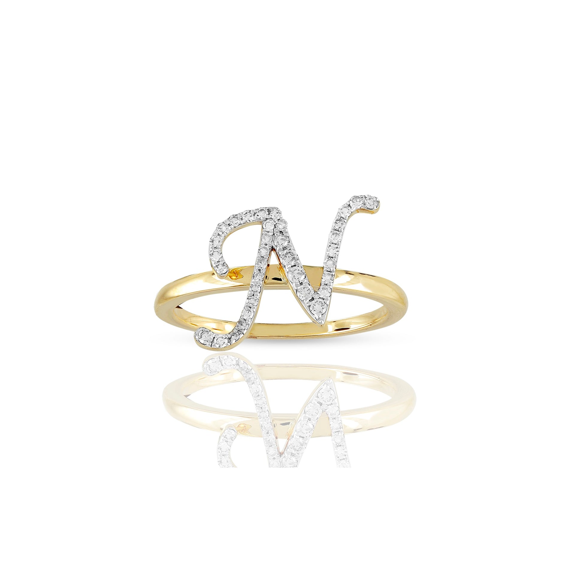 Personalized Luxury: 12mm Yellow Gold White Diamond Initial Ring by Demira Jewels