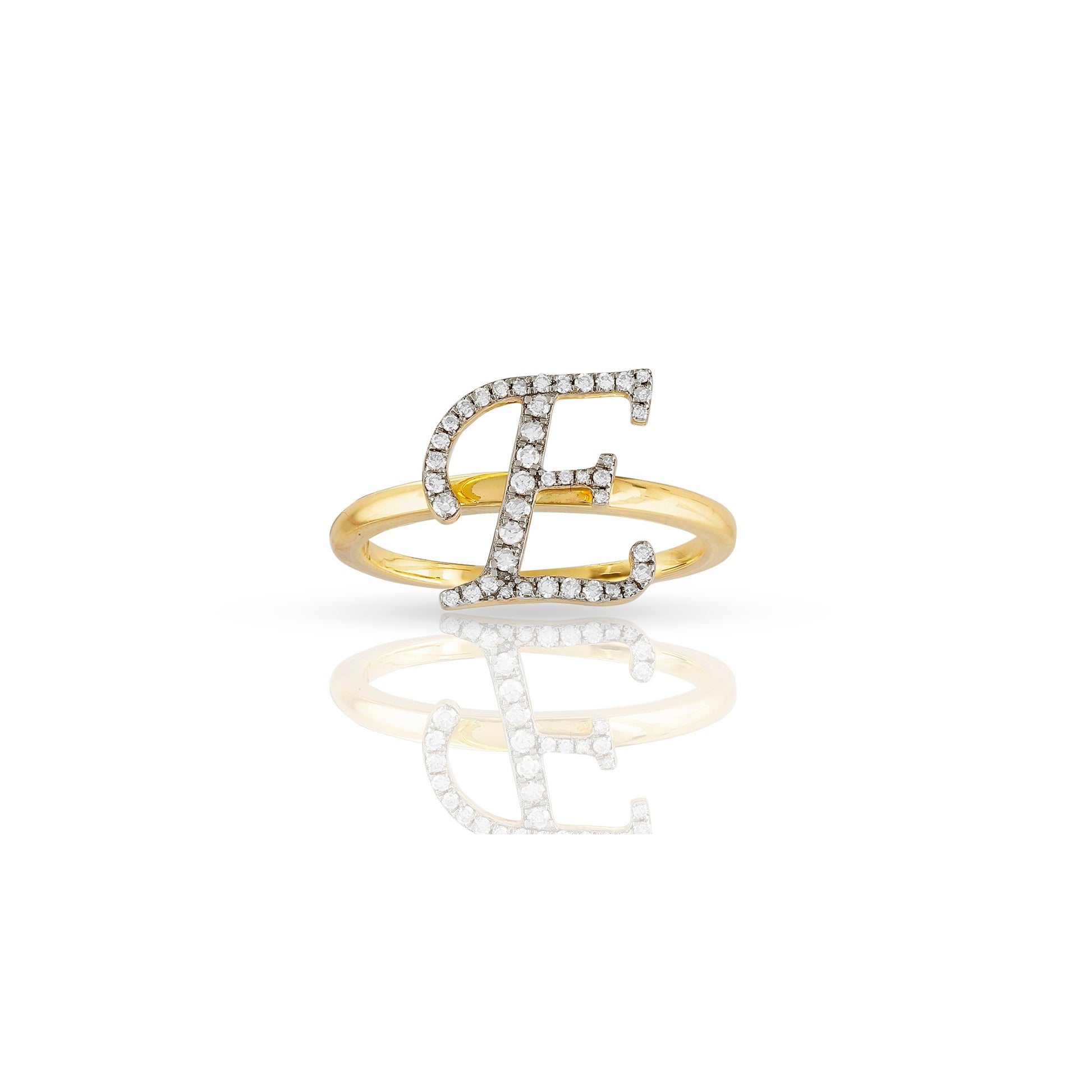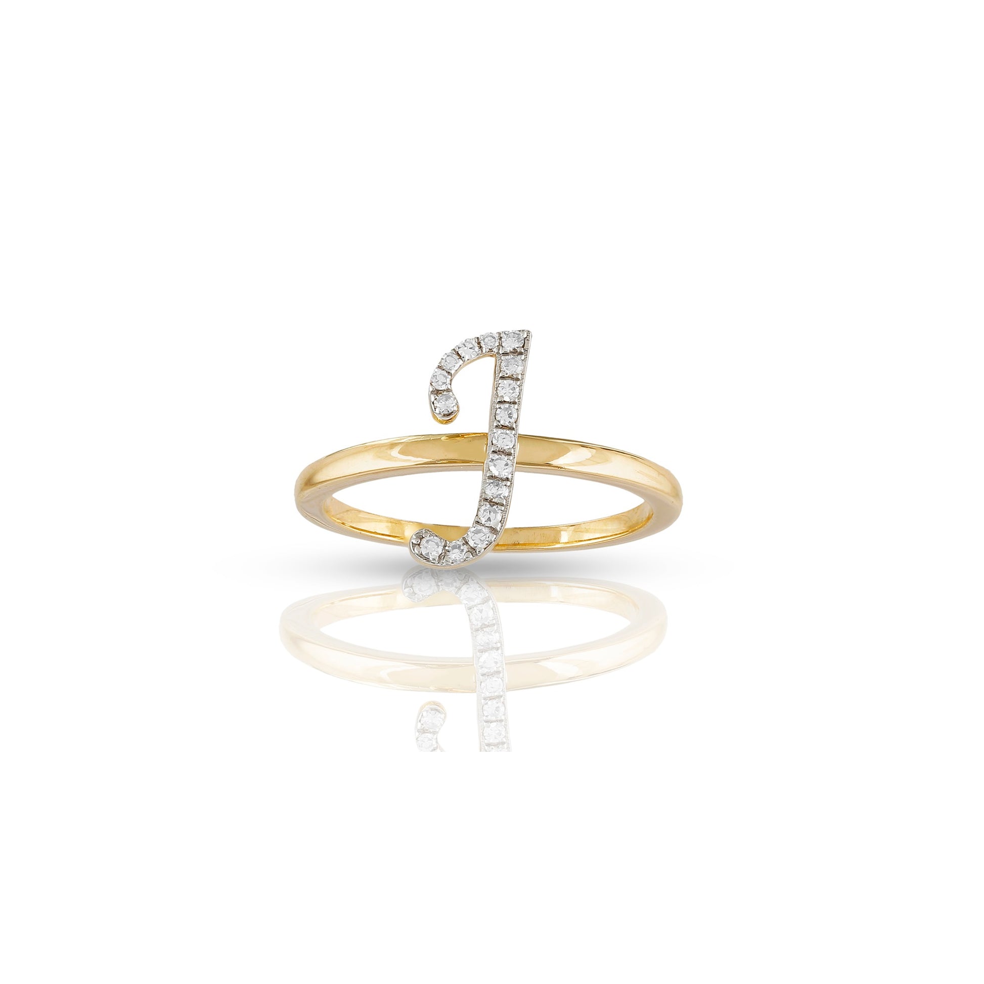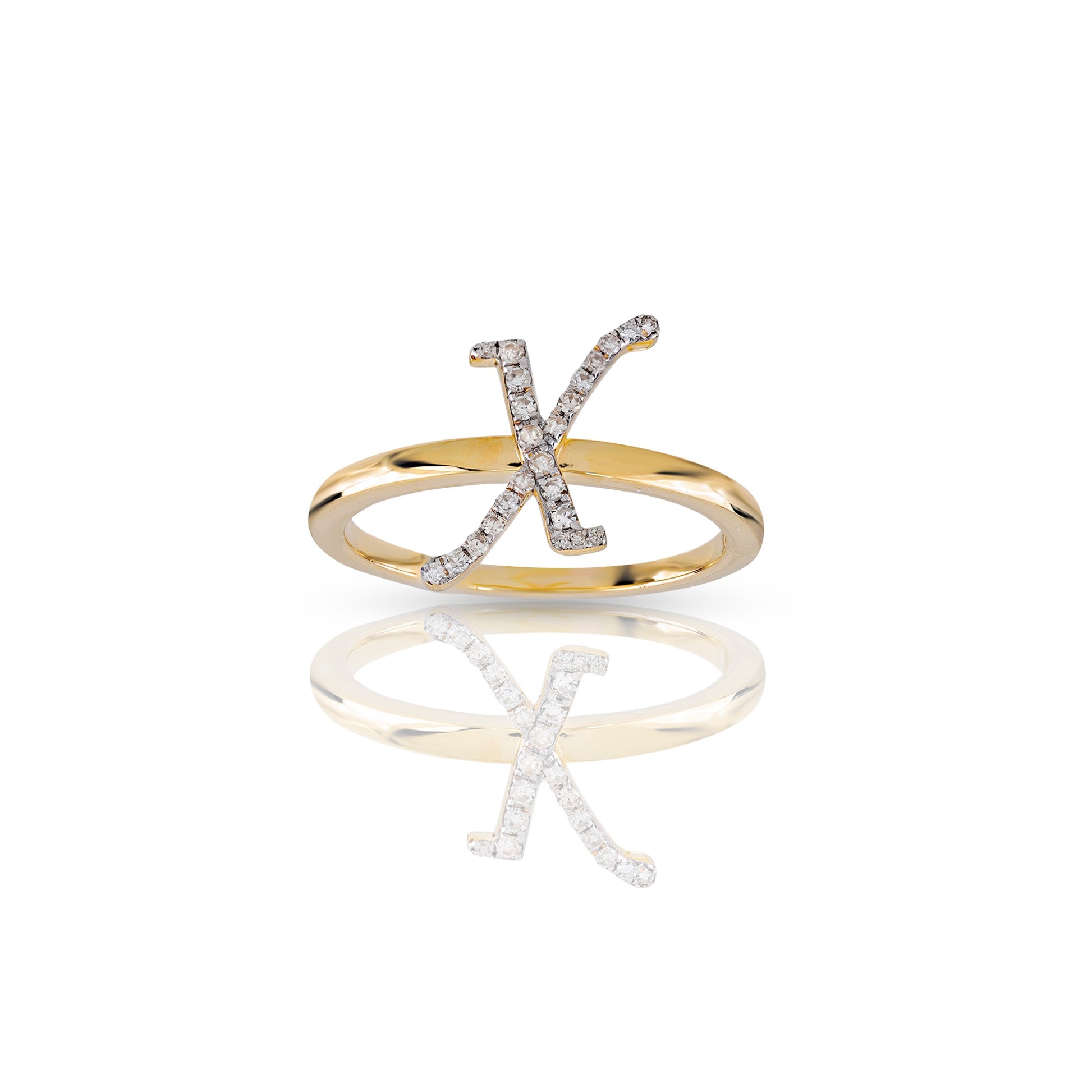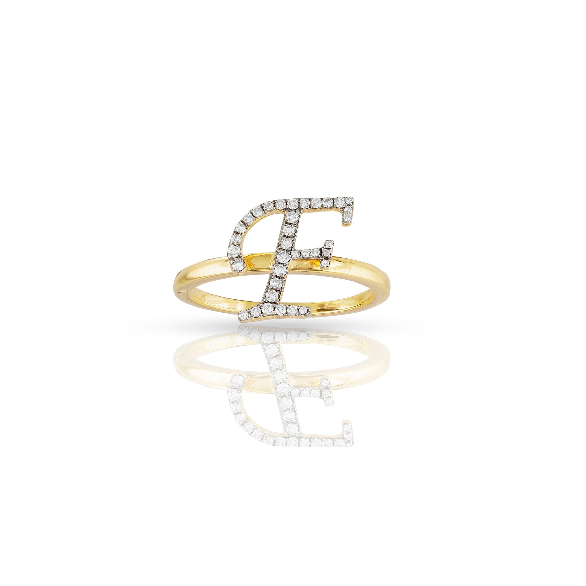 Personalized Luxury: 12mm Yellow Gold White Diamond Initial Ring by Demira Jewels
