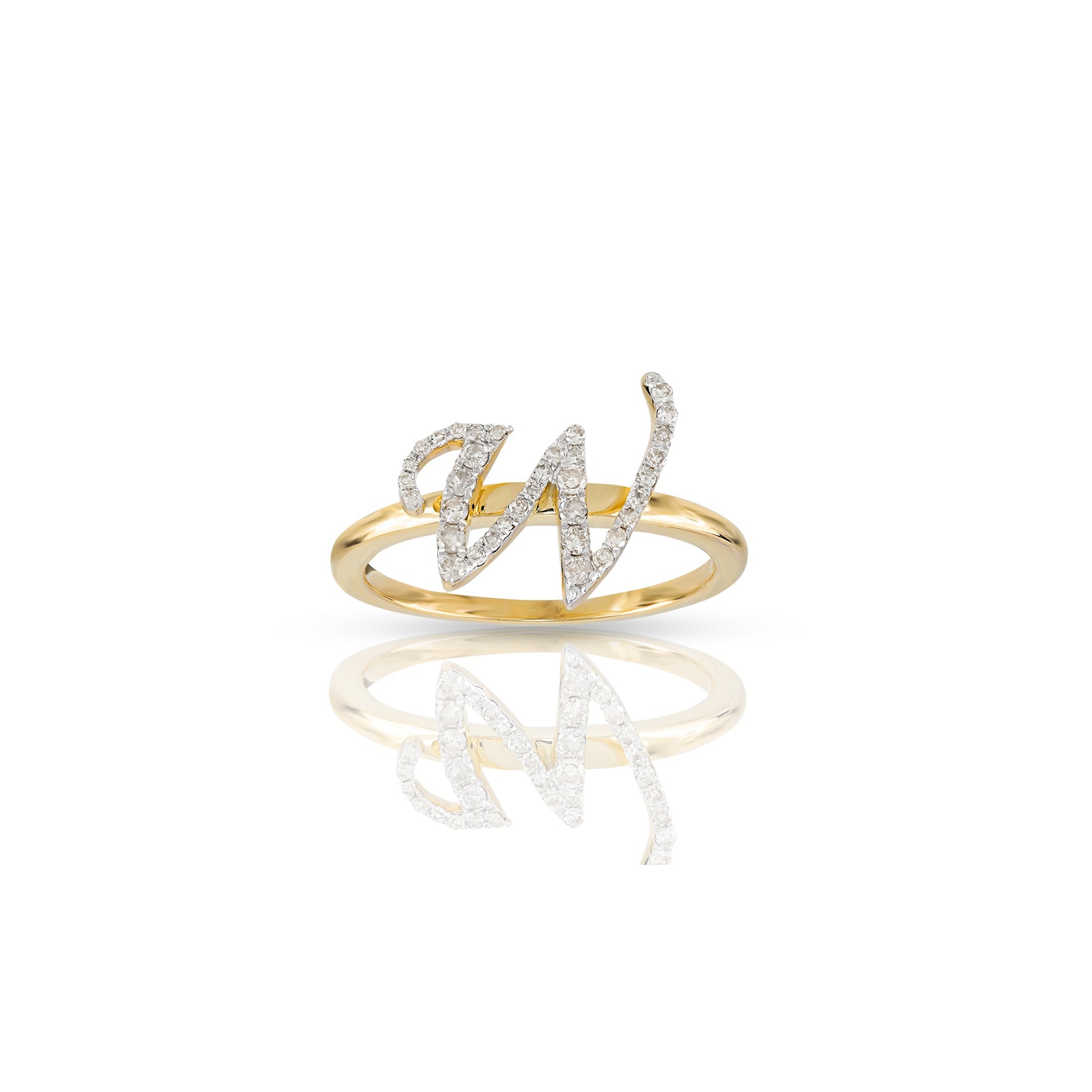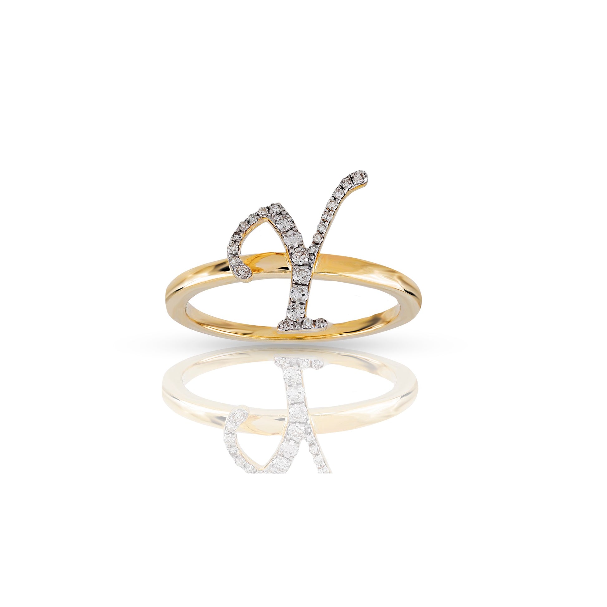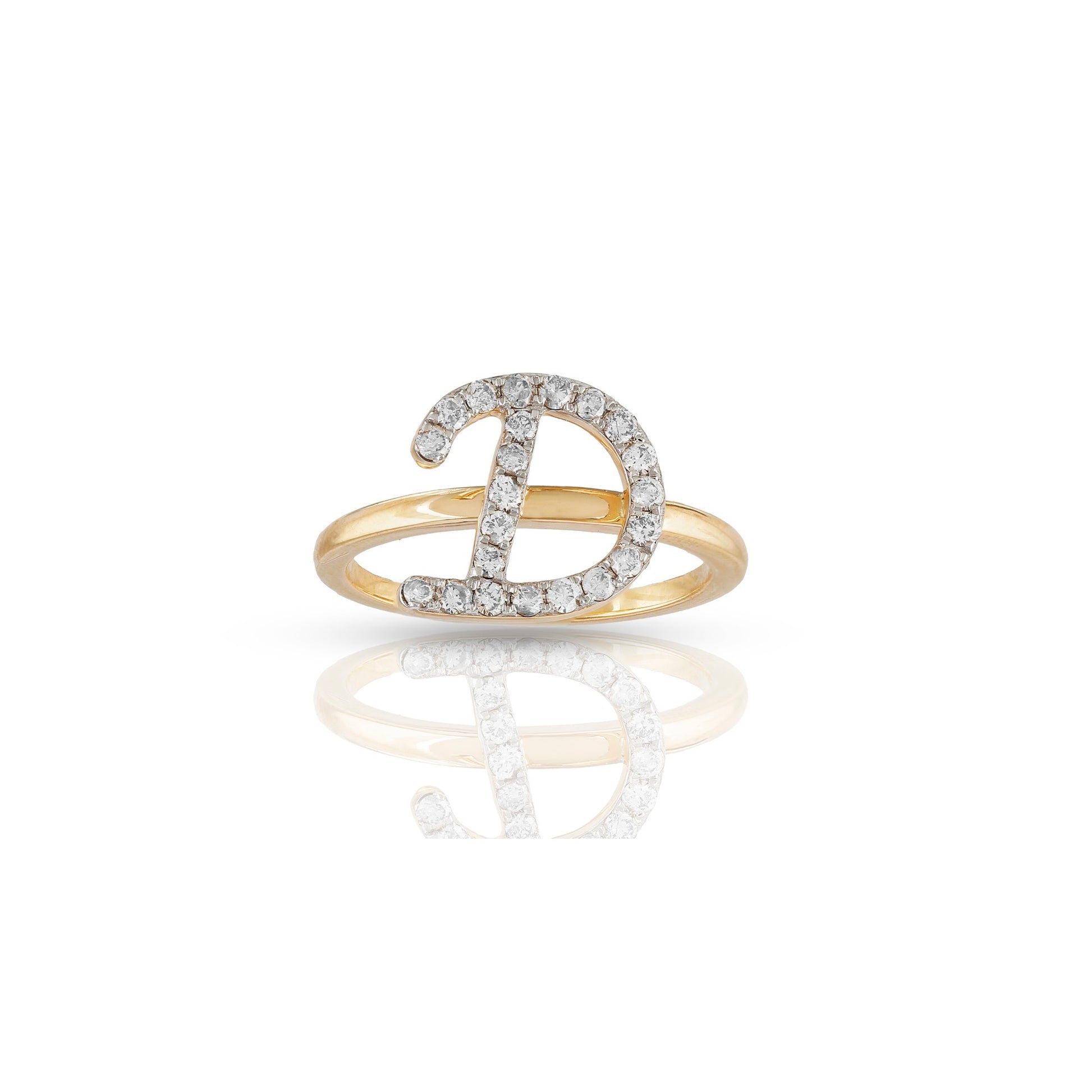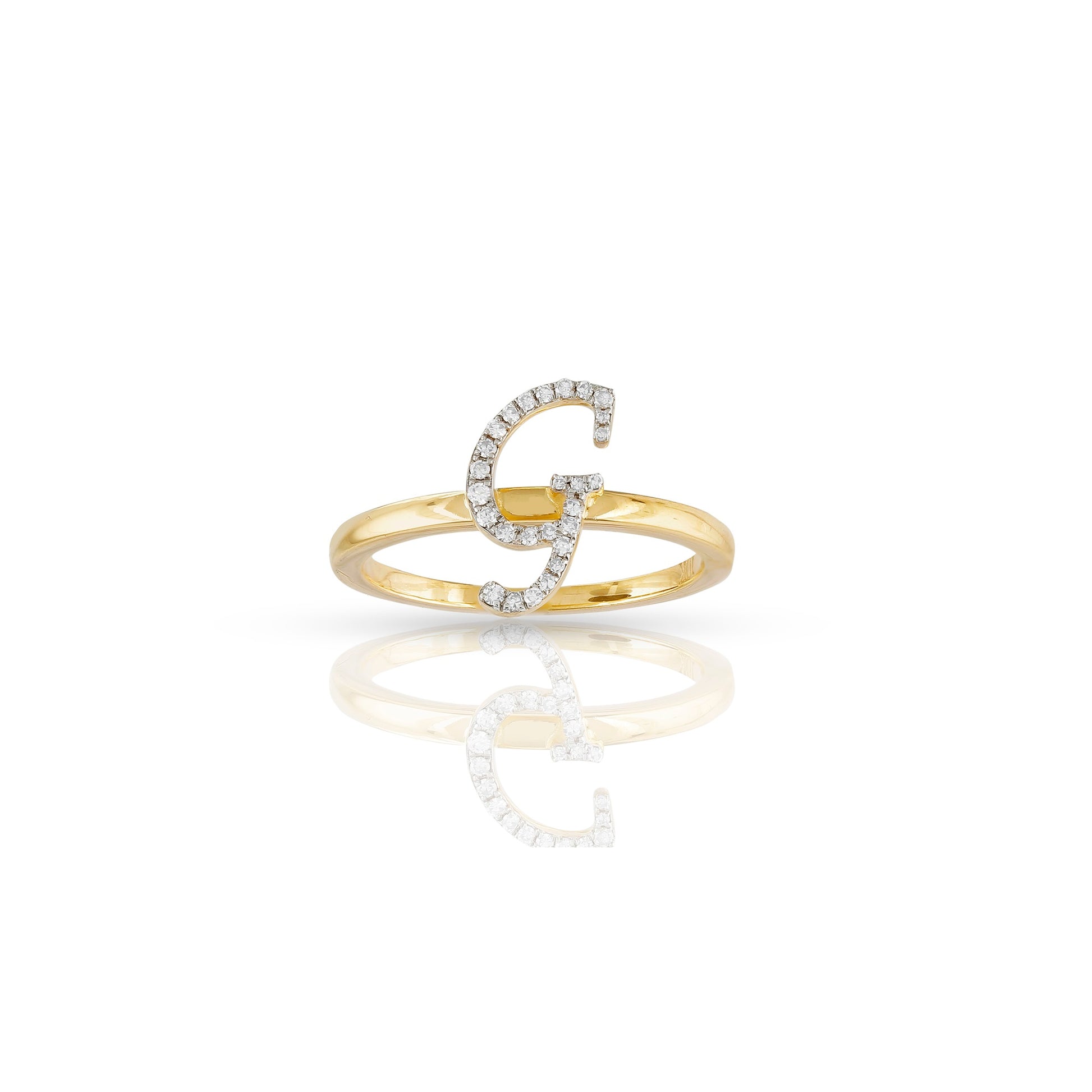 Personalized Luxury: 12mm Yellow Gold White Diamond Initial Ring by Demira Jewels