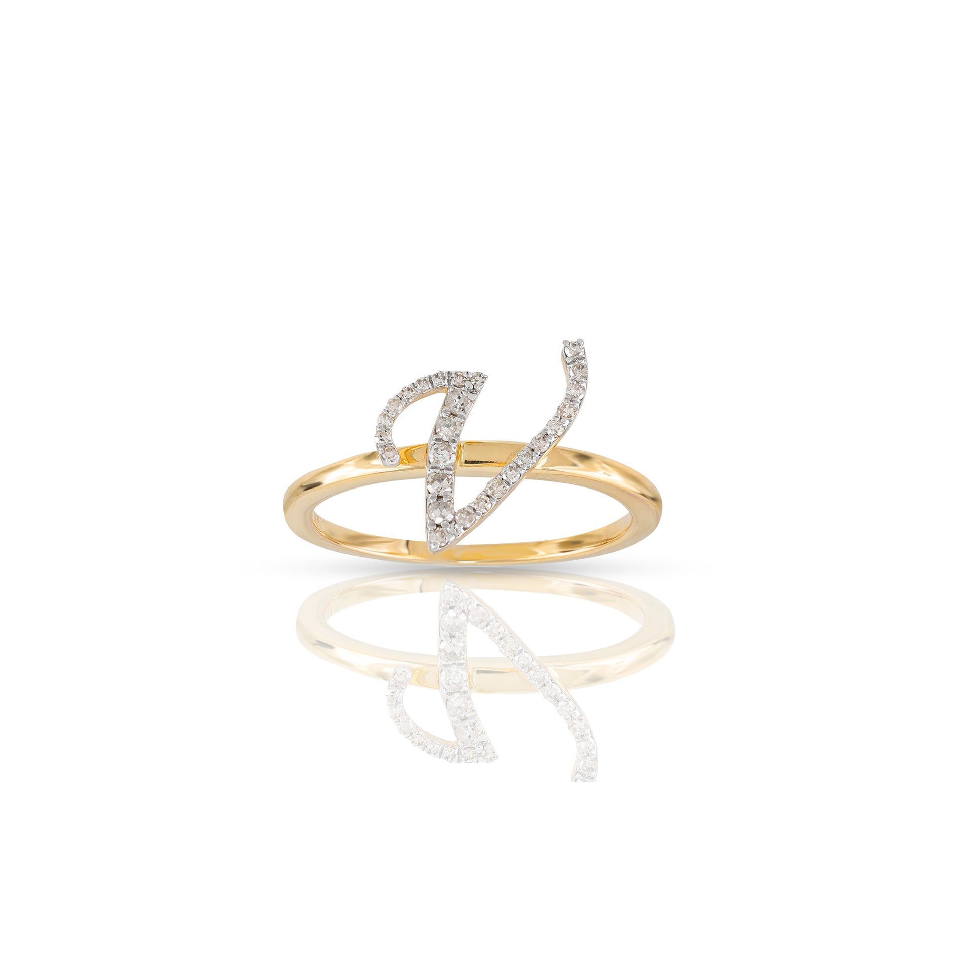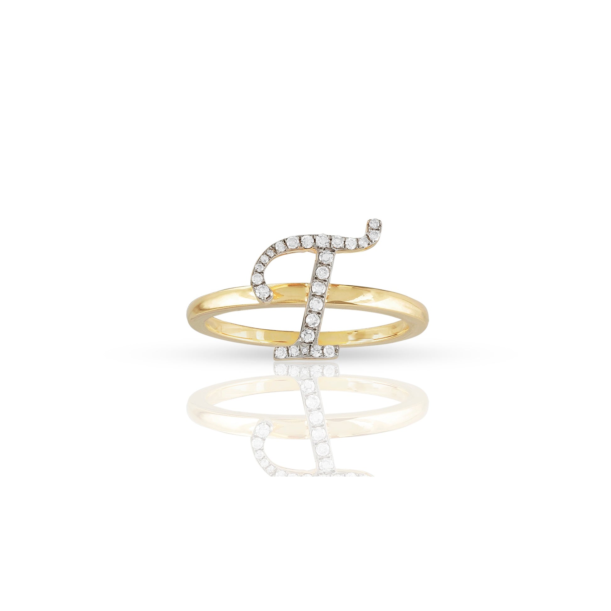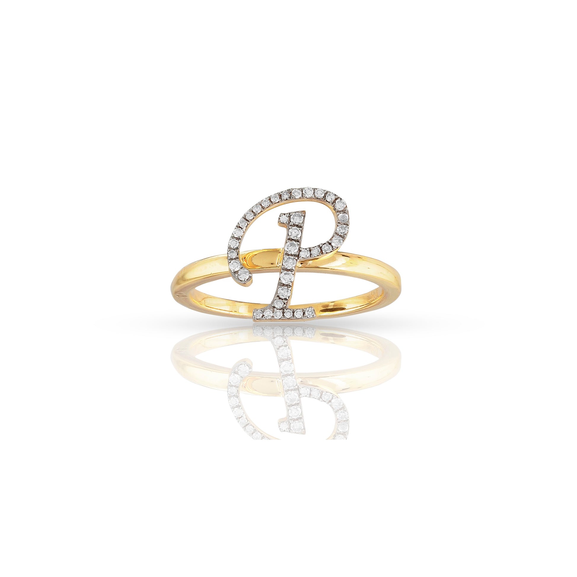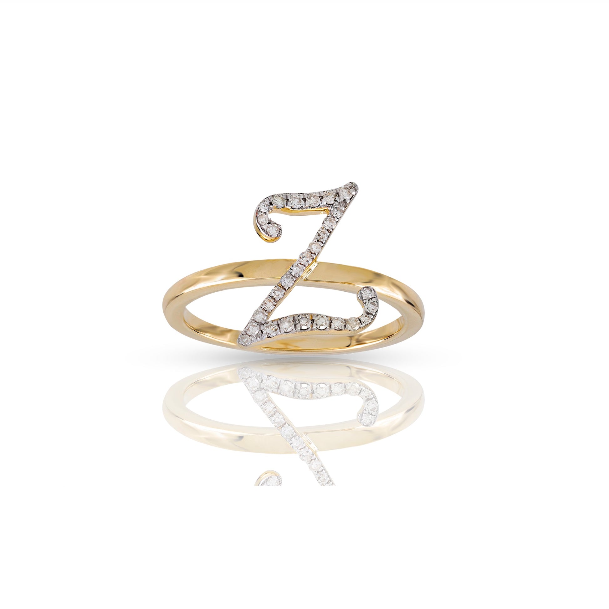 Personalized Luxury: 12mm Yellow Gold White Diamond Initial Ring by Demira Jewels