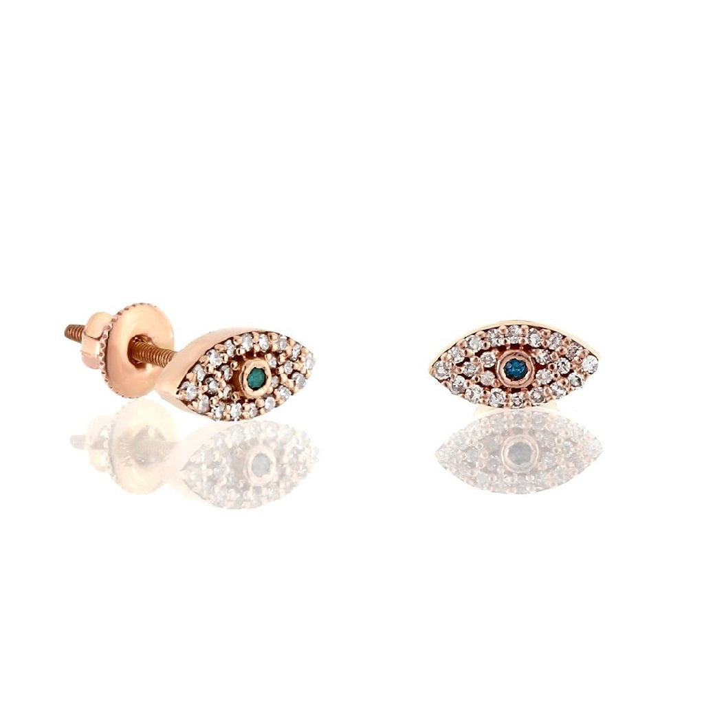 Rose Gold Diamond Cluster Evil Eye Stud Earrings