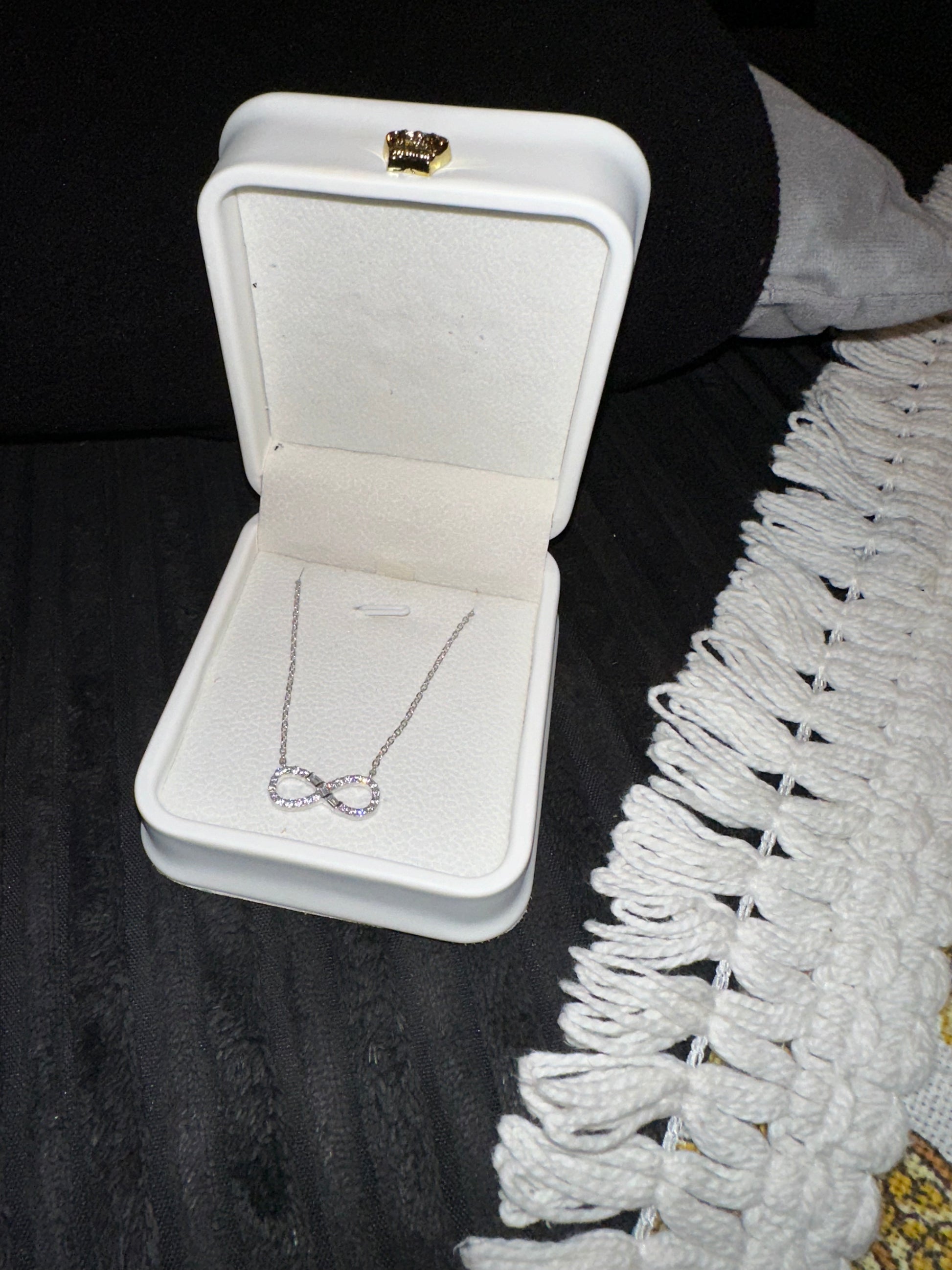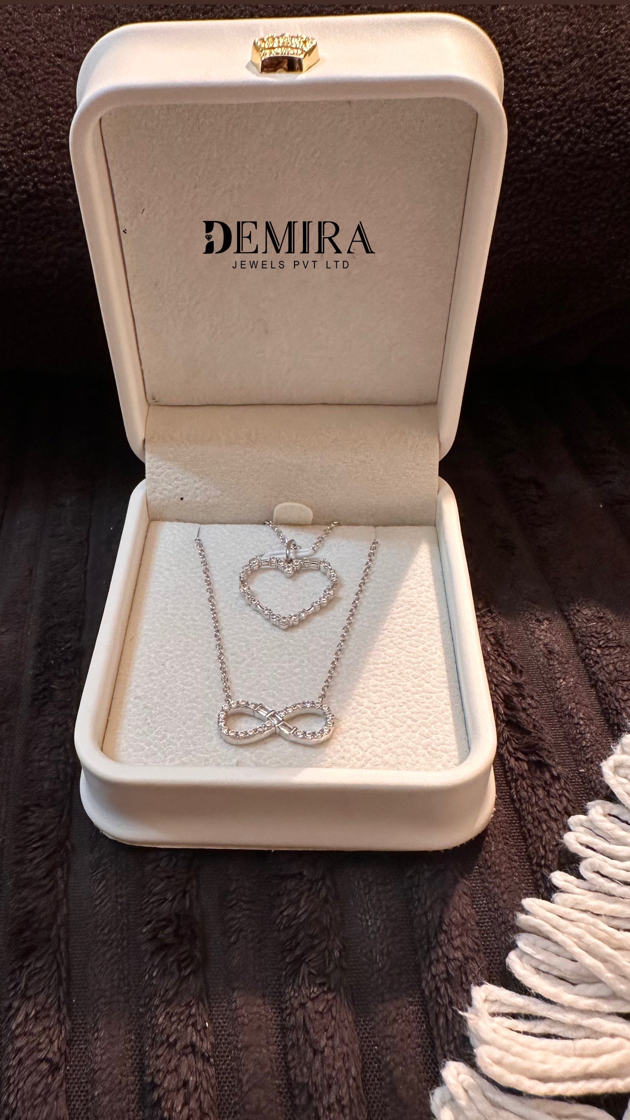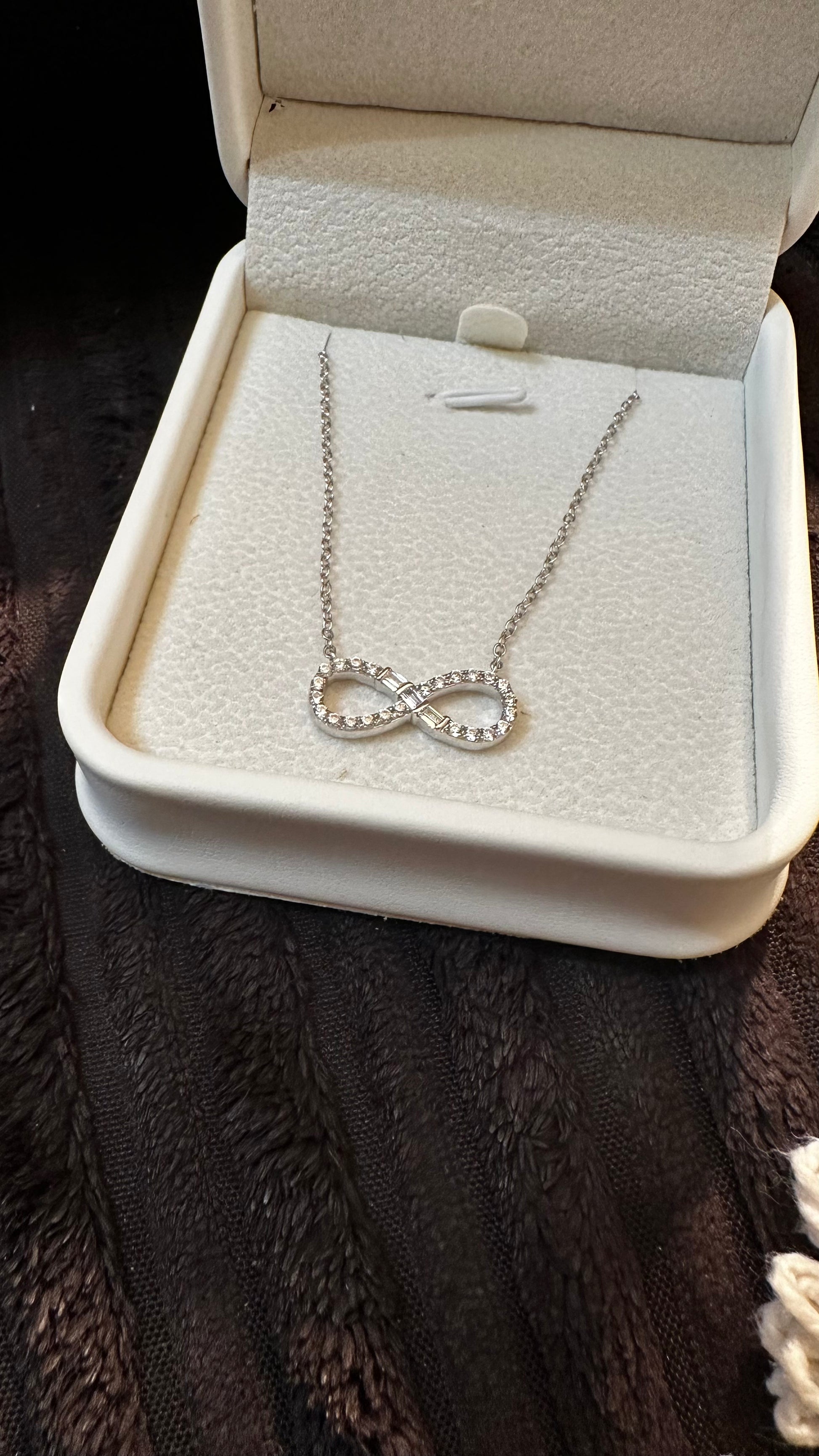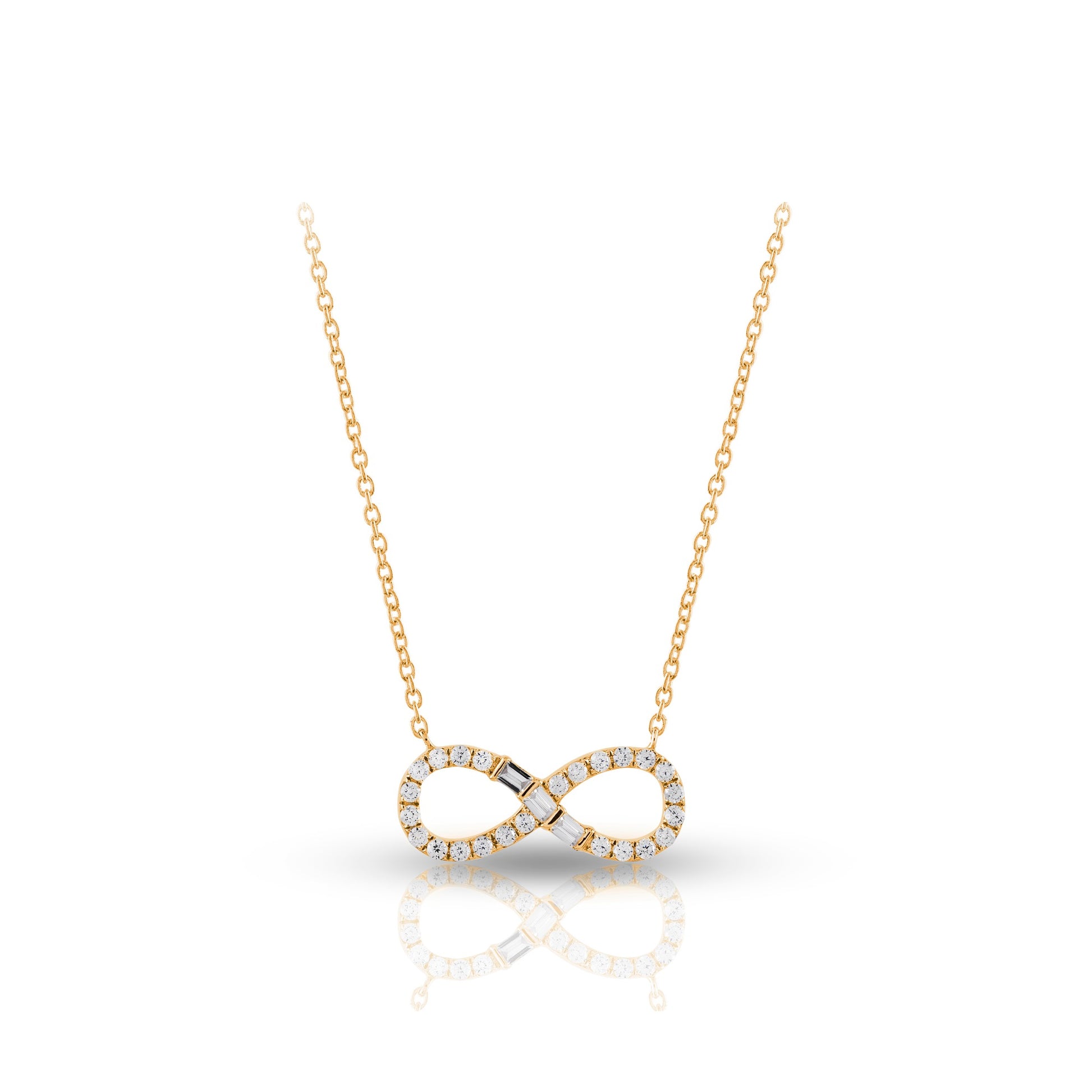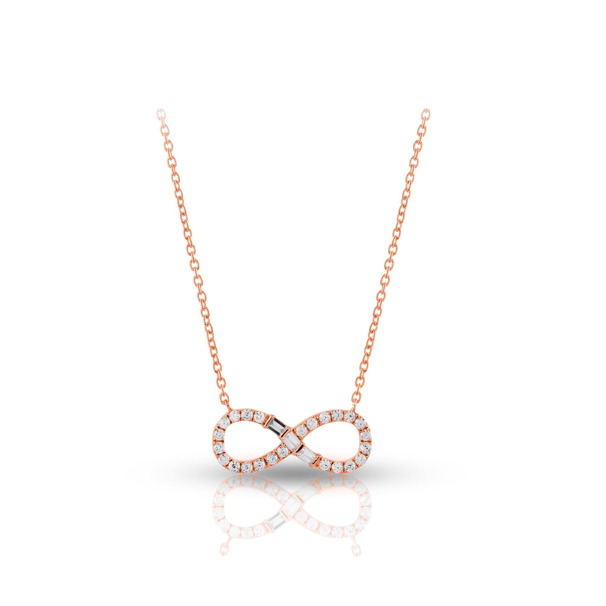 White Gold Round and Baguette Diamond Infinity Pendant Necklace