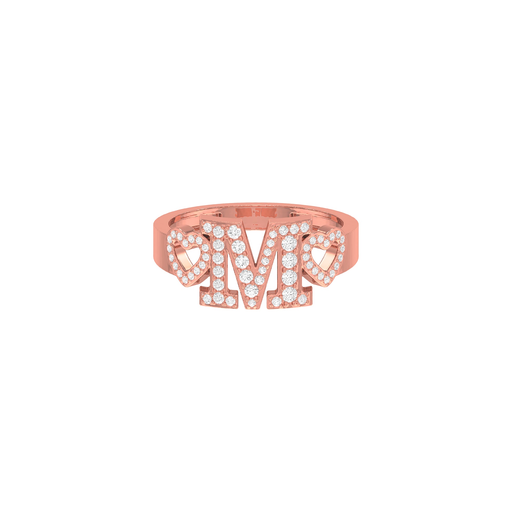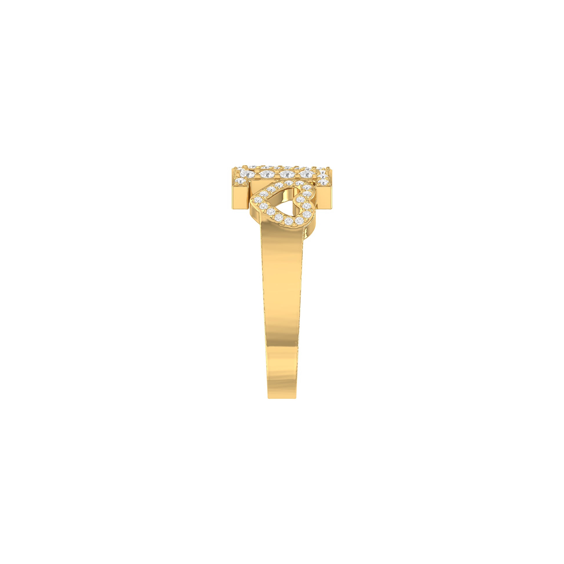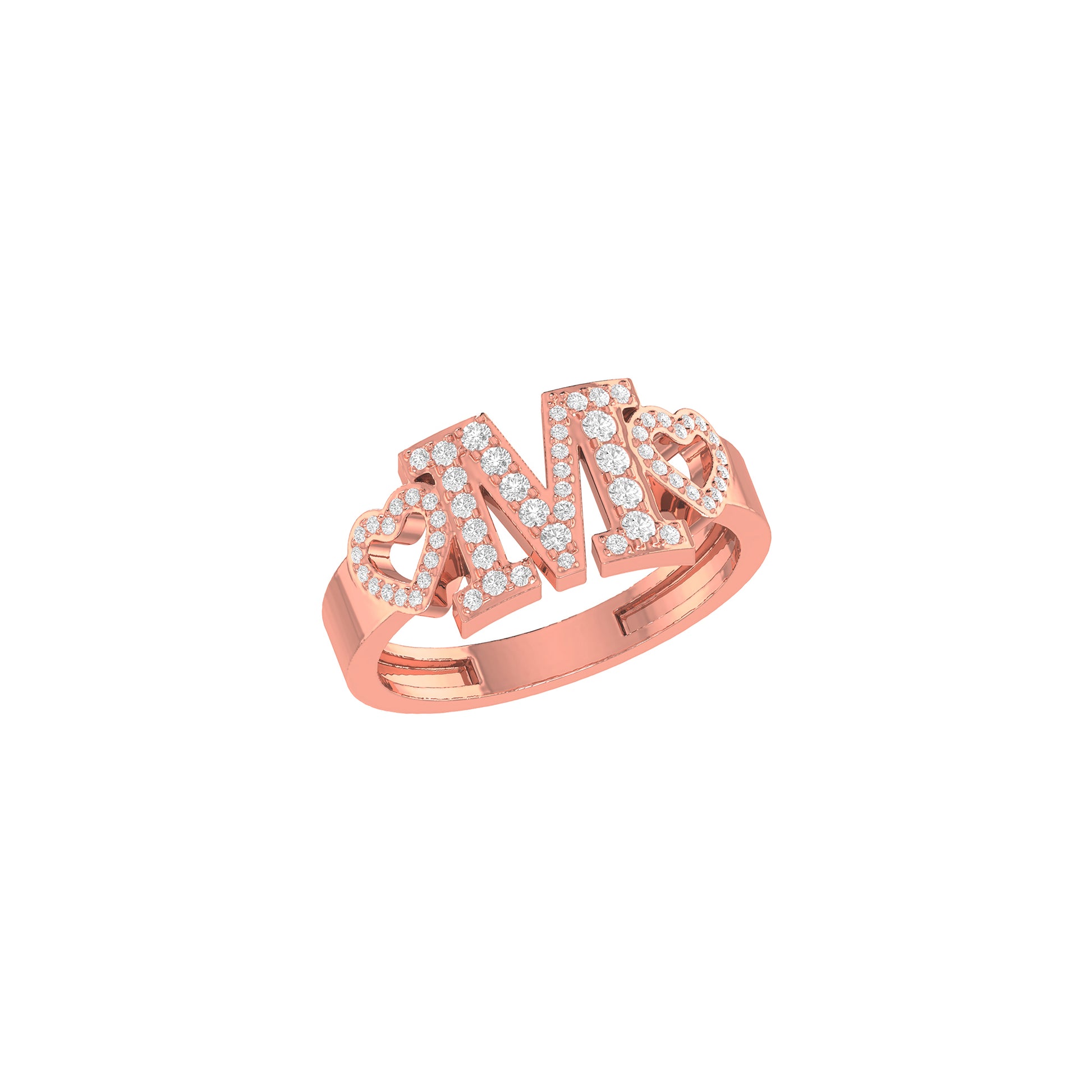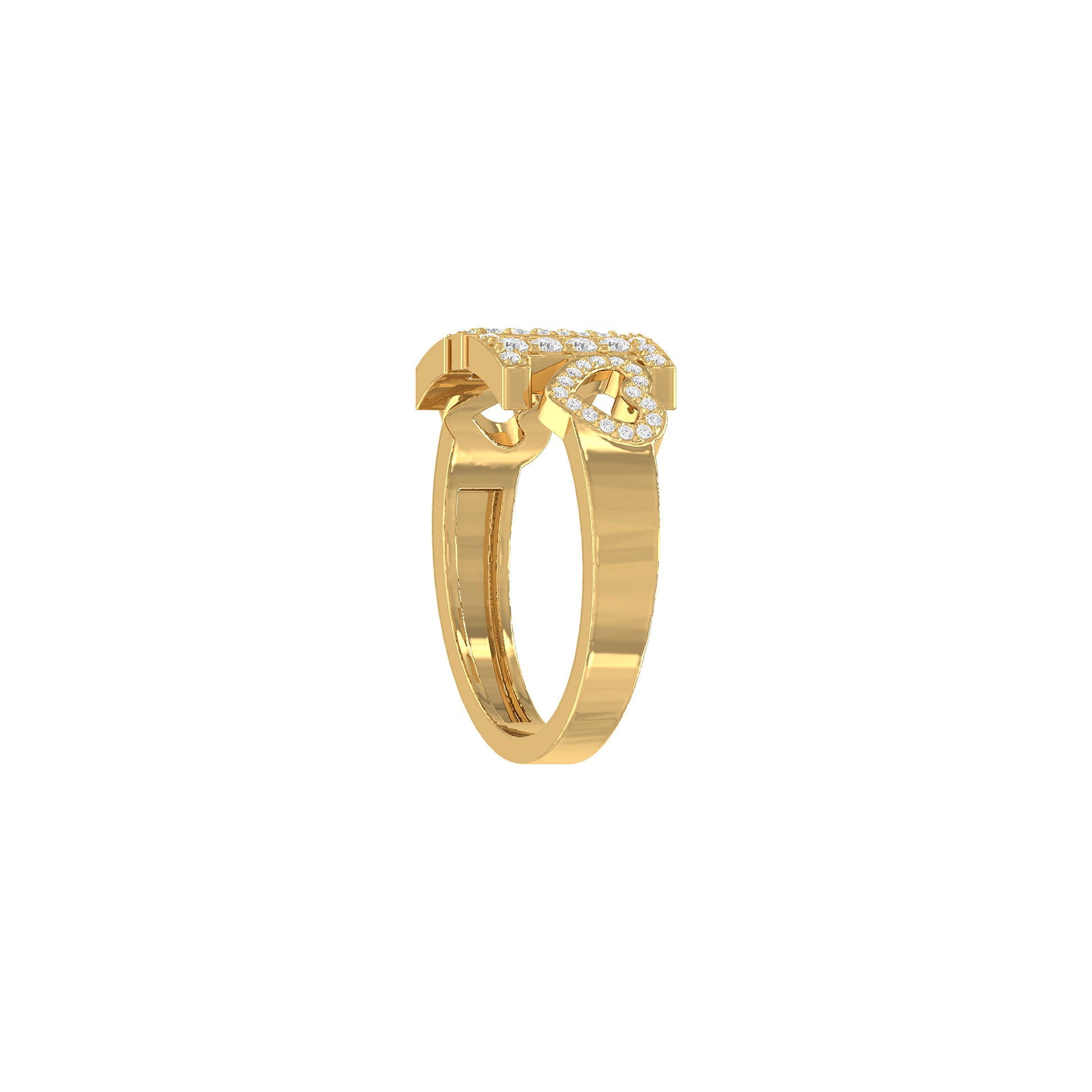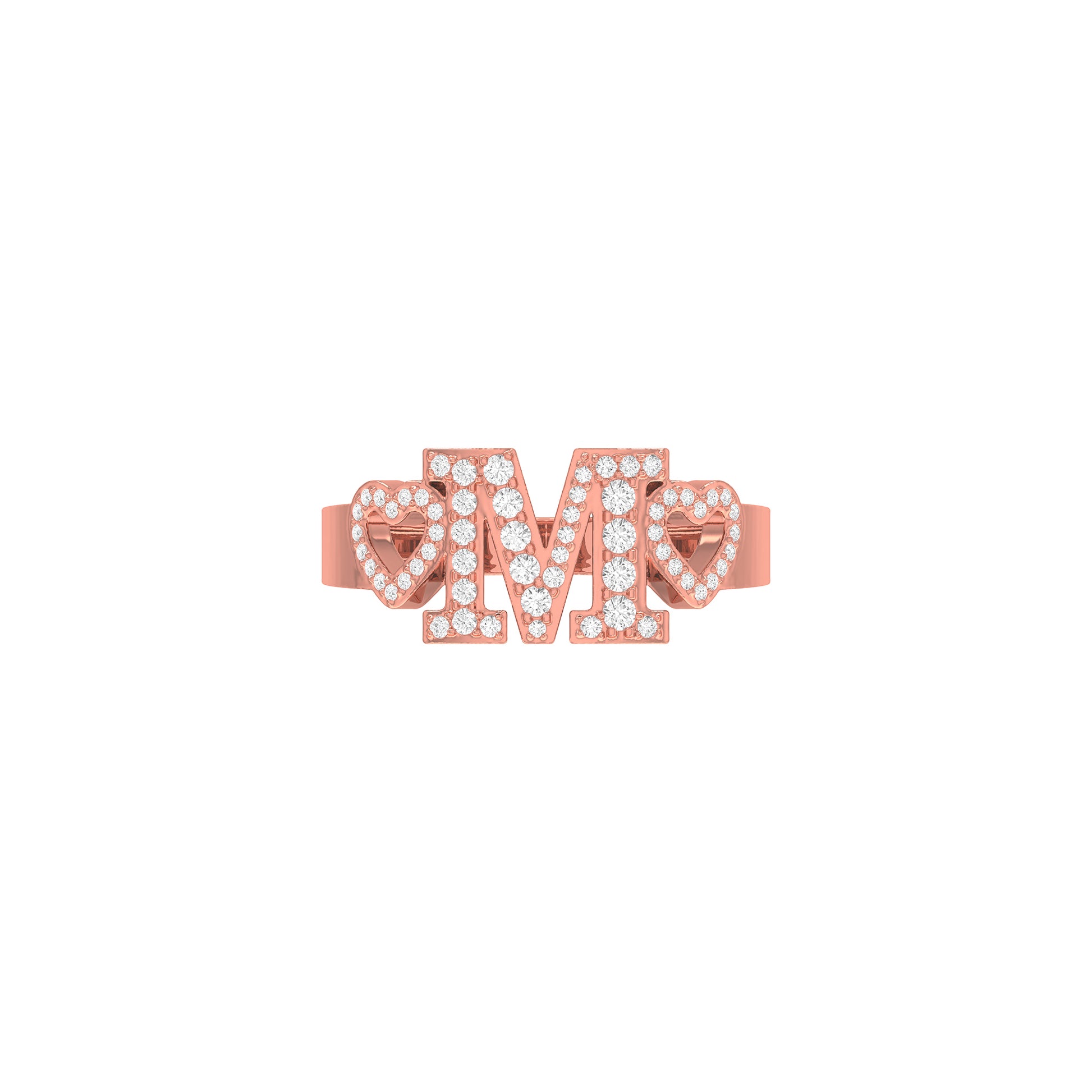 Yellow Gold Round Diamond Double Heart 'M' Letter Initial Ring