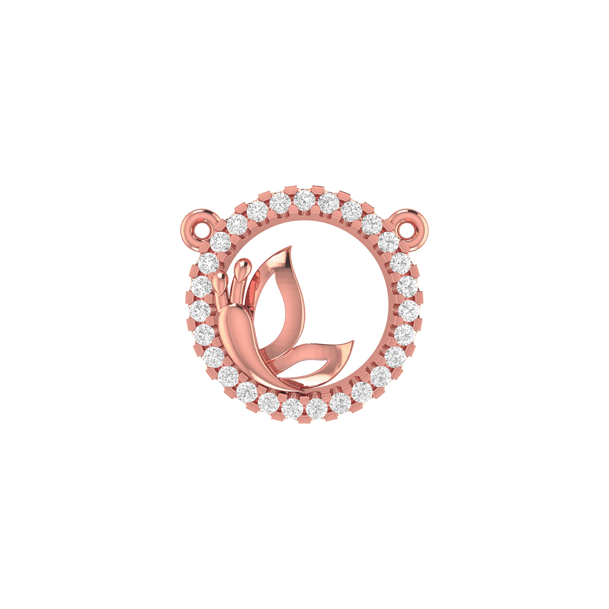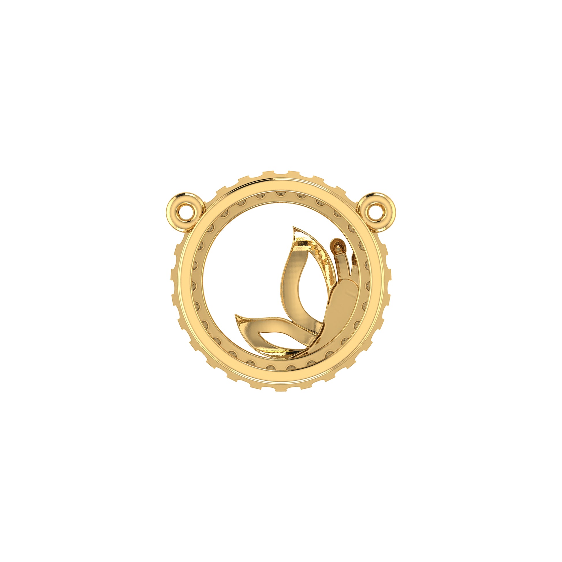 Yellow Gold Round Diamond Butterfly Circle Pendant With Chain
